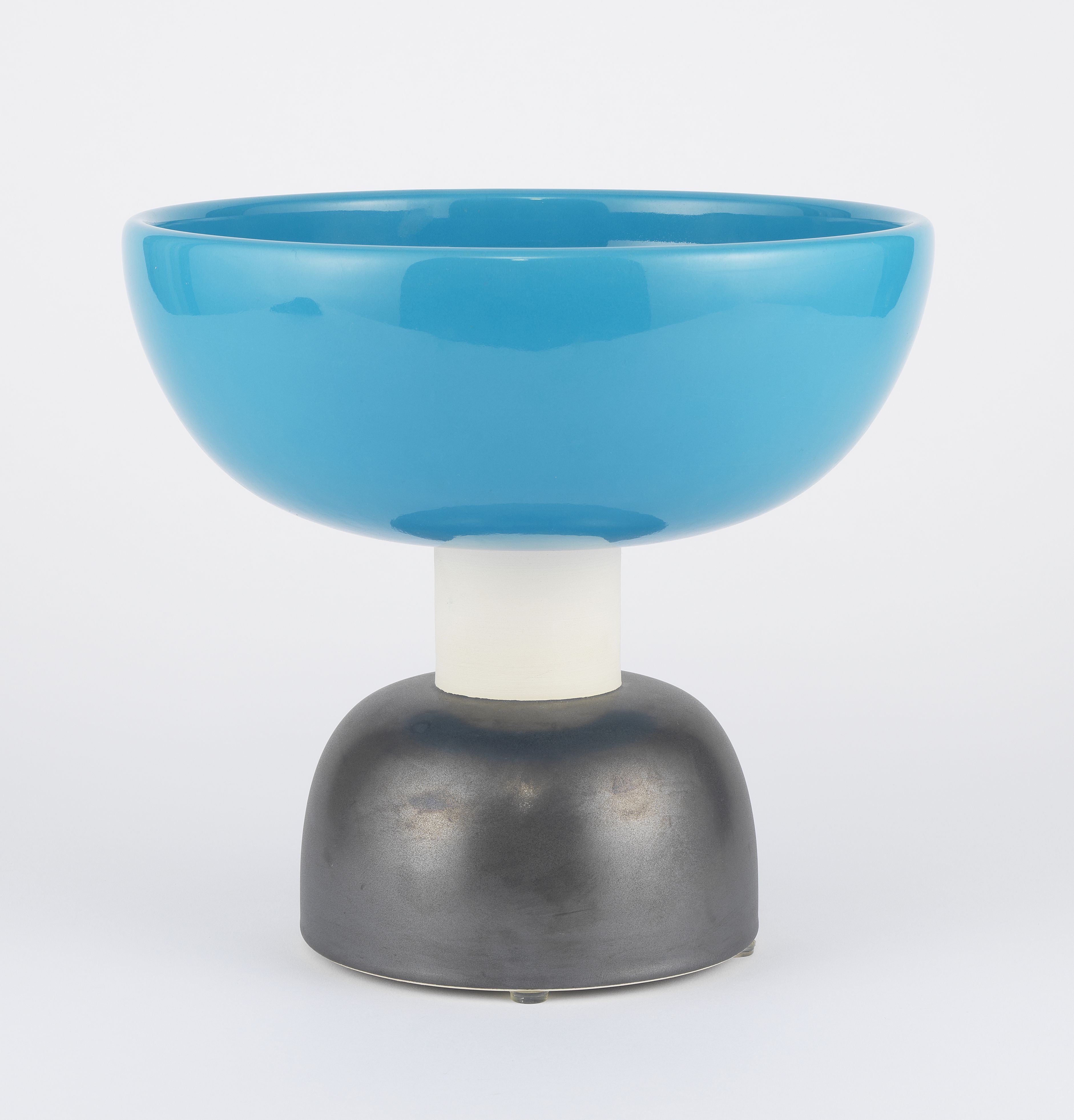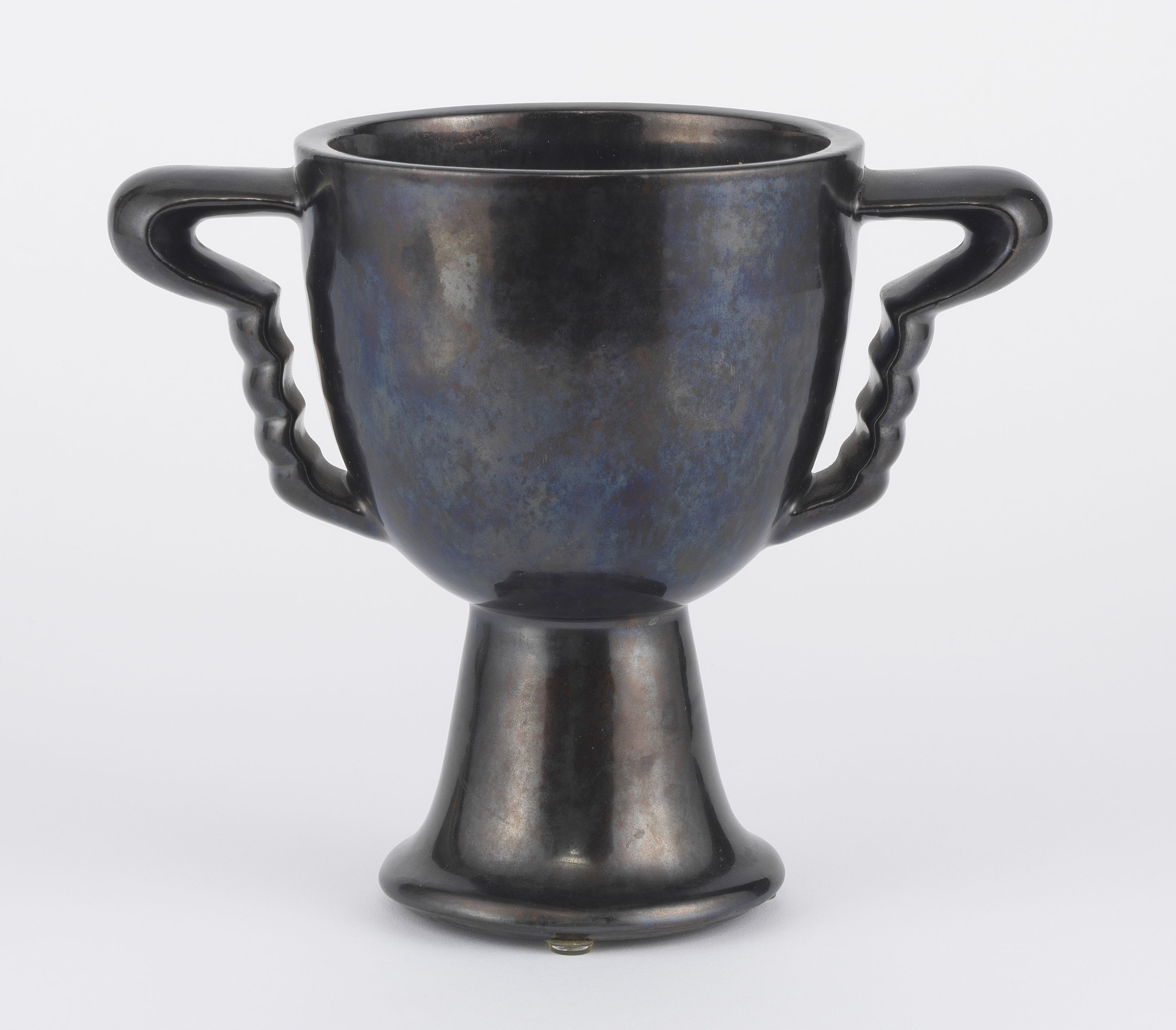 Grande coupe sur pied, céramique émaillée bleu et noir, H 24 cm