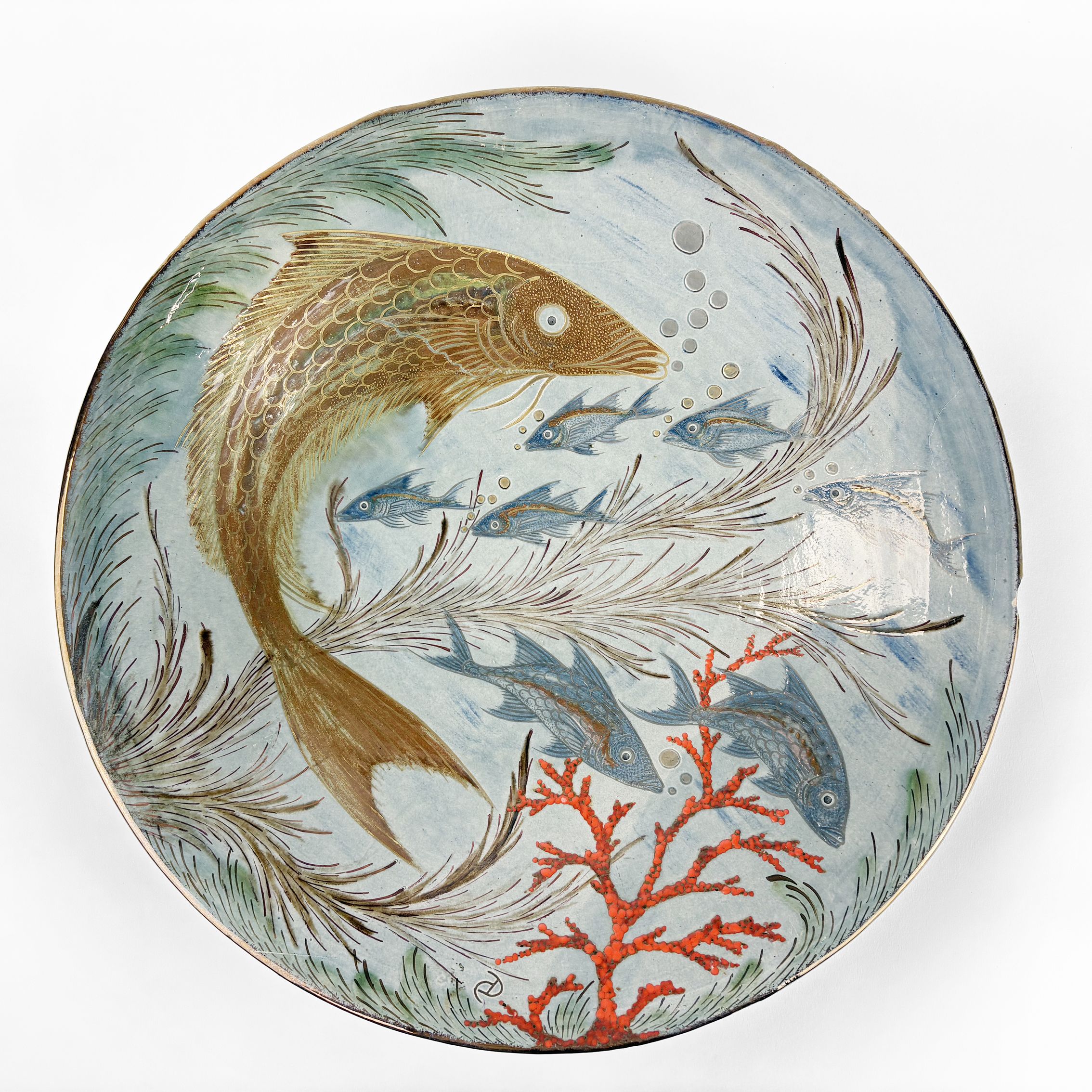 4274. Grand plat à décor de poissons, milieu XXe s