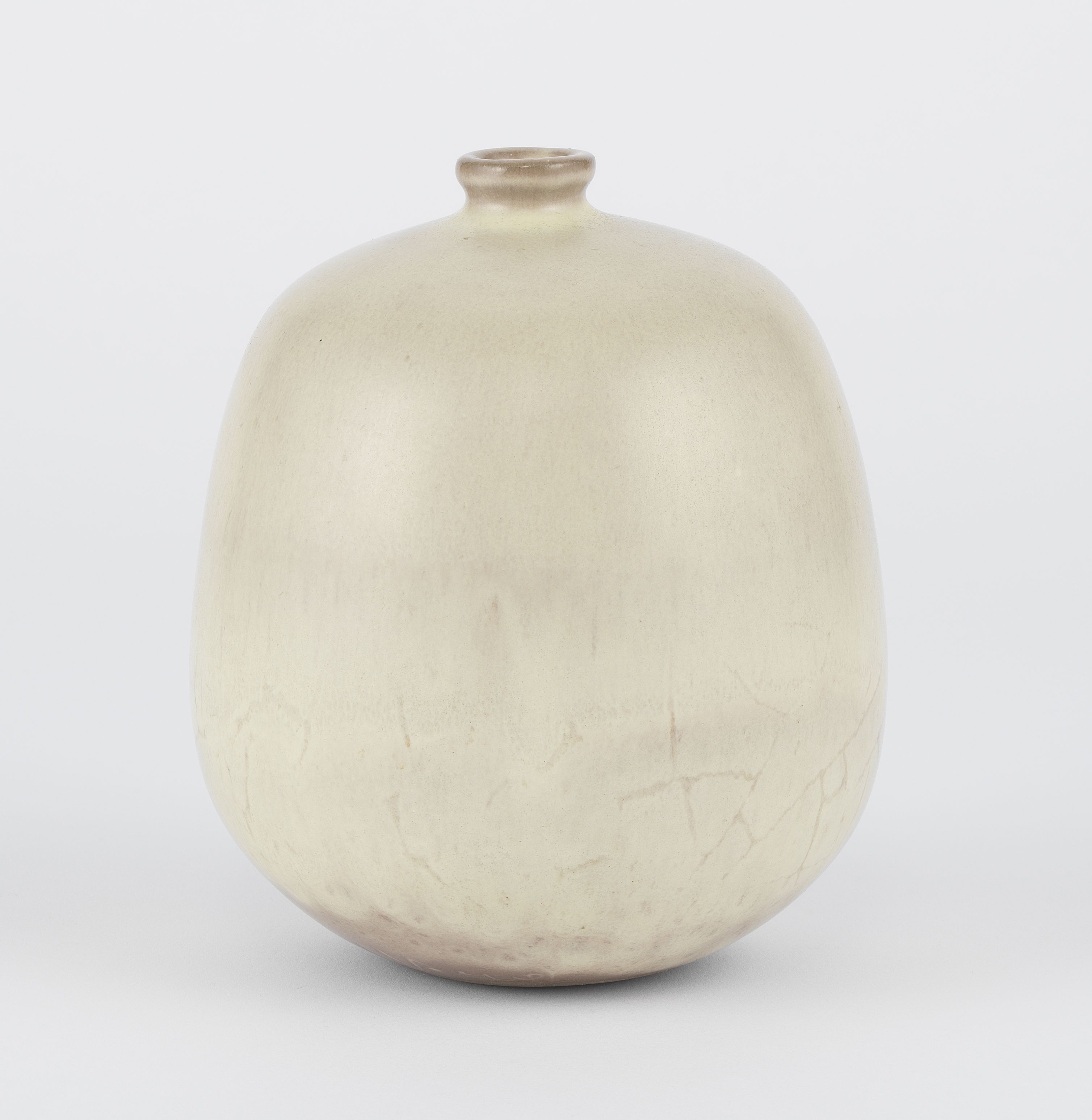 Vase boule, céramique émaillée ivoire, H 14 cm