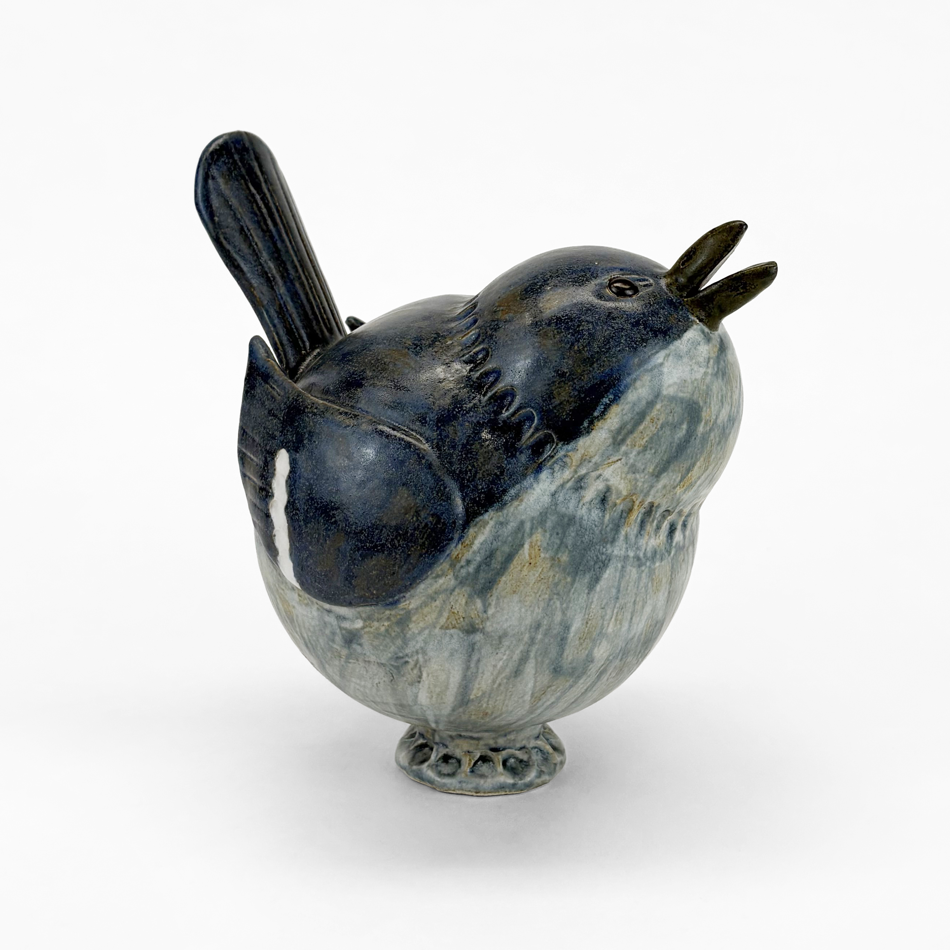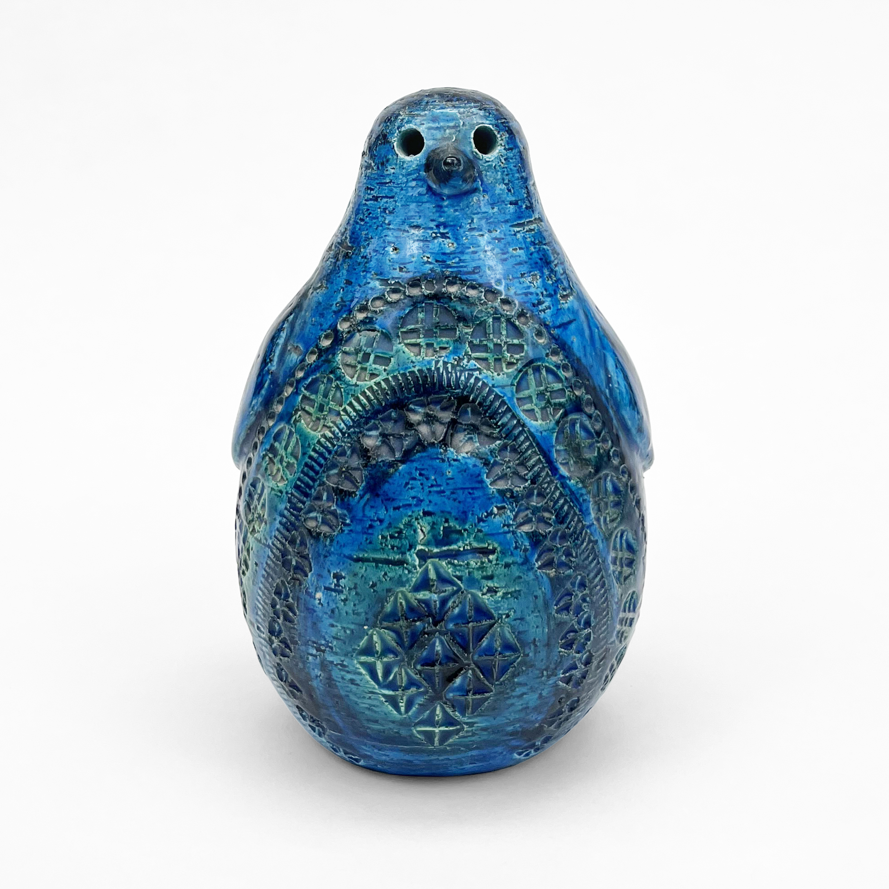 Pingouin, céramique émaillée bleue, H 22 cm