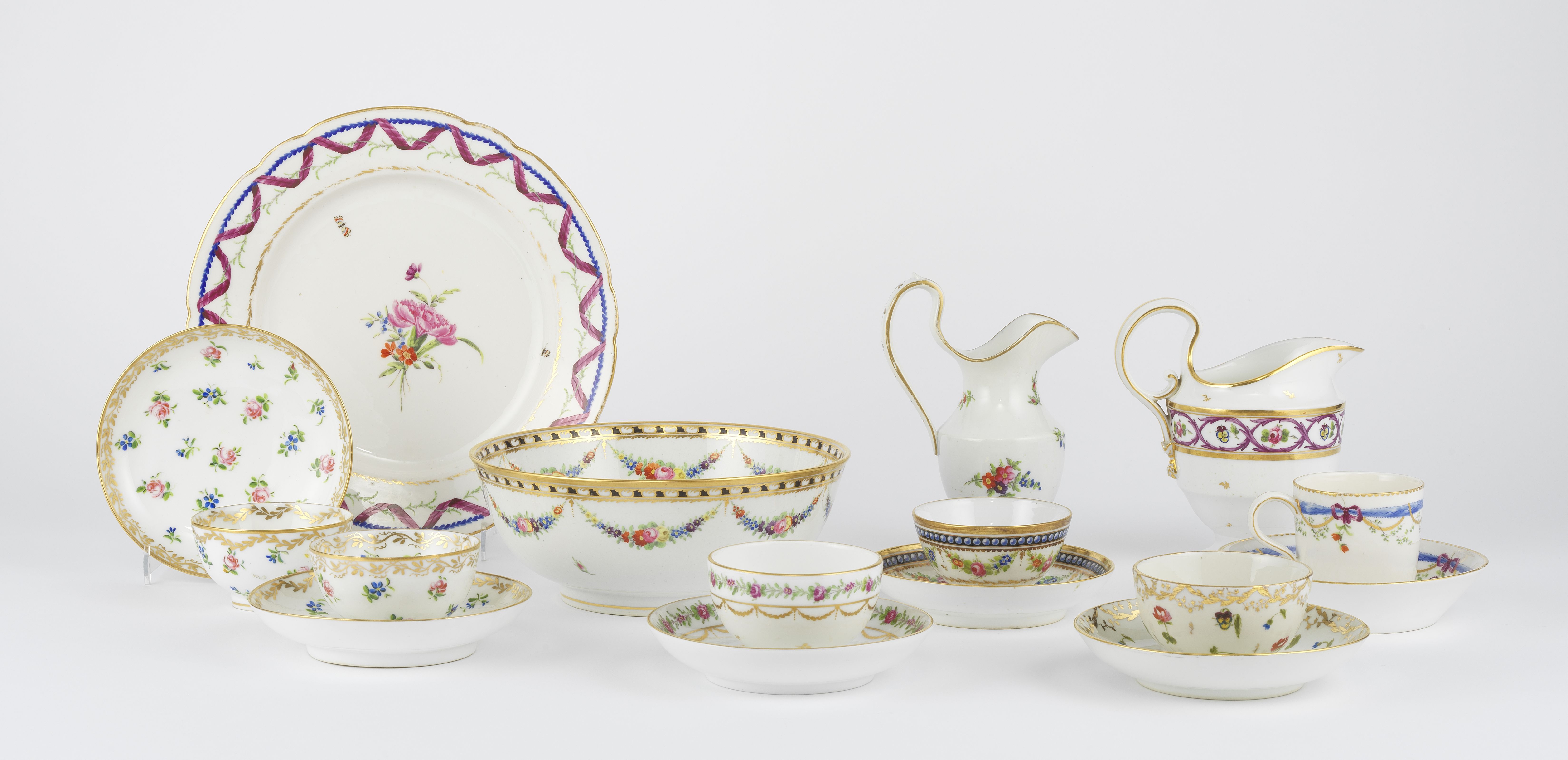 4315. Partie de service à décor de guirlandes de fleurs