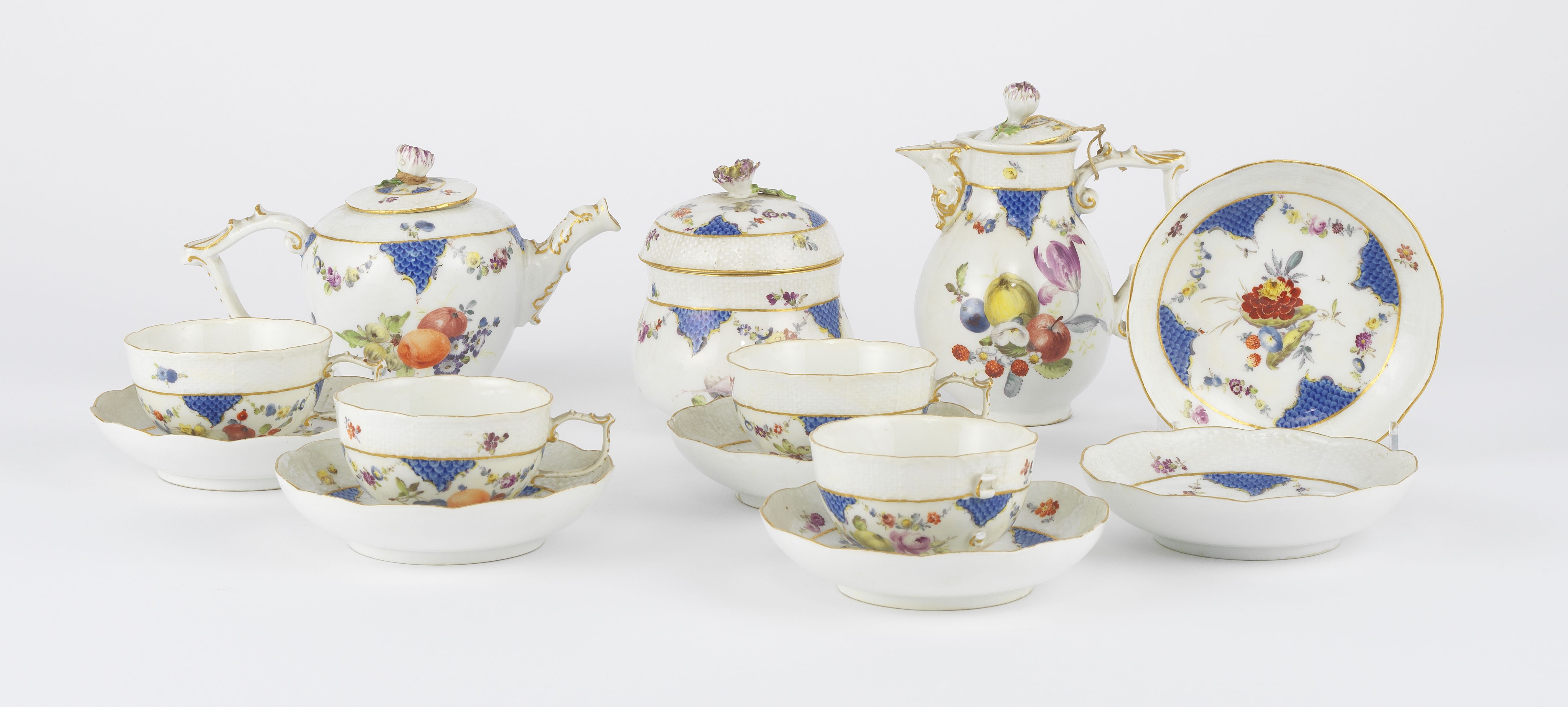 4294. Service à thé à décor de fruits et écailles bleues