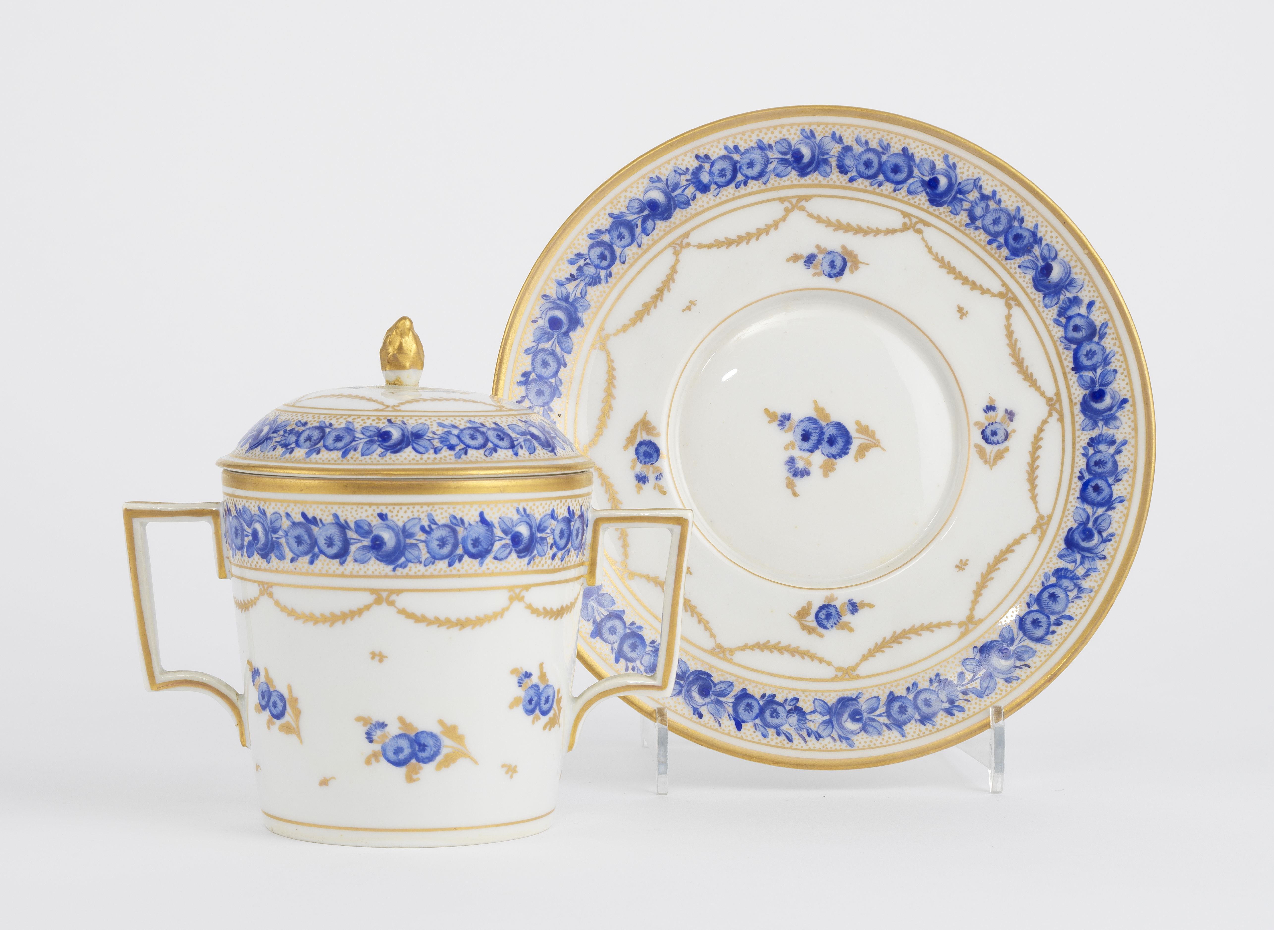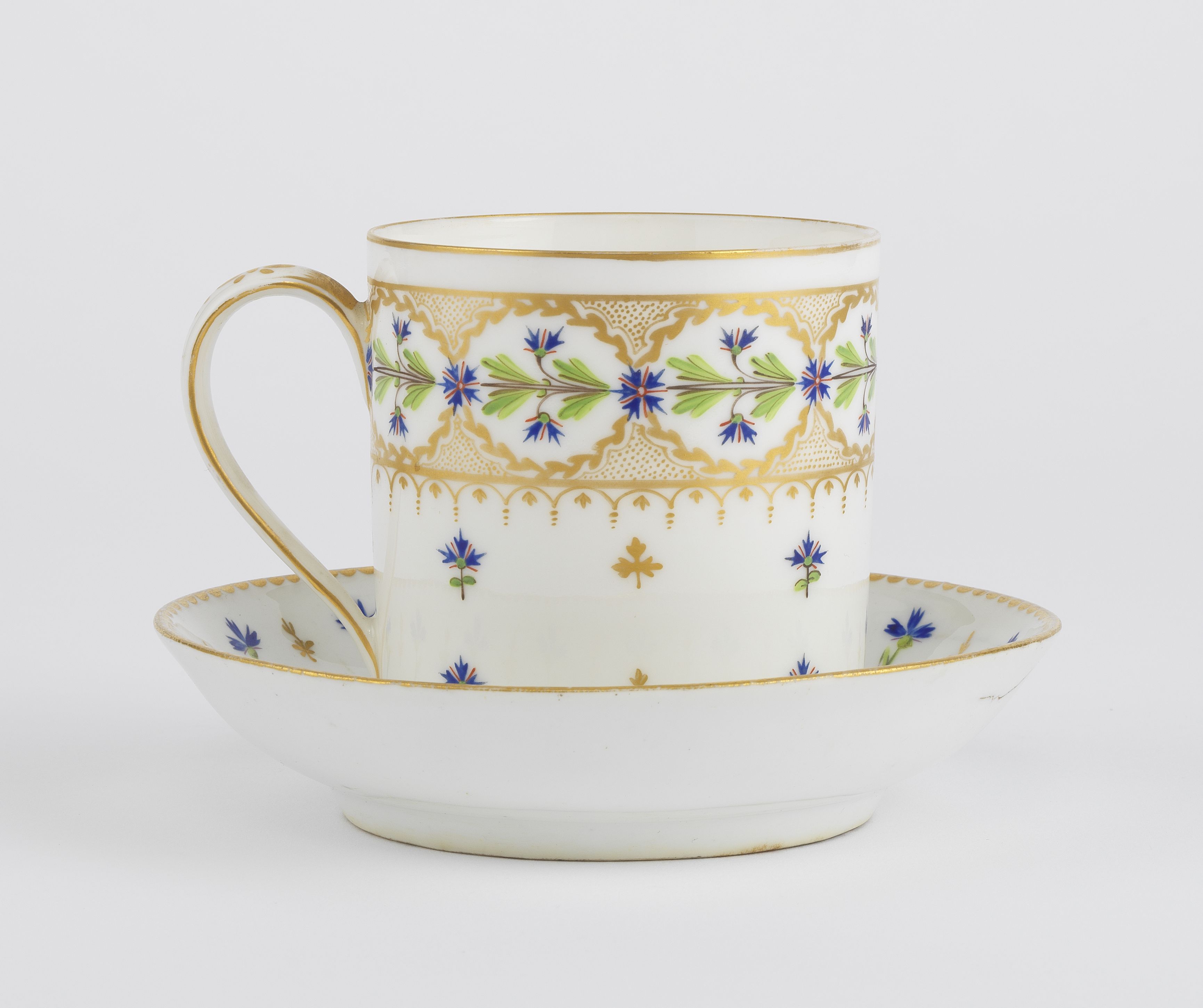 4307. Tasse trembleuse à décor de guirlande bleu et or