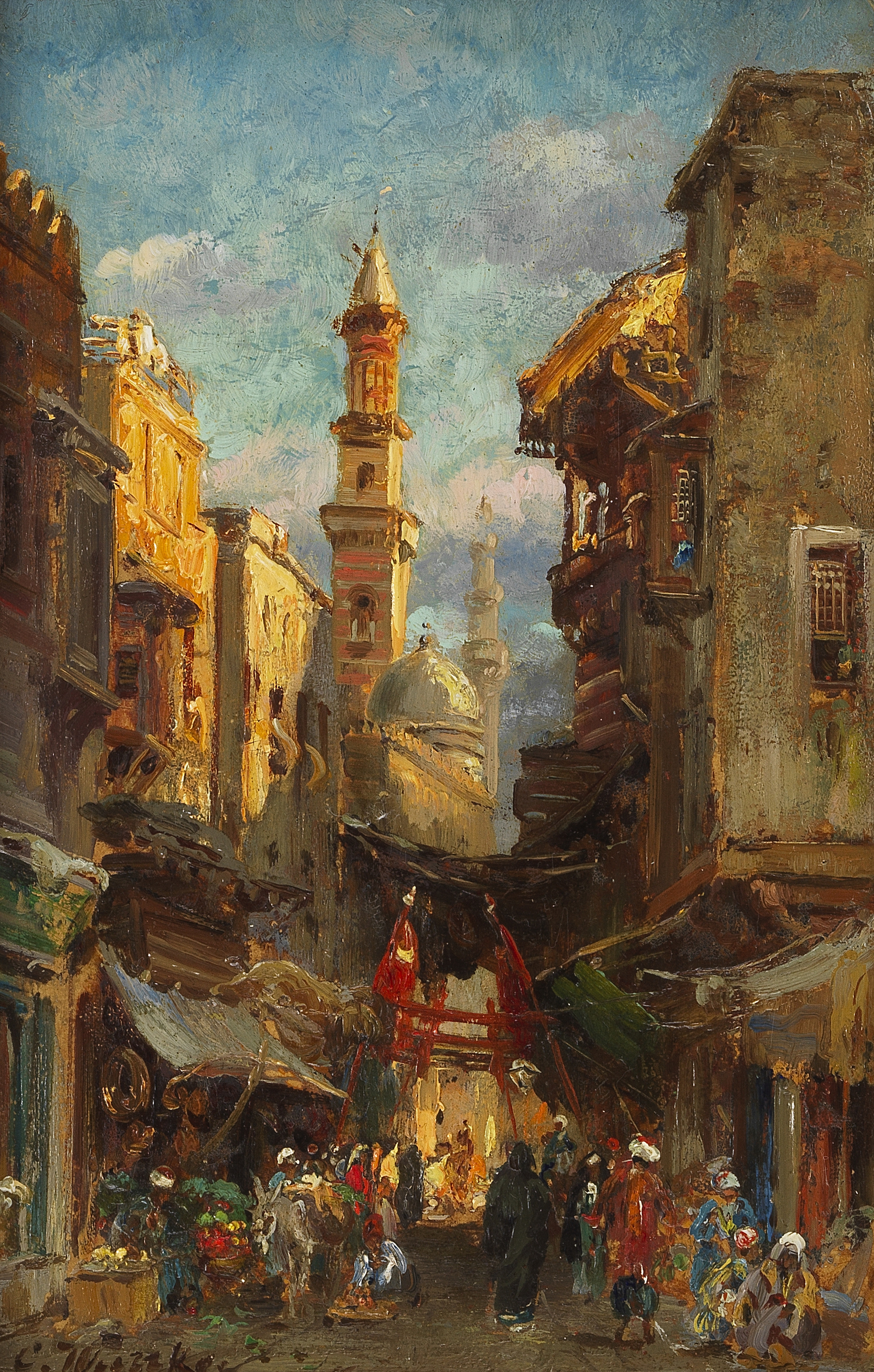 Portefaix égyptienne, huile sur toile, signée, 41x34 cm