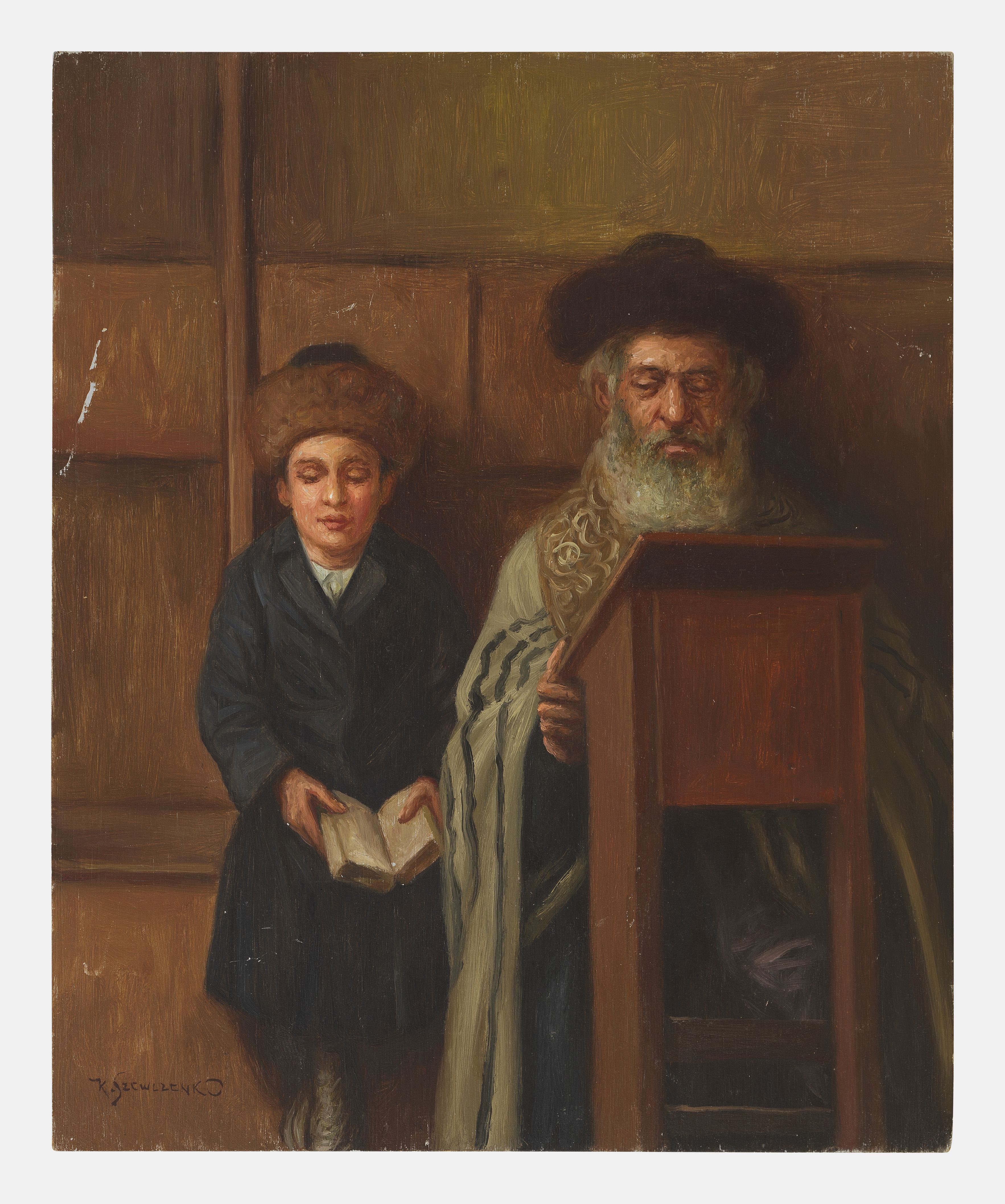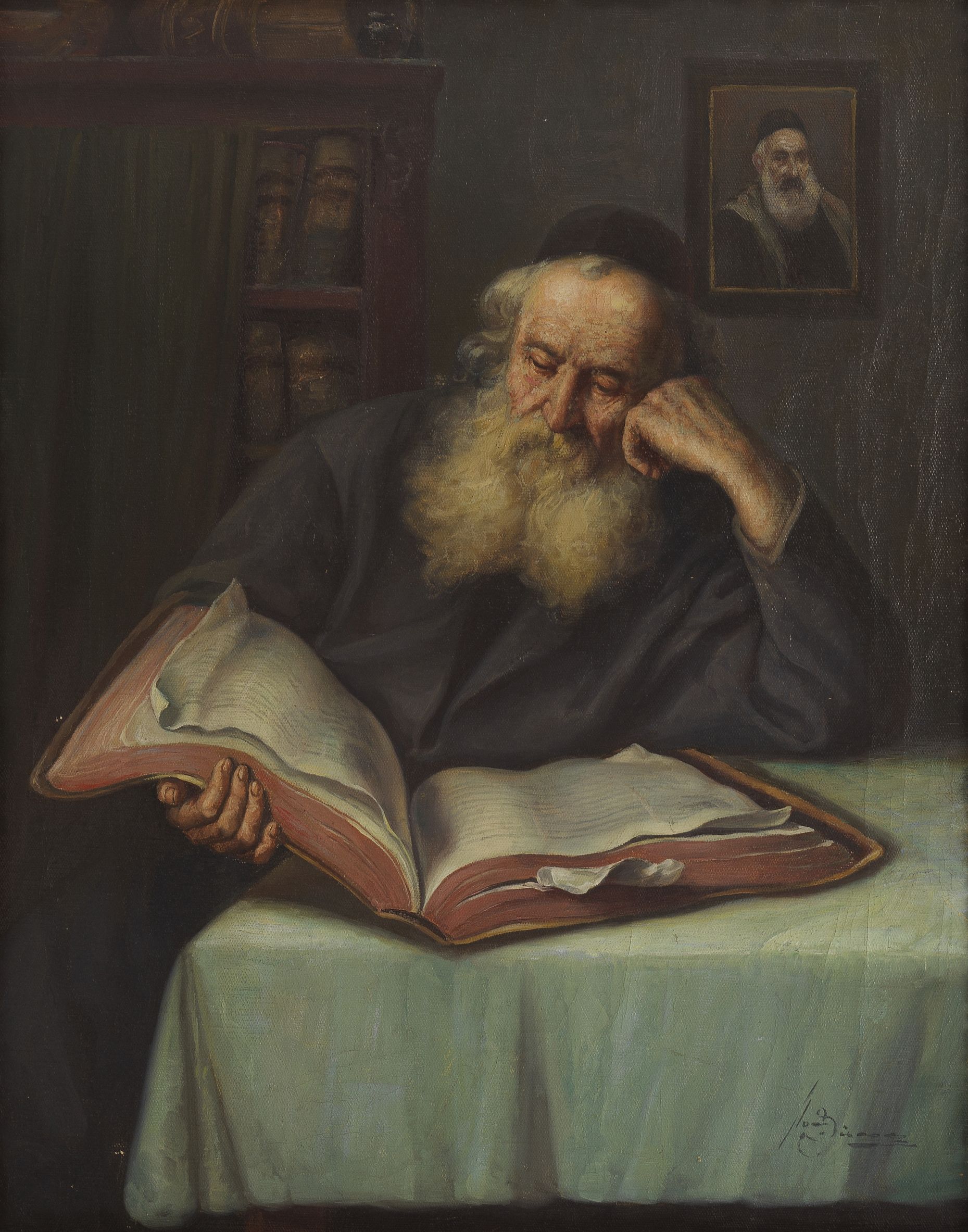 Rabbin lisant, huile sur toile, signature non identifiée, 56x44...