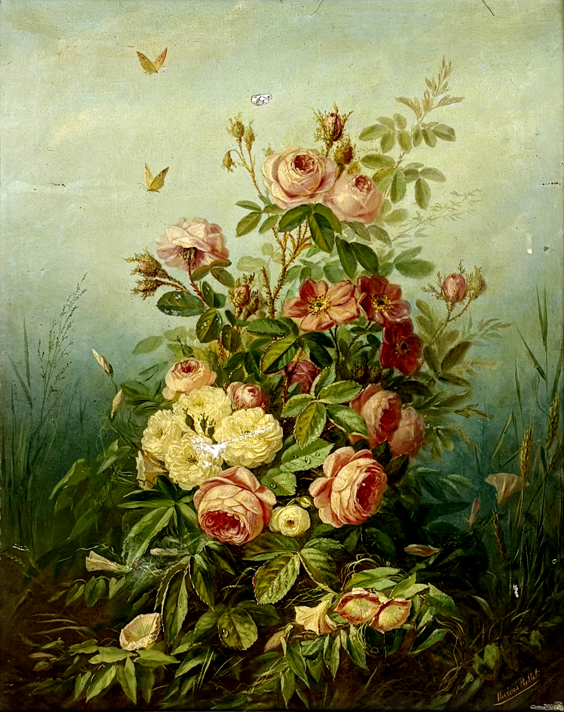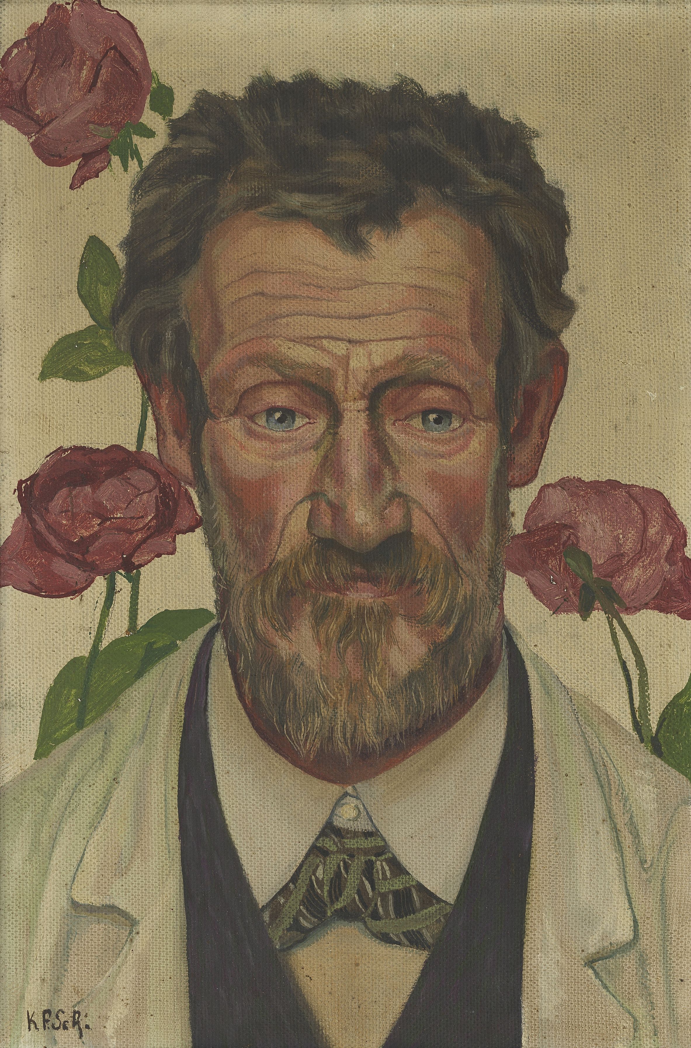 Portrait d'homme aux fleurs, huile sur toile,