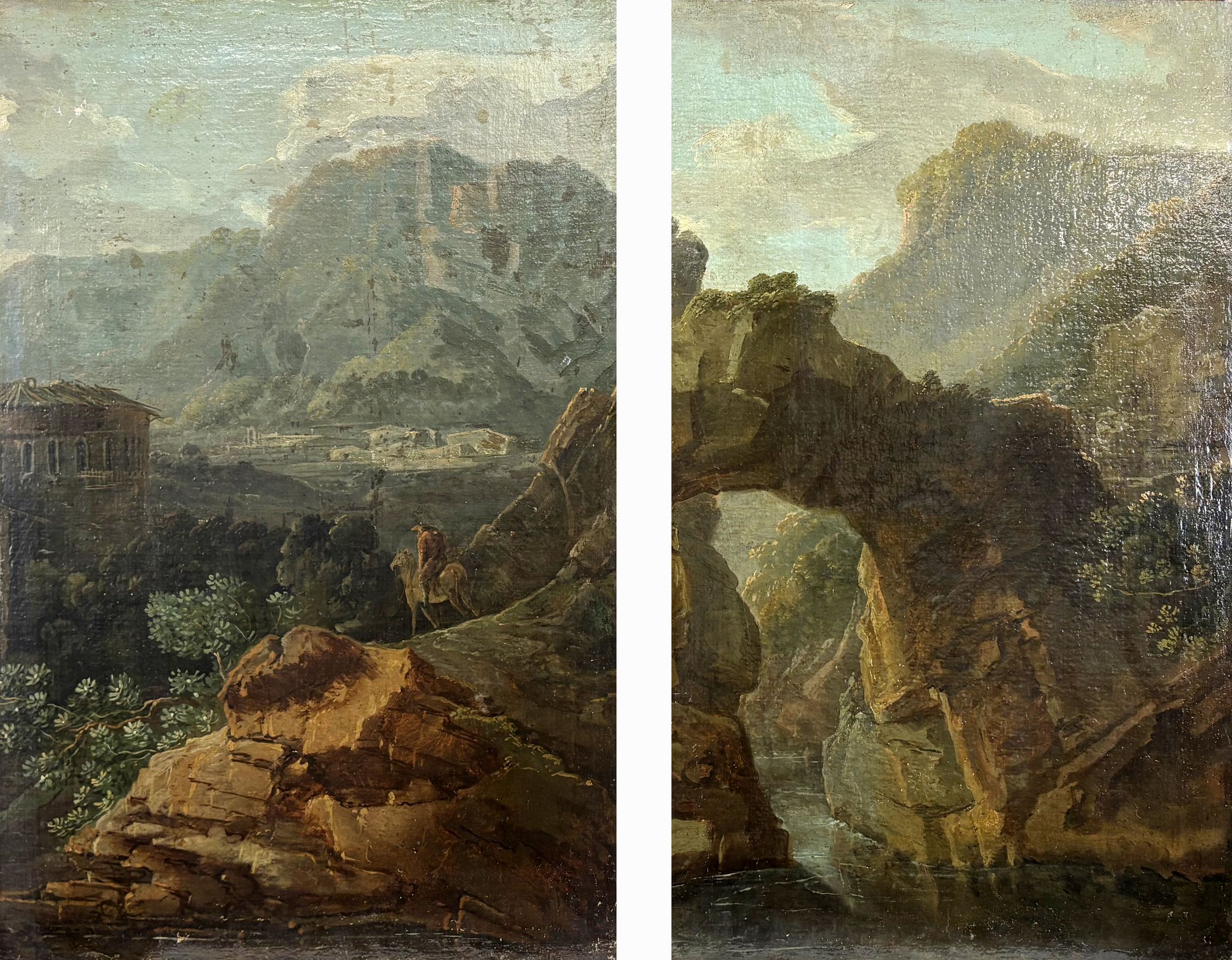 Dyptique avec paysages de montagne, deux huiles sur toiles, 50x7...