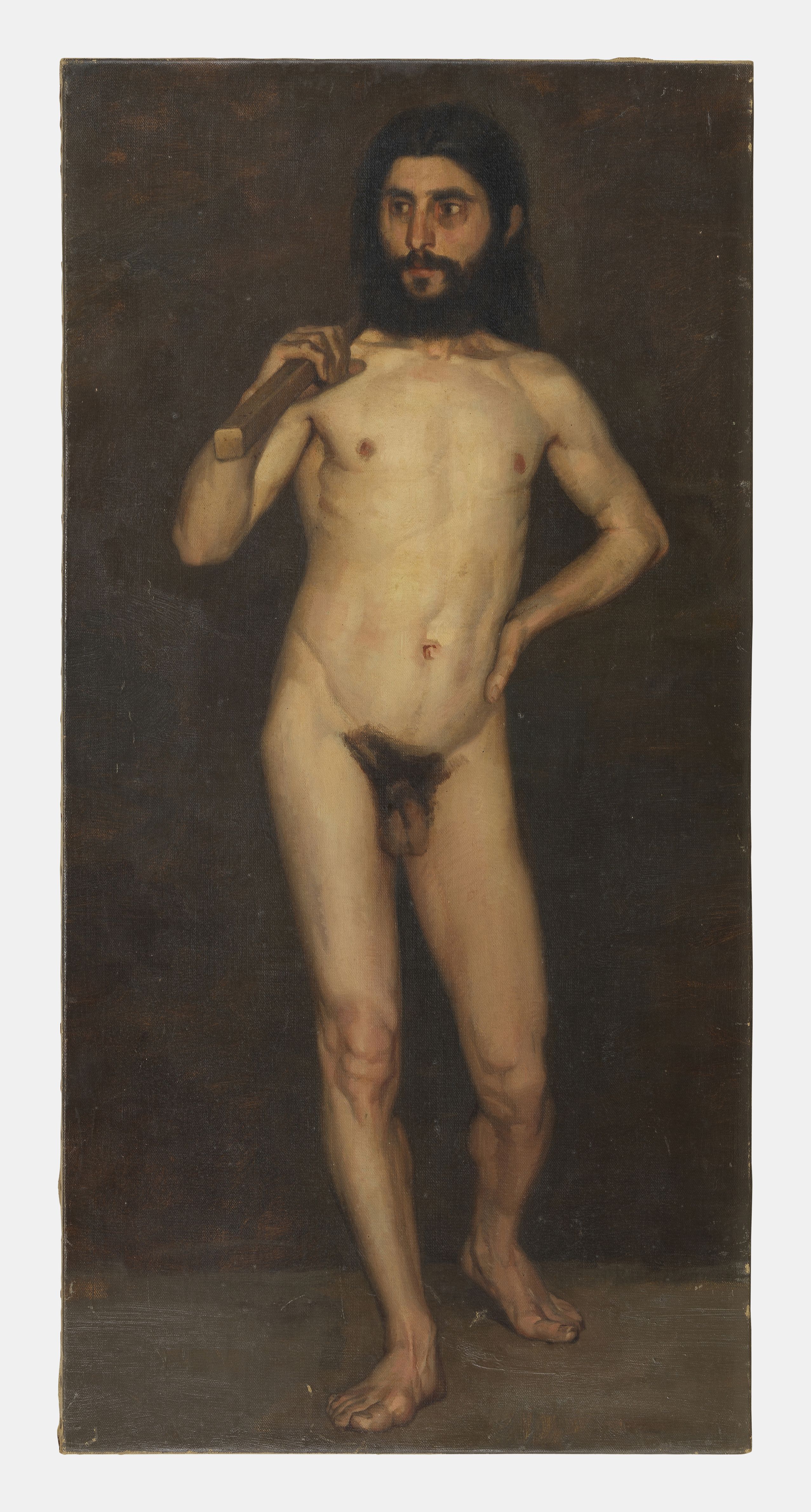 Portrait académique d’homme nu barbu, huile sur toile, 78x38 cm