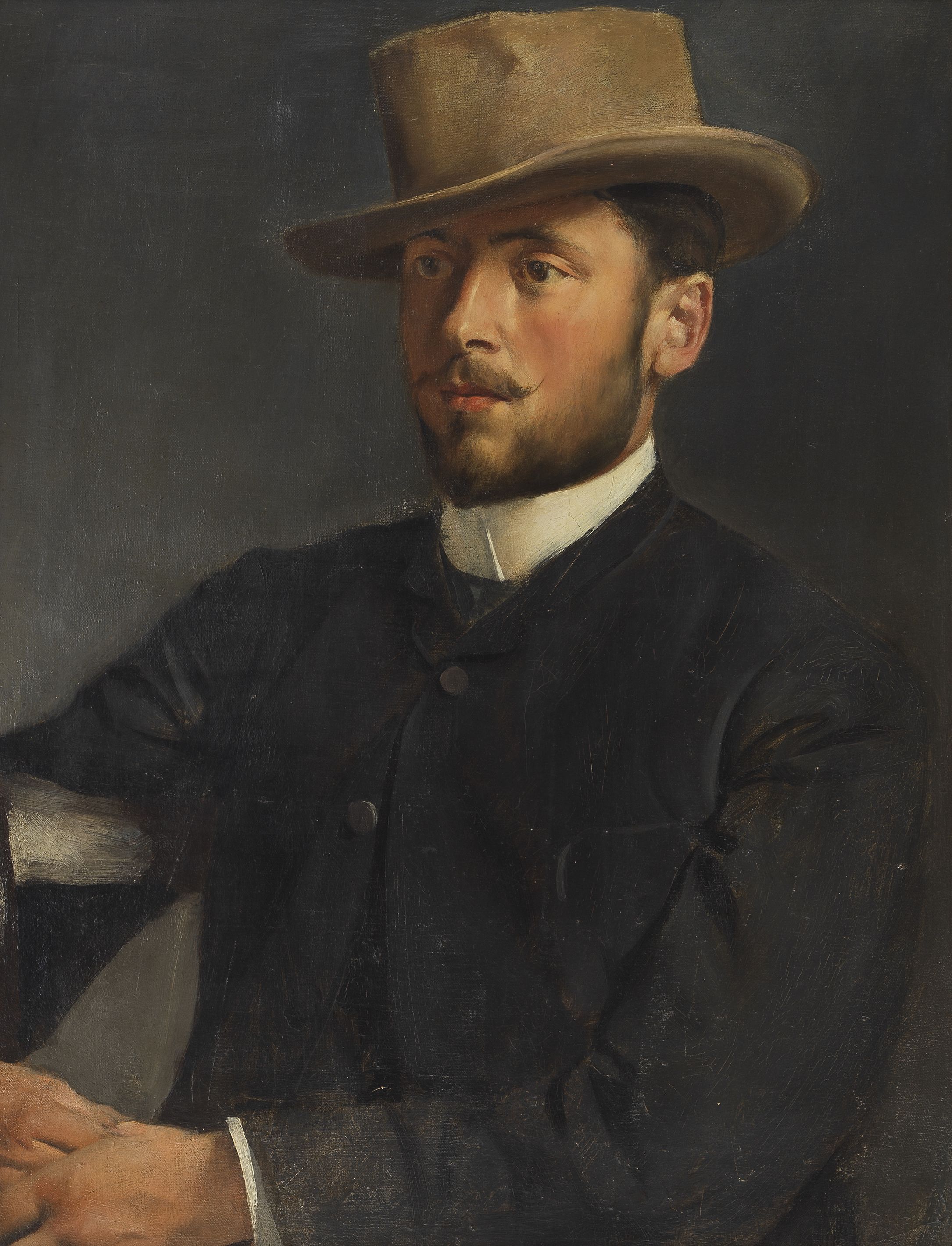 Portrait d'homme au chapeau, huile sur toile, 58x45 cm