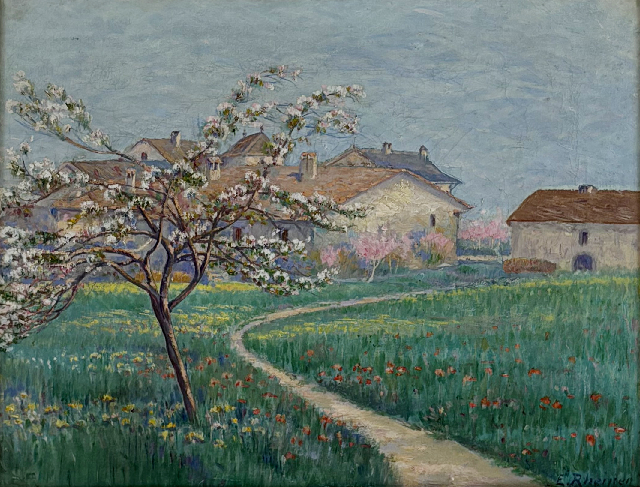 Campagne genevoise, huile sur toile, signée et datée 49, 38x46 c...