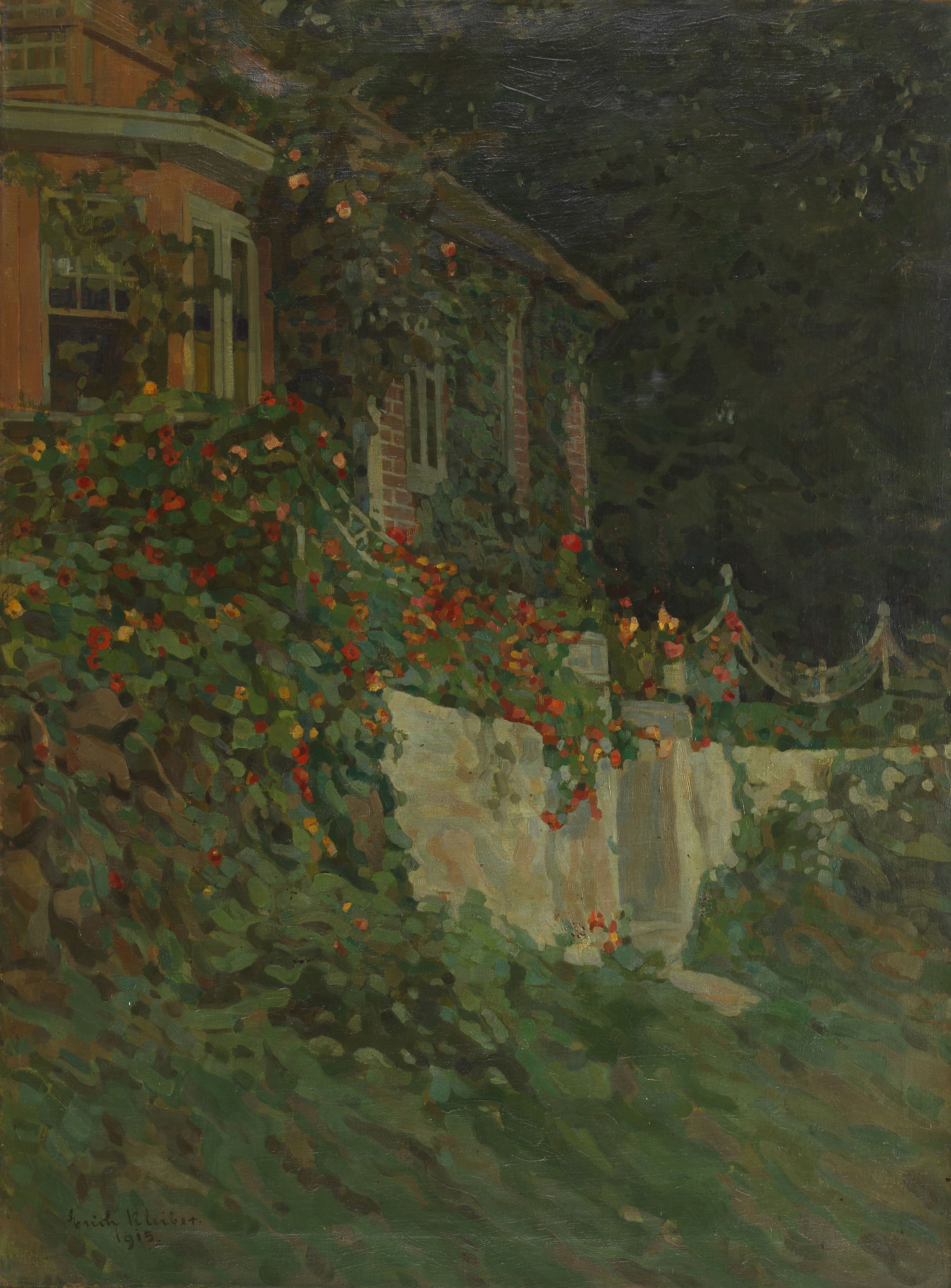 Jardin en été, huile sur toile, signée, 92x72 cm