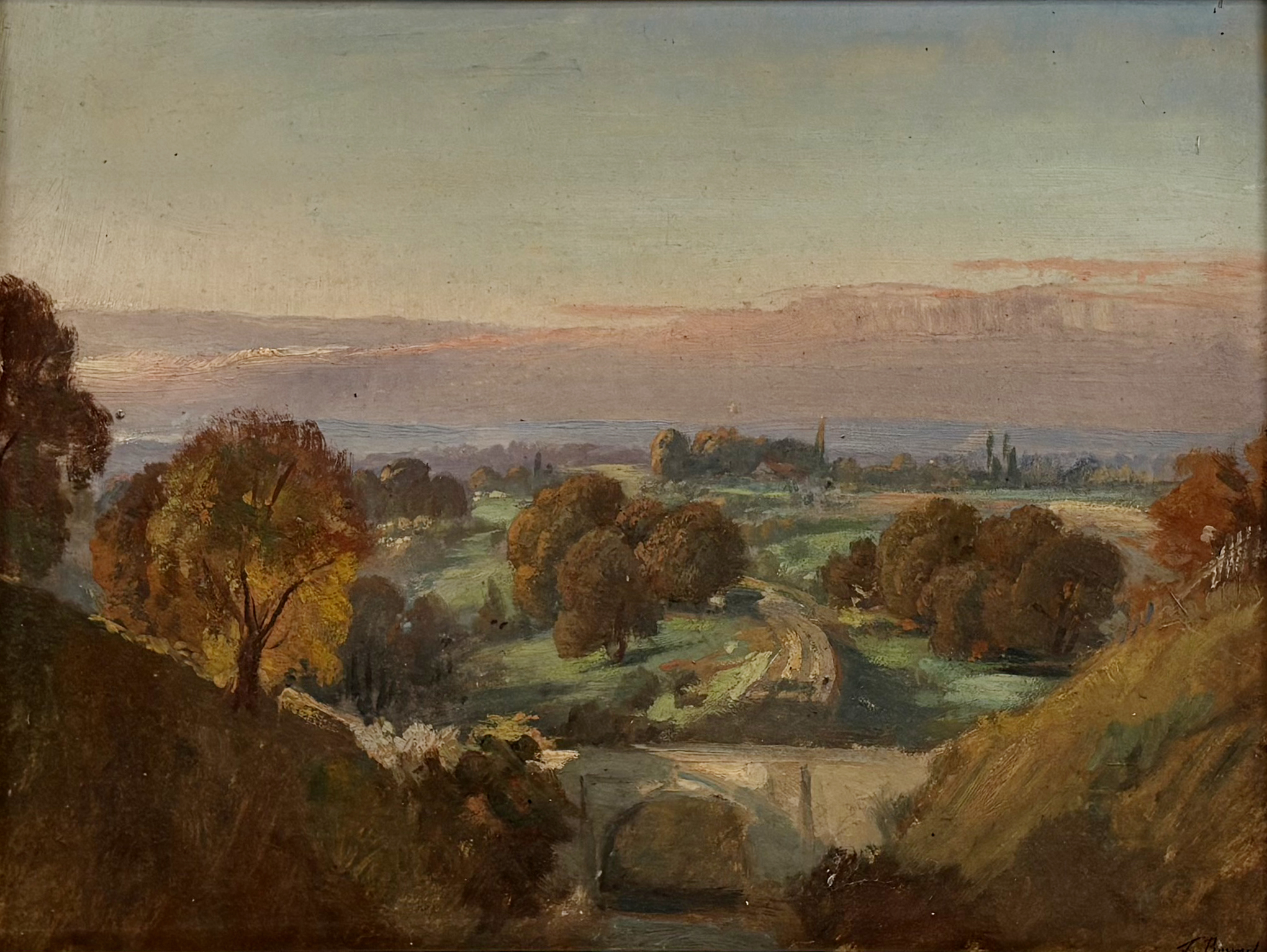 Campagne vaudoise au crépuscule, Lausanne, huile sur carton, 30x...