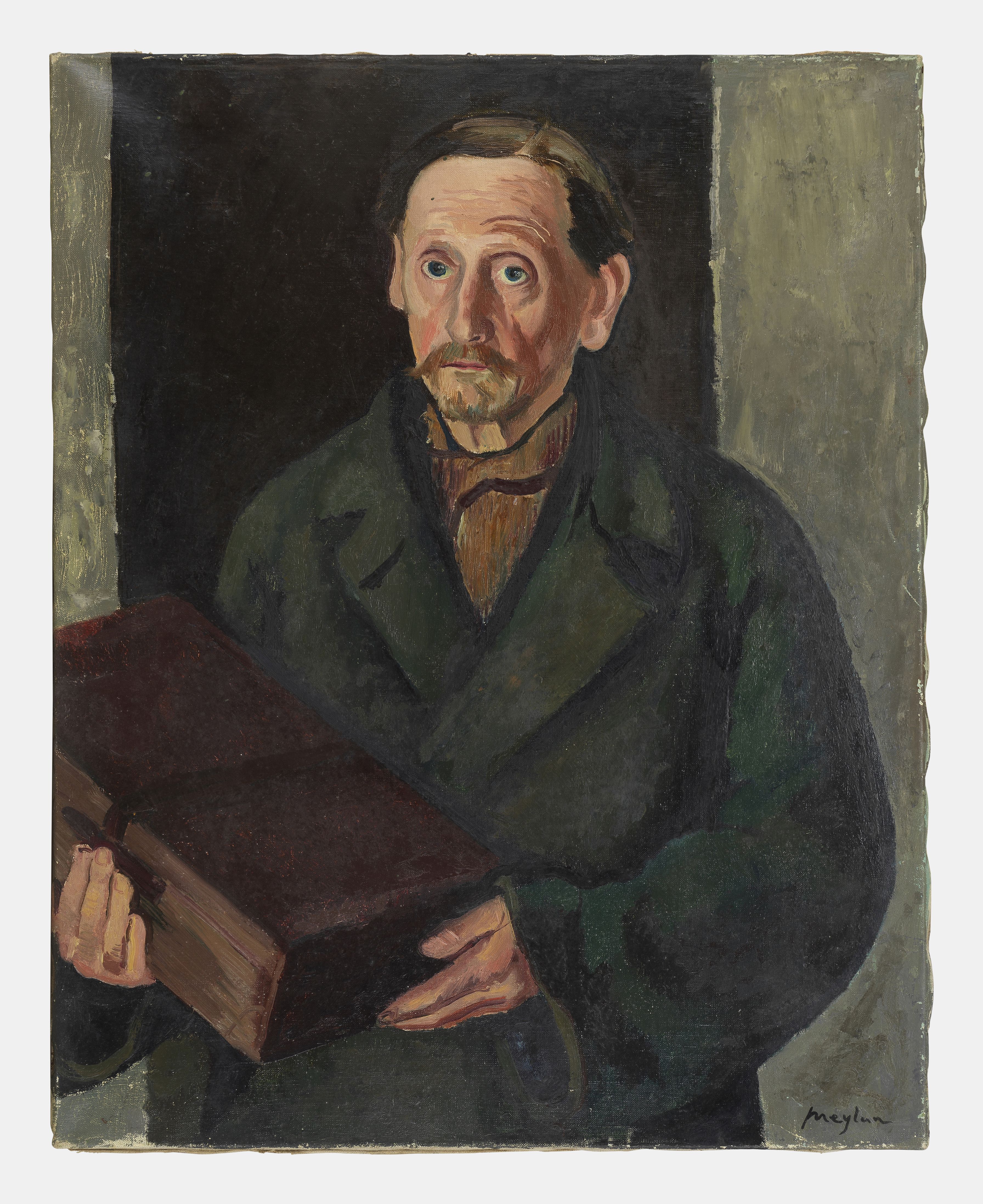 Portrait d’homme au livre, huile sur toile, signée, 80x64 cm