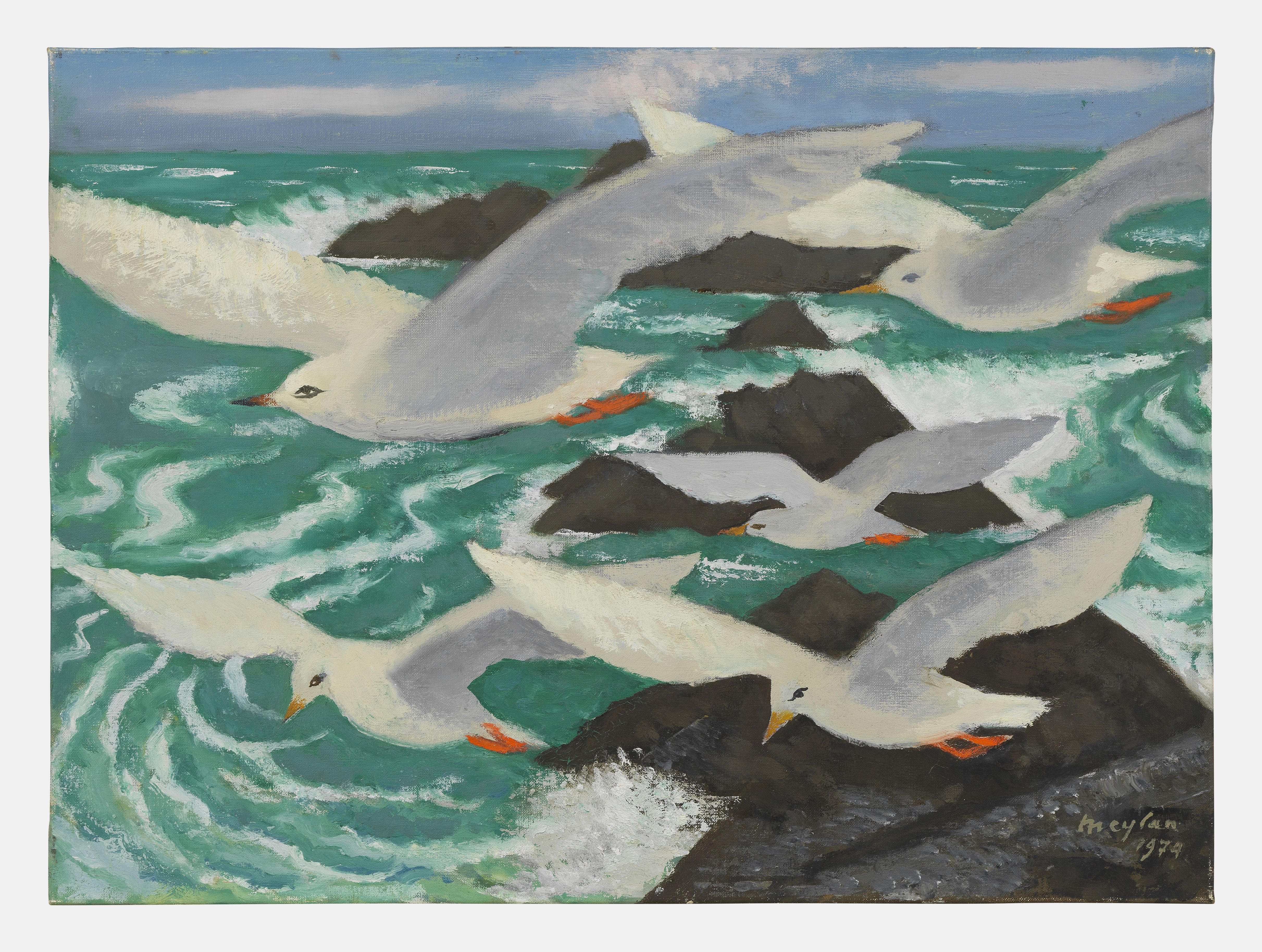 Les mouettes à la mer, huile sur toile, signée et datée 1974, 55...