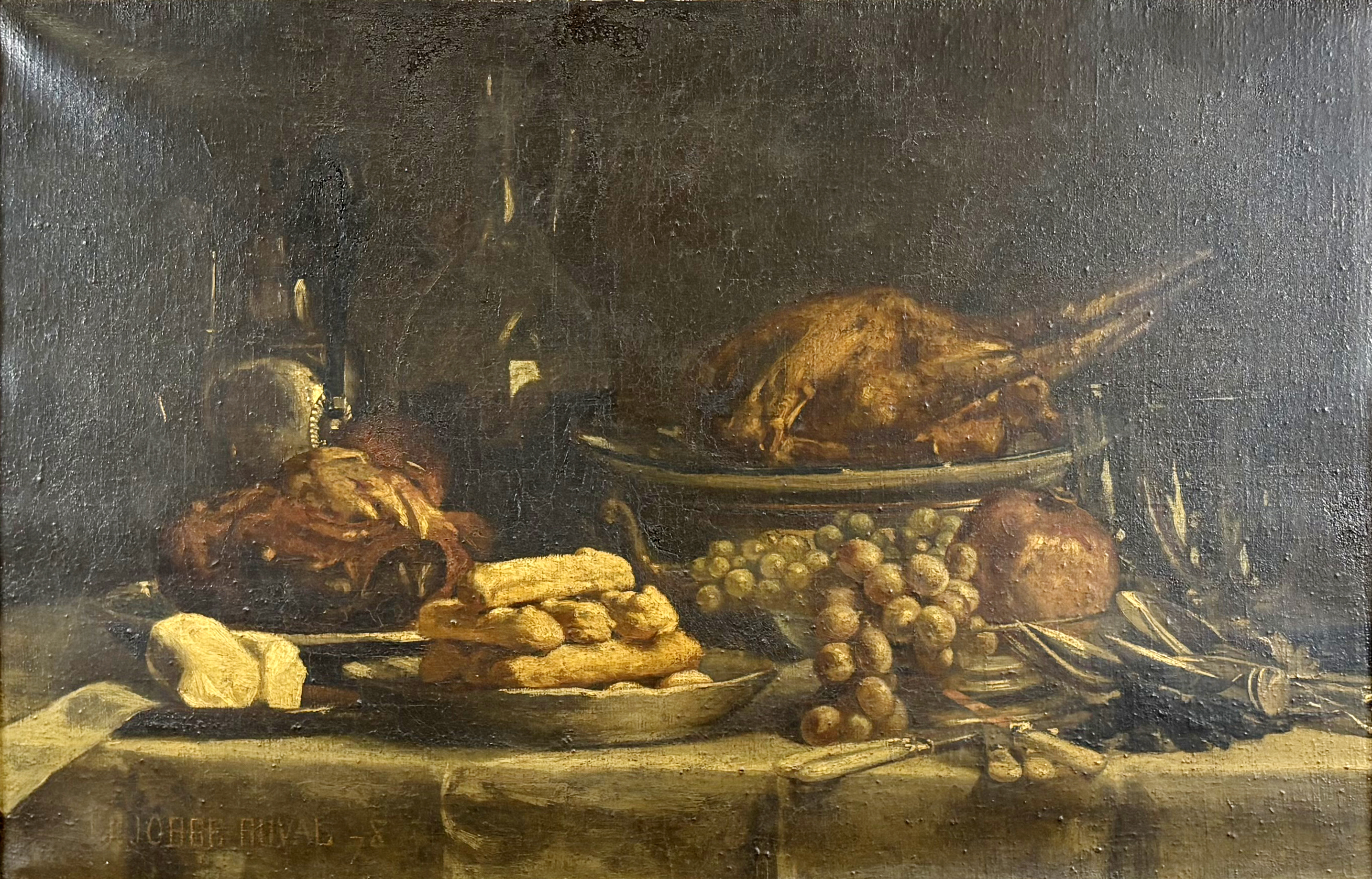 Plateau de fruits sur entablement, huile sur toile, signée, 80x6...