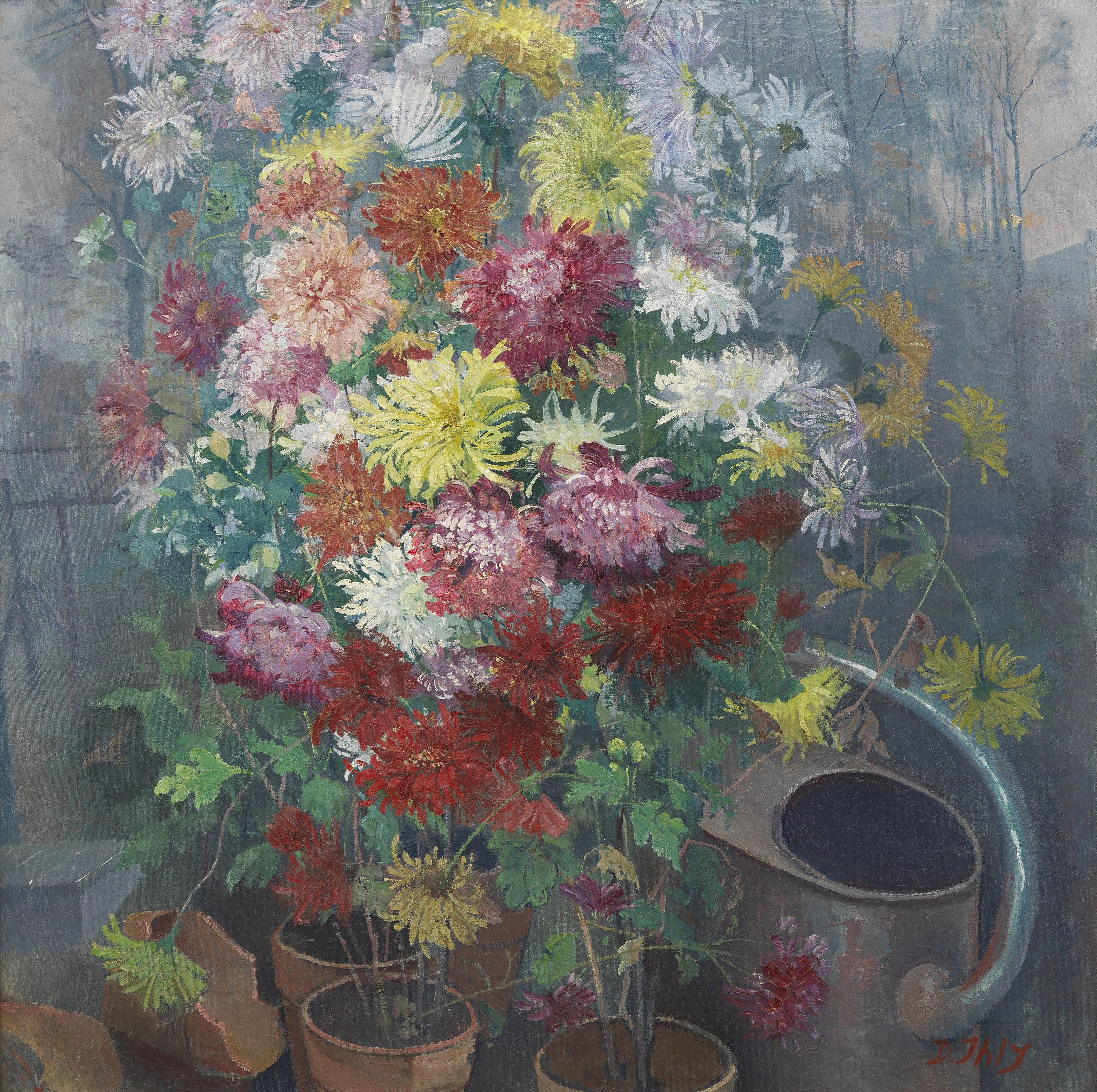 Nature morte aux dahlias, huile sur panneau, 78x60 cm