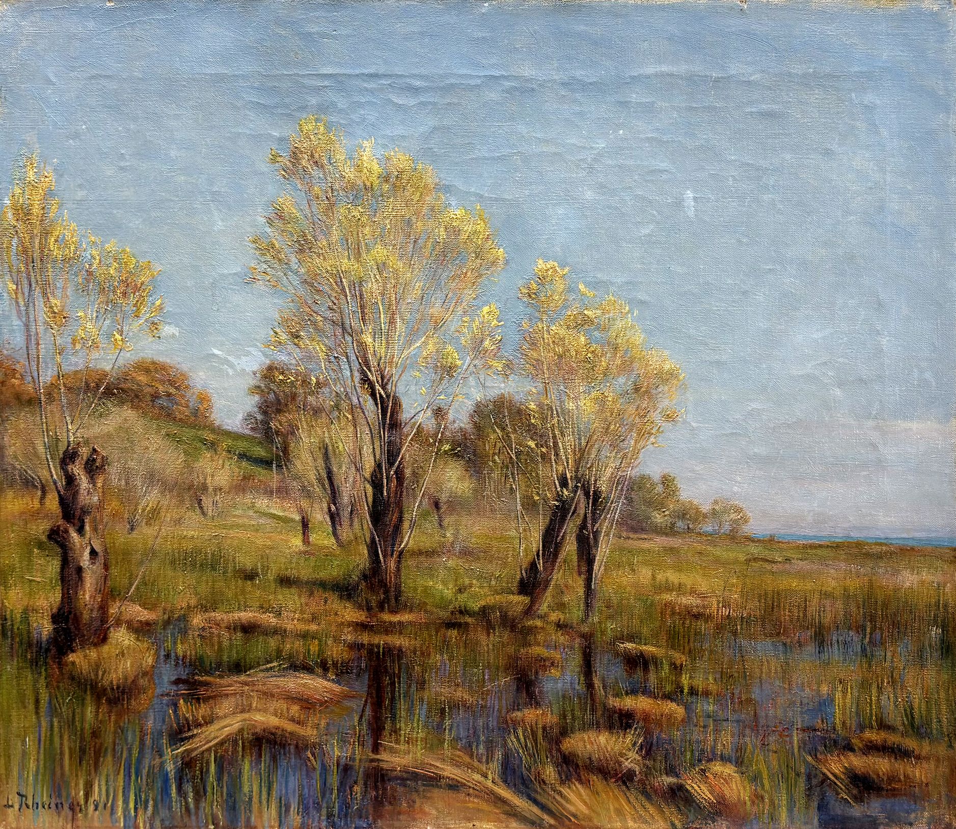 Les roseaux en été, huile sur toile, signée, 50x58 cm
