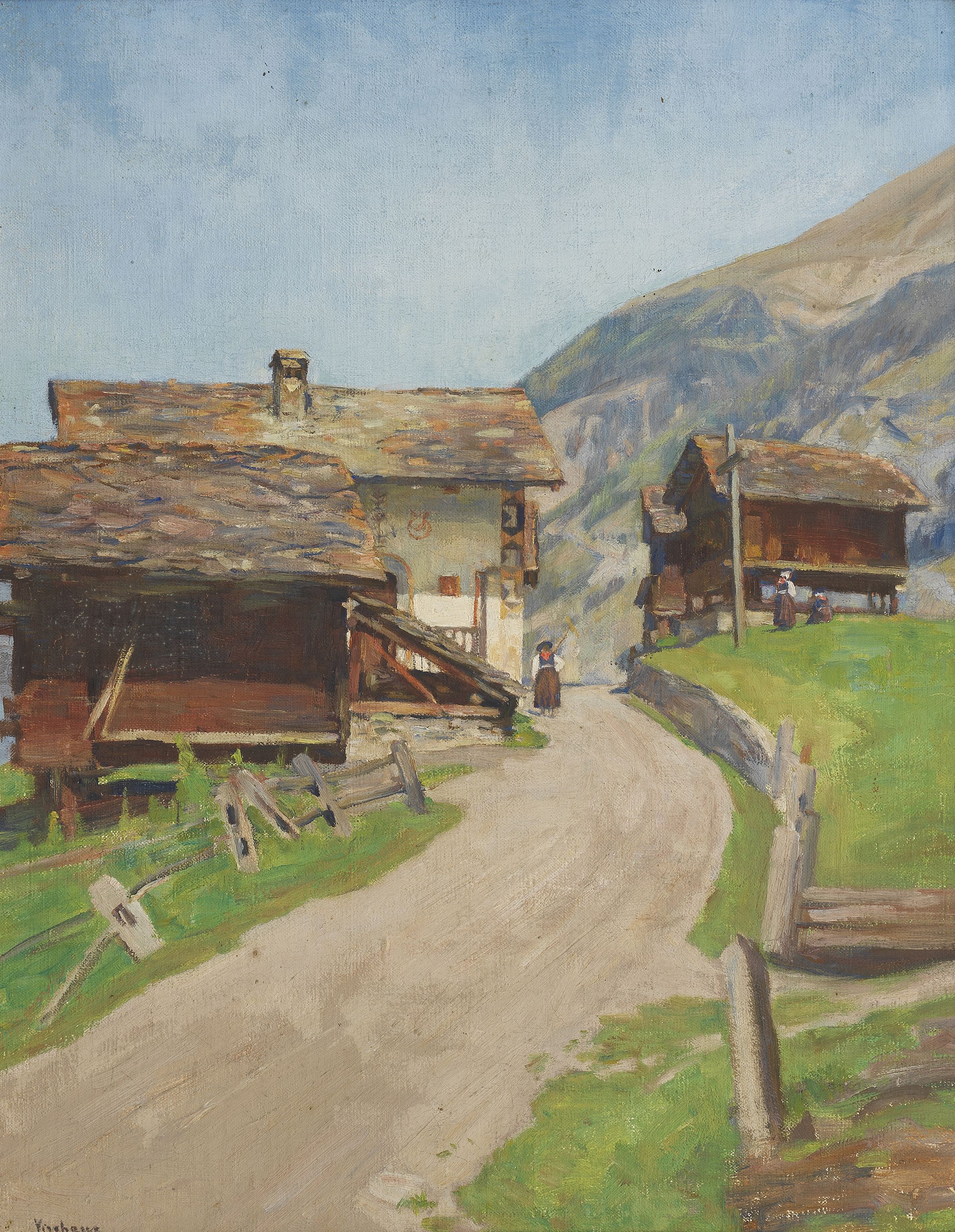 Mazots, étude pour le tableau "Sortie de la messe à Evolène", hu...