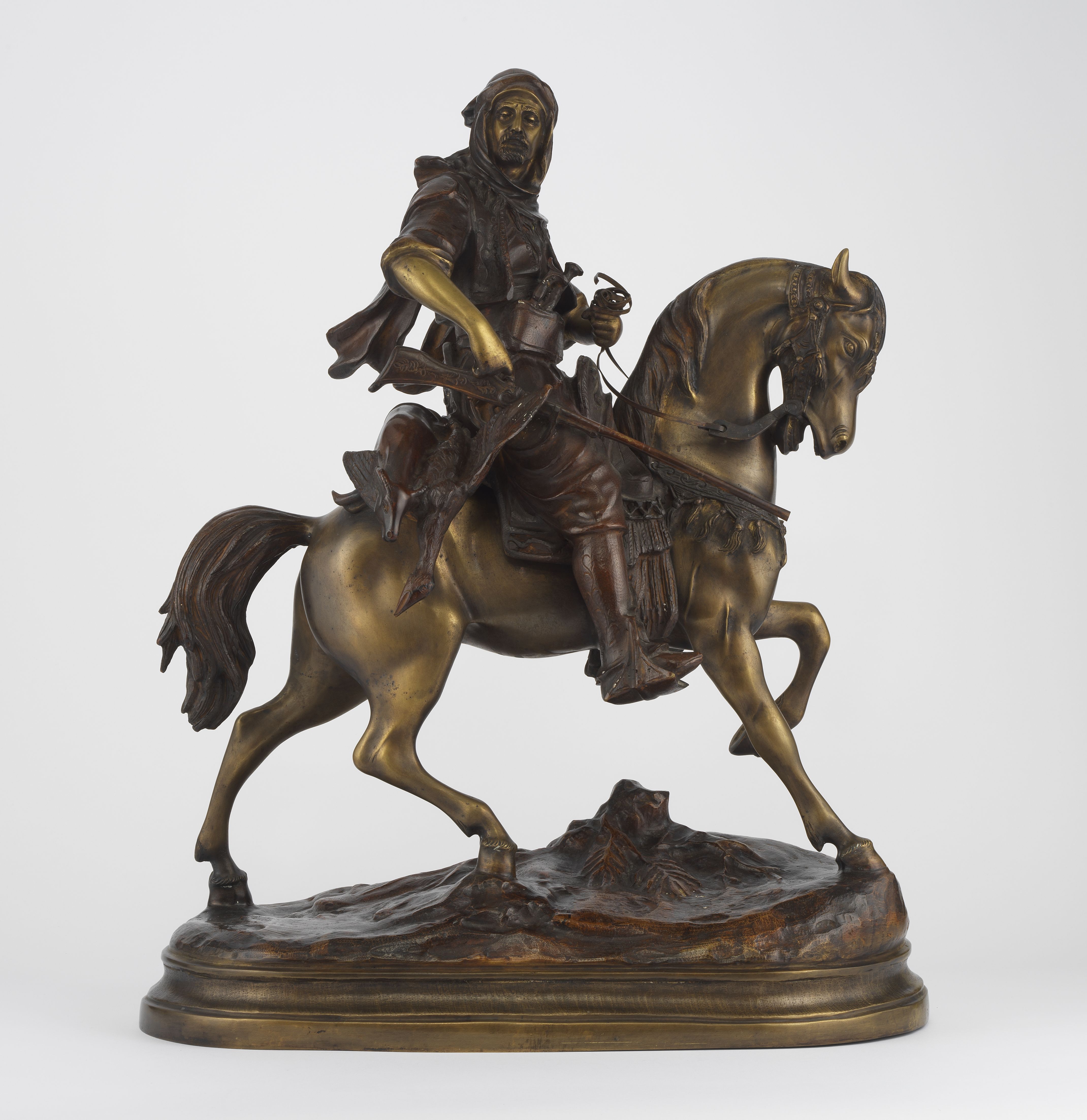 Cavalier arabe revenant de la chasse, bronze, signé Barge Fils,...