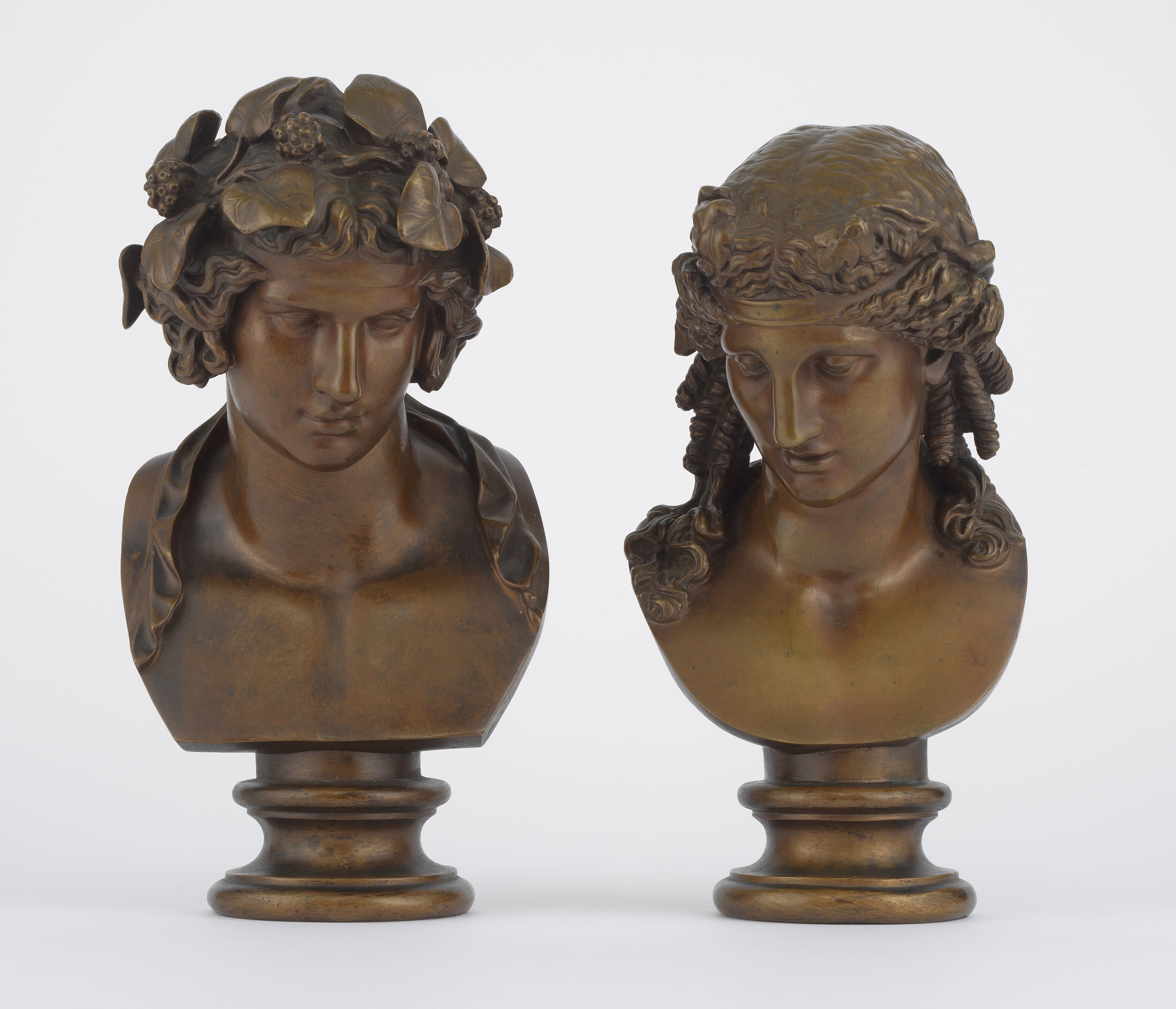 Paire de bronzes à patine brune, H 28 et 30 cm