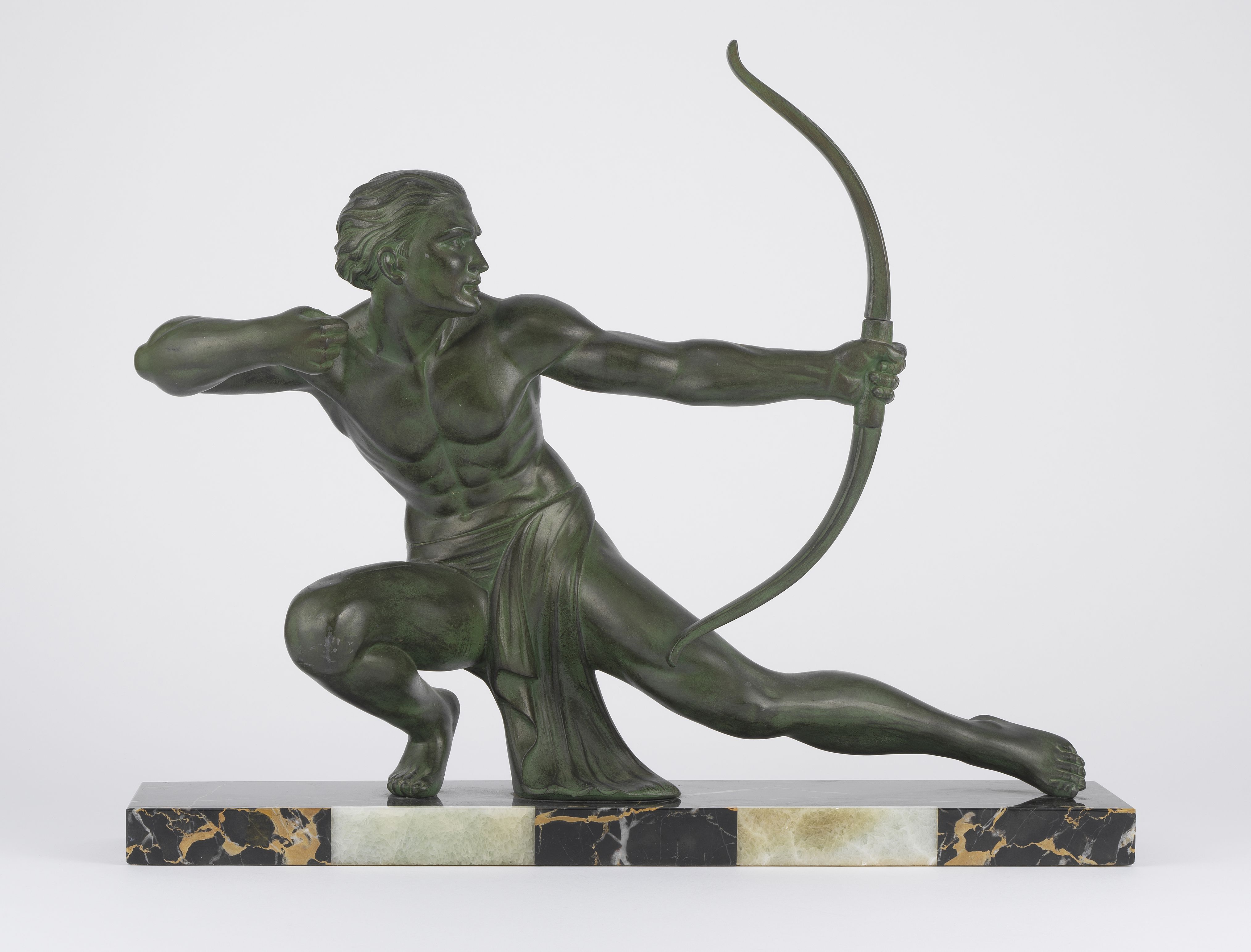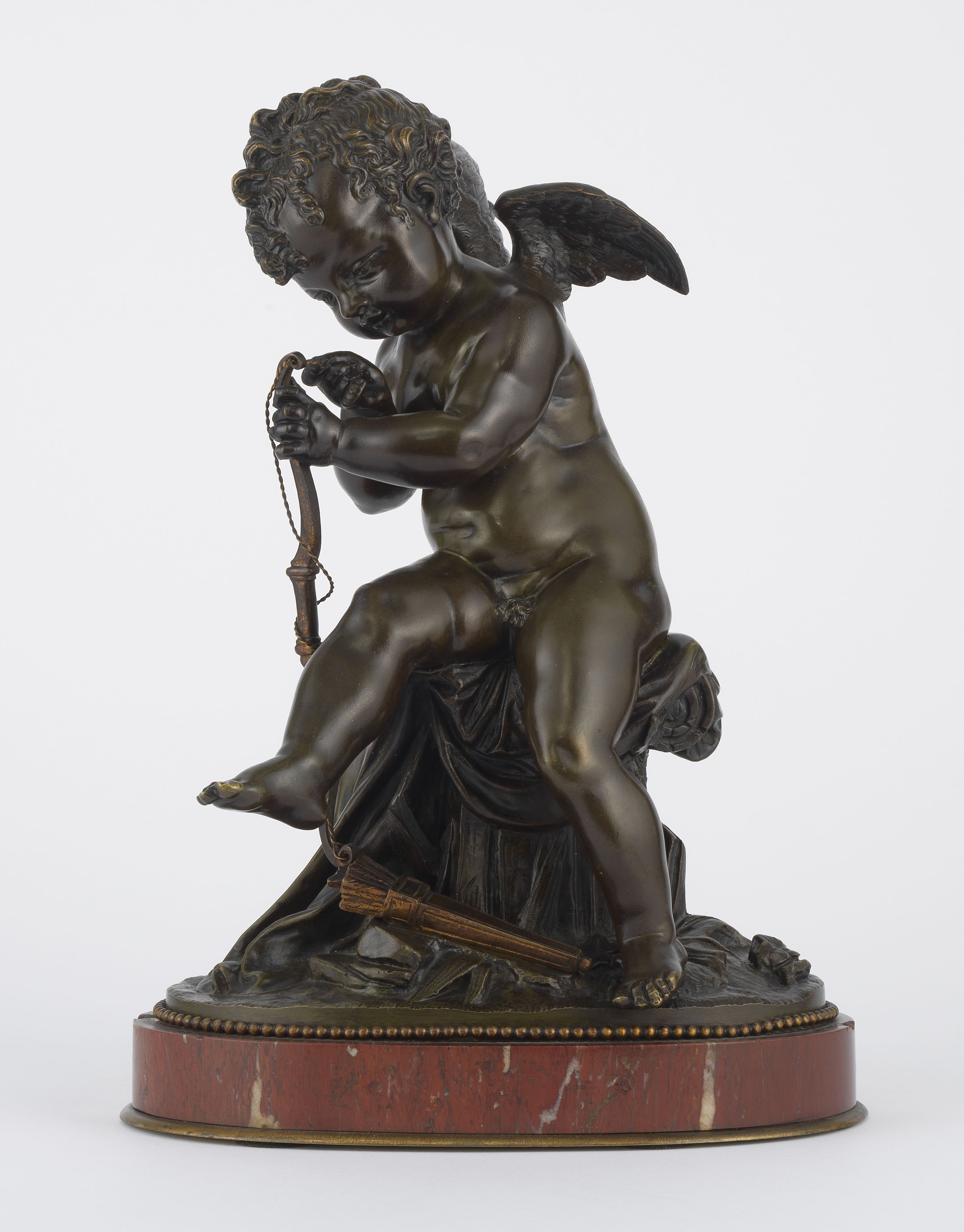 Cupidon bandant son arc, bronze à patine foncée, piètement en ma...