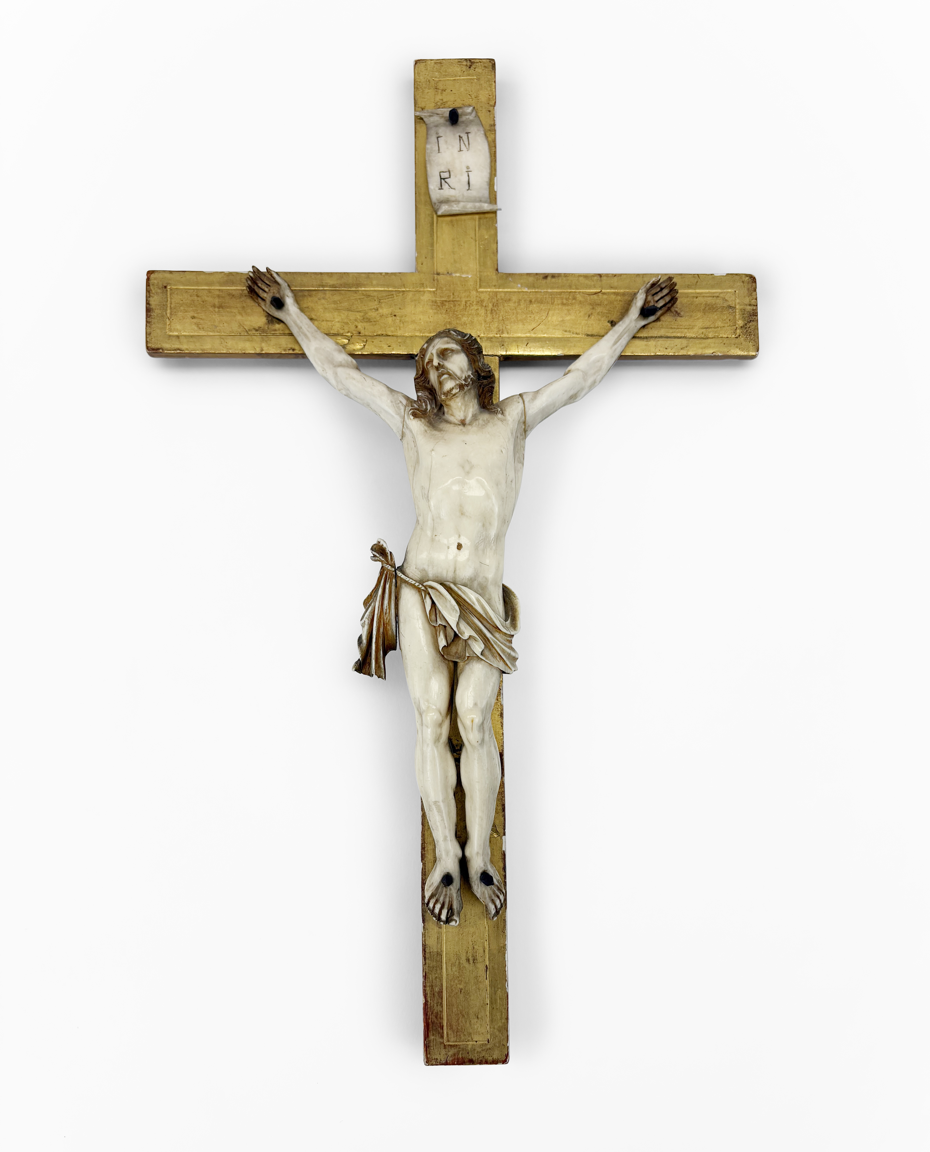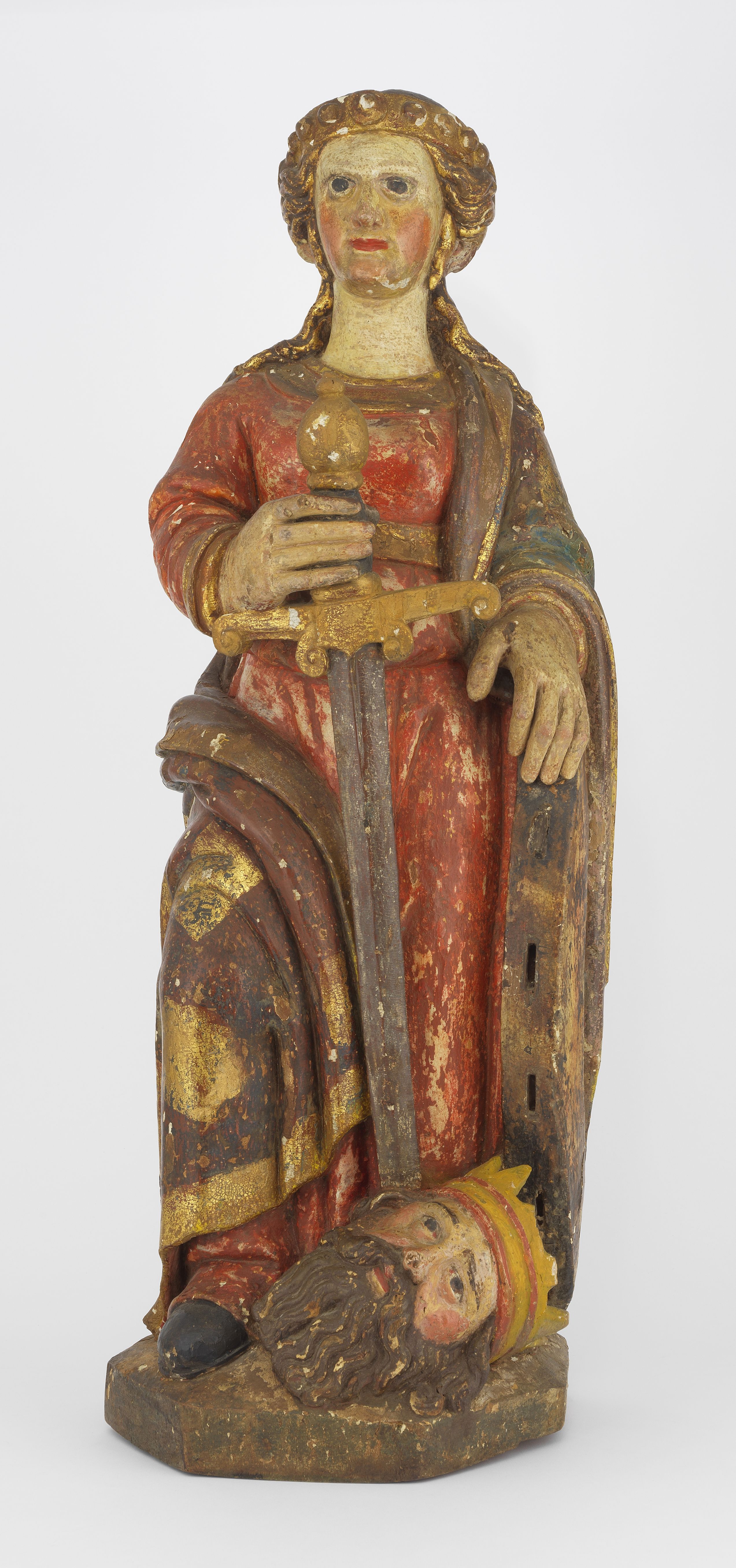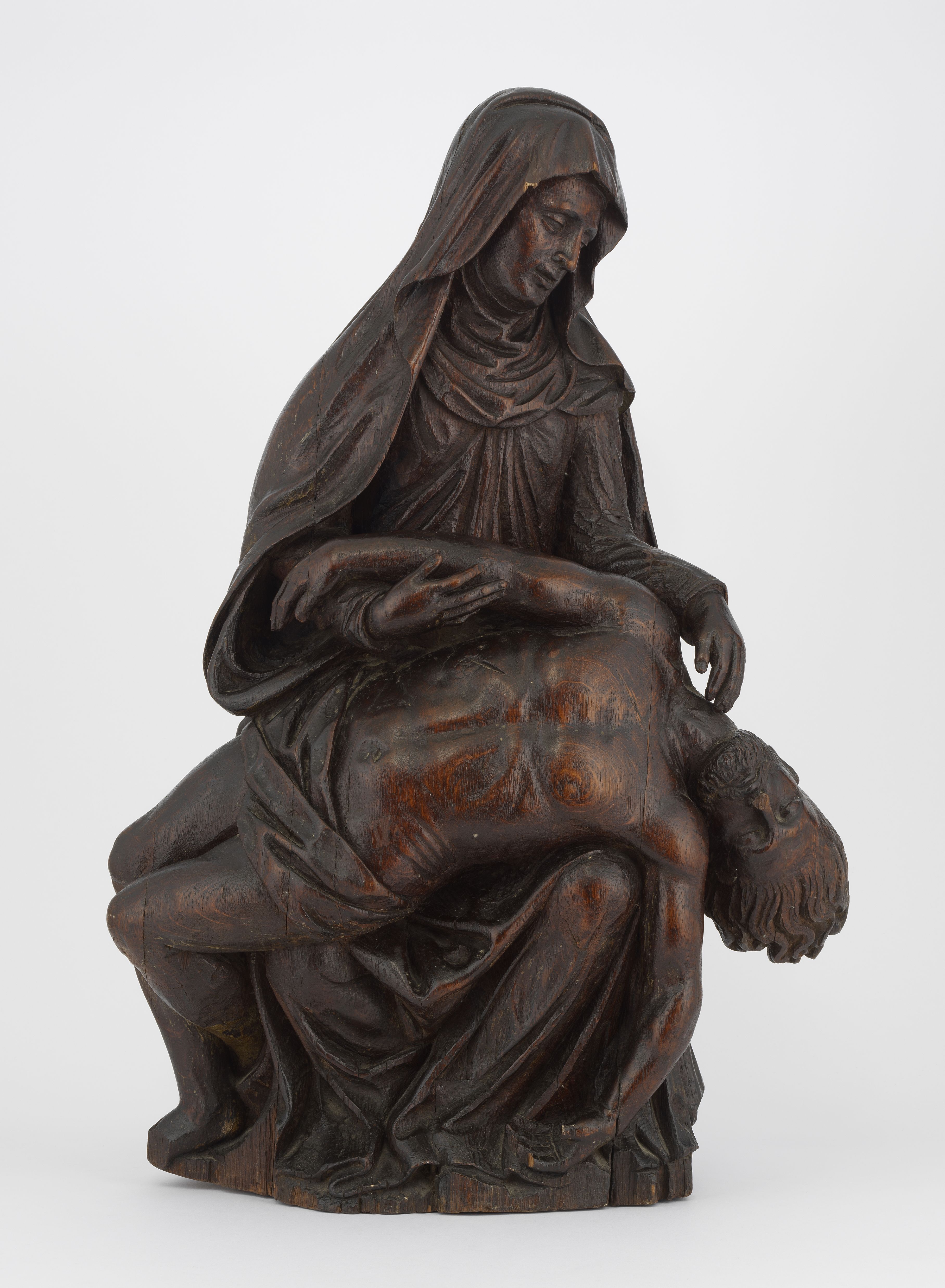 Bois stuqué peint, XVIIe-XVIIIe s, H 94 cm