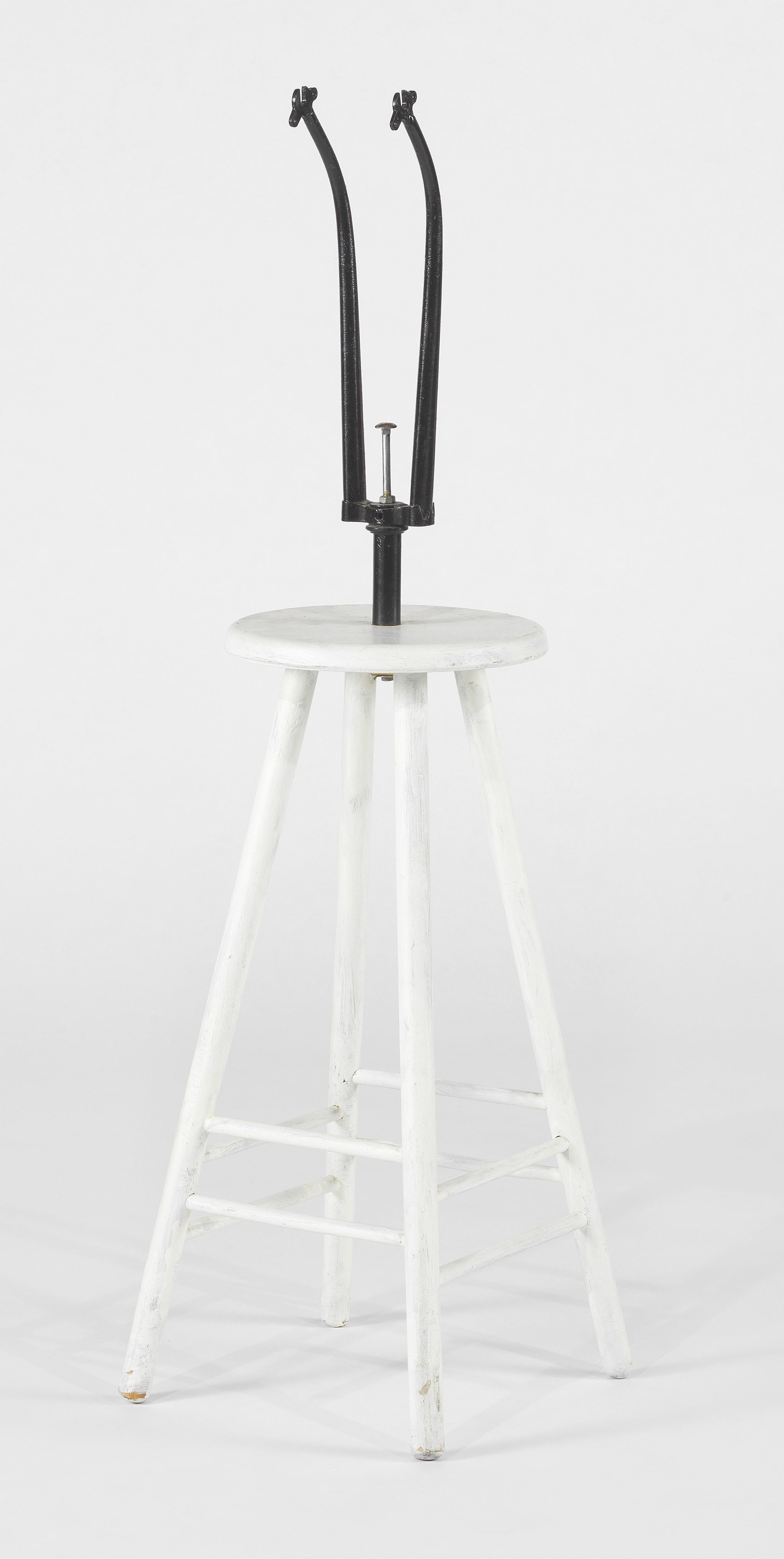 Ready made "La roue de bicyclette", bois et métal, H 117 cm (man...