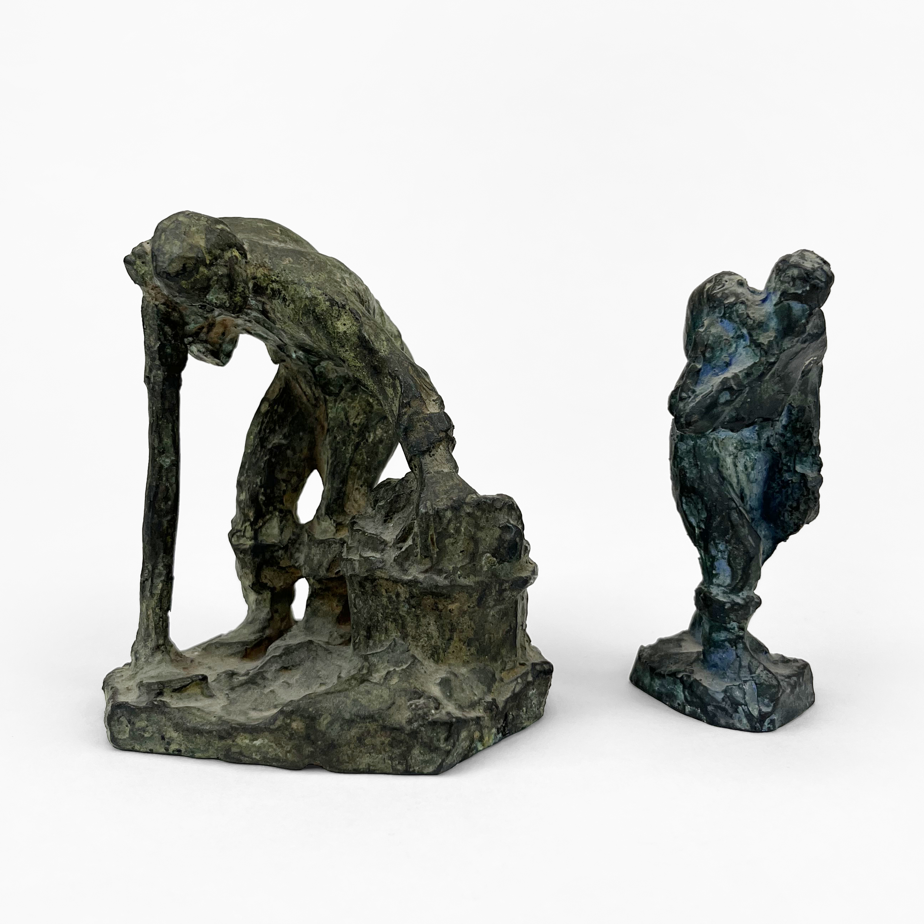 Deux figurines de travailleurs, deux bronzes, monogrammés AL, H...