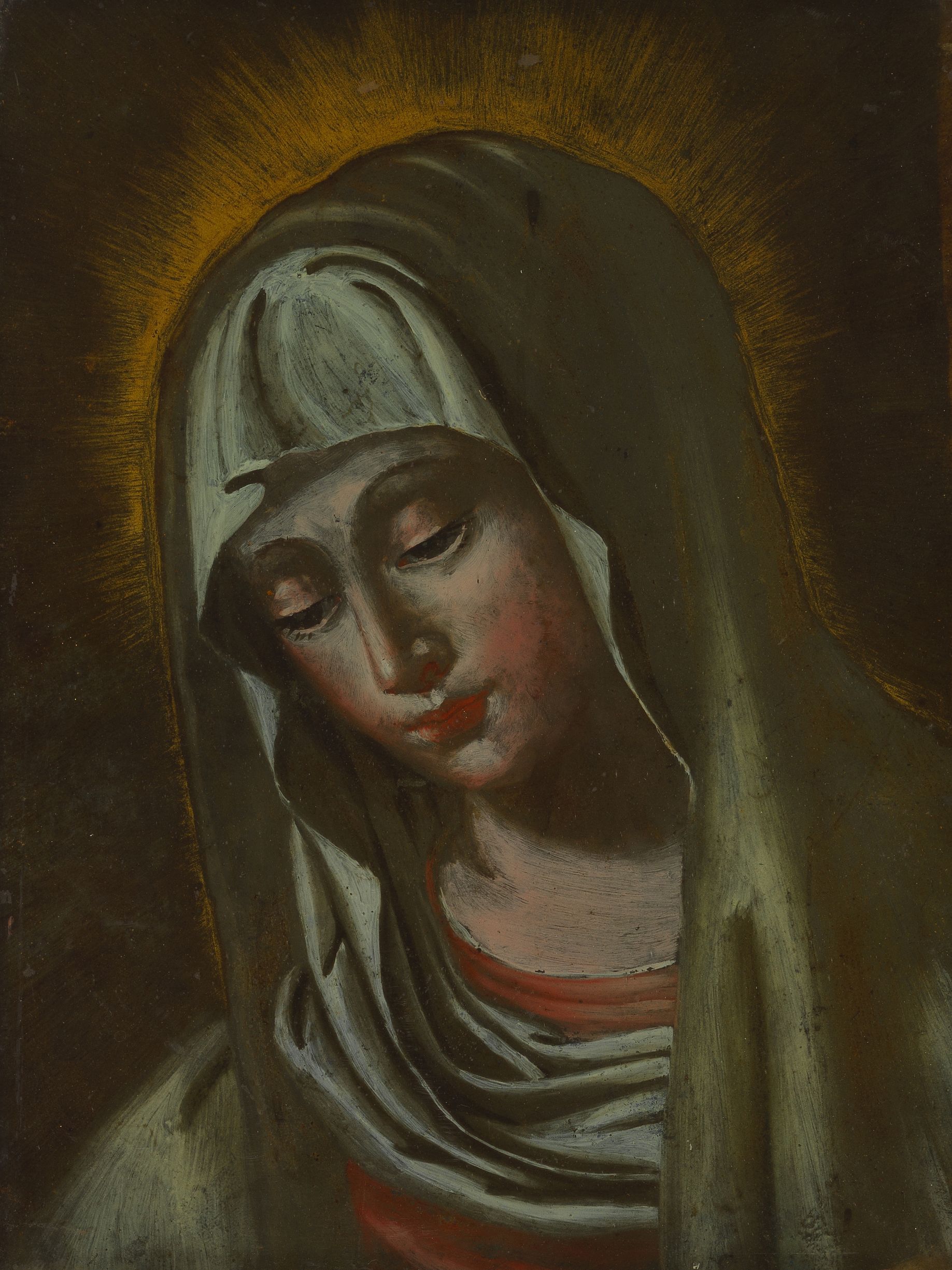 Sainte, peinture sous verre, 24,5x18,5 cm. Provenance: ancienne...