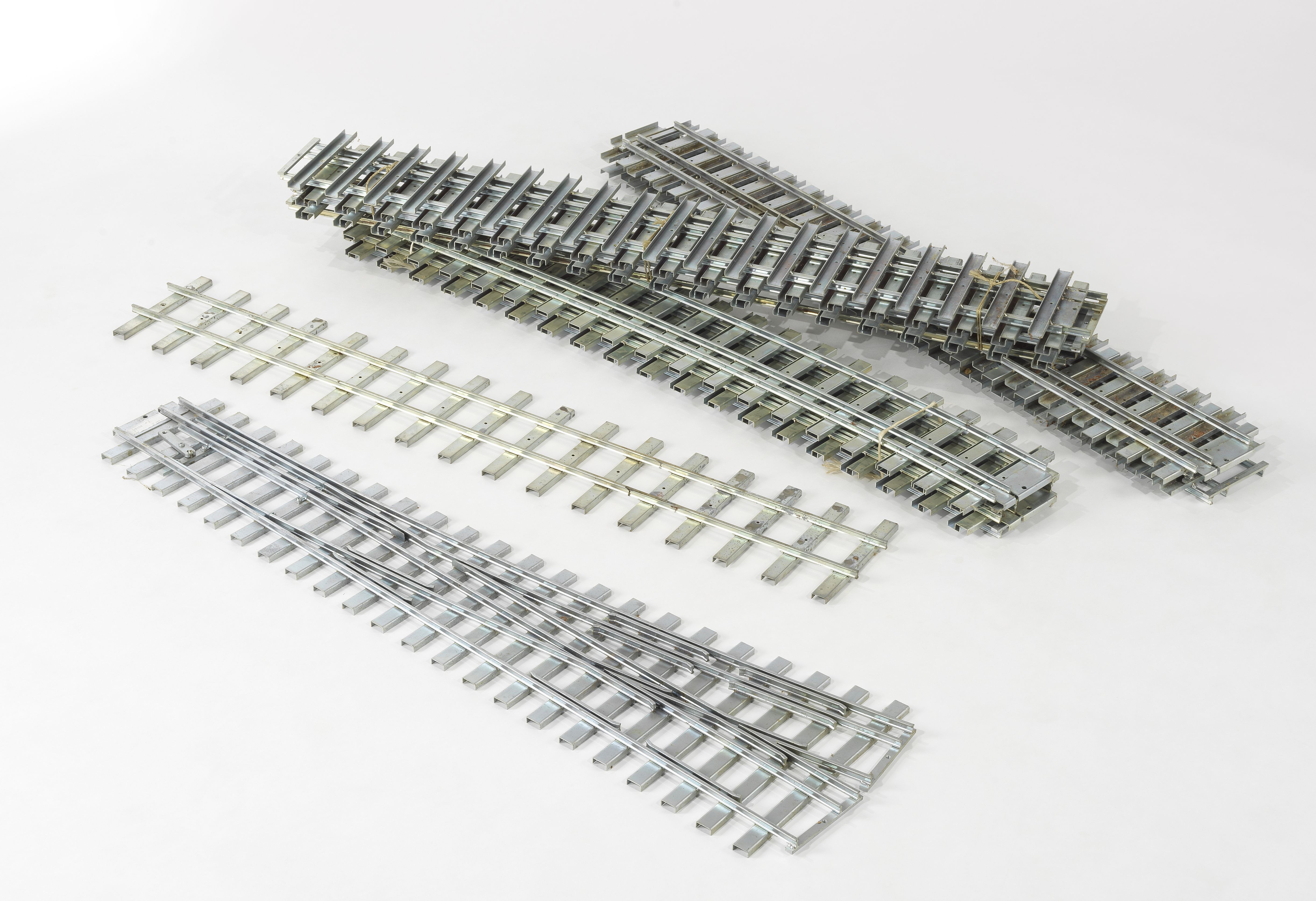 4786. Ensemble d'environ 35 rails droits et courbés et un aiguilleur