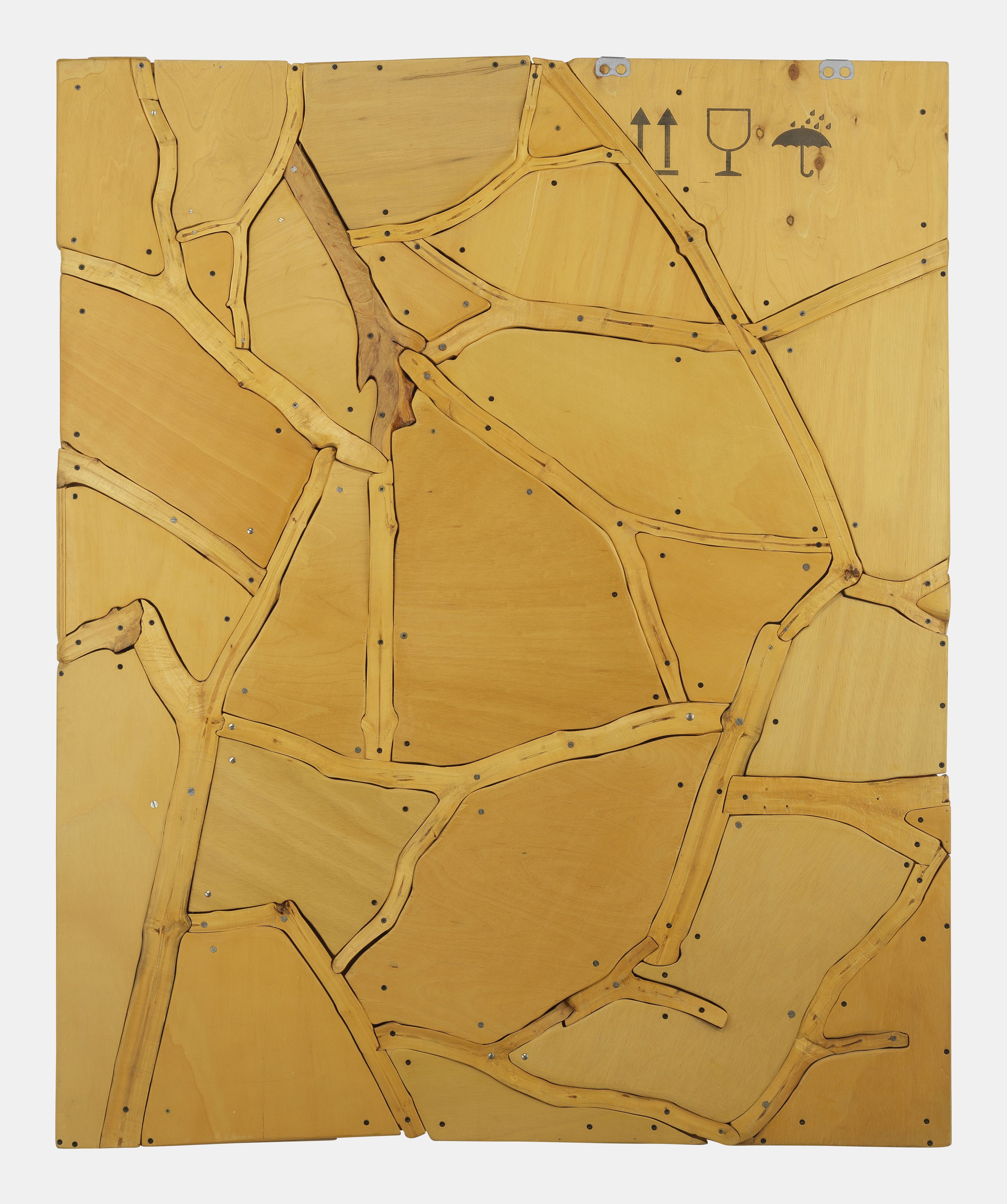 Pluies acides, bois, vis et métal, taches d'encre, signé, titré...