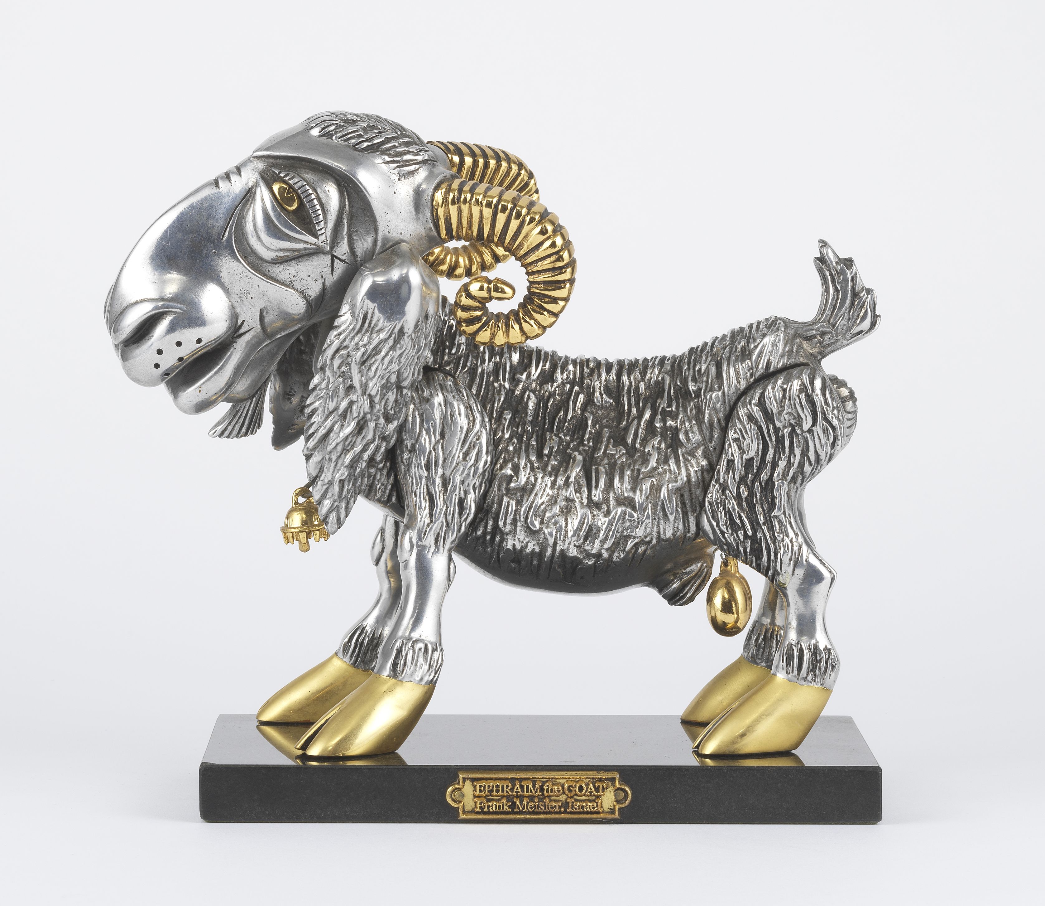 Ephraim the goat, aluminium et bronze doré, signé, no 200/980, L...