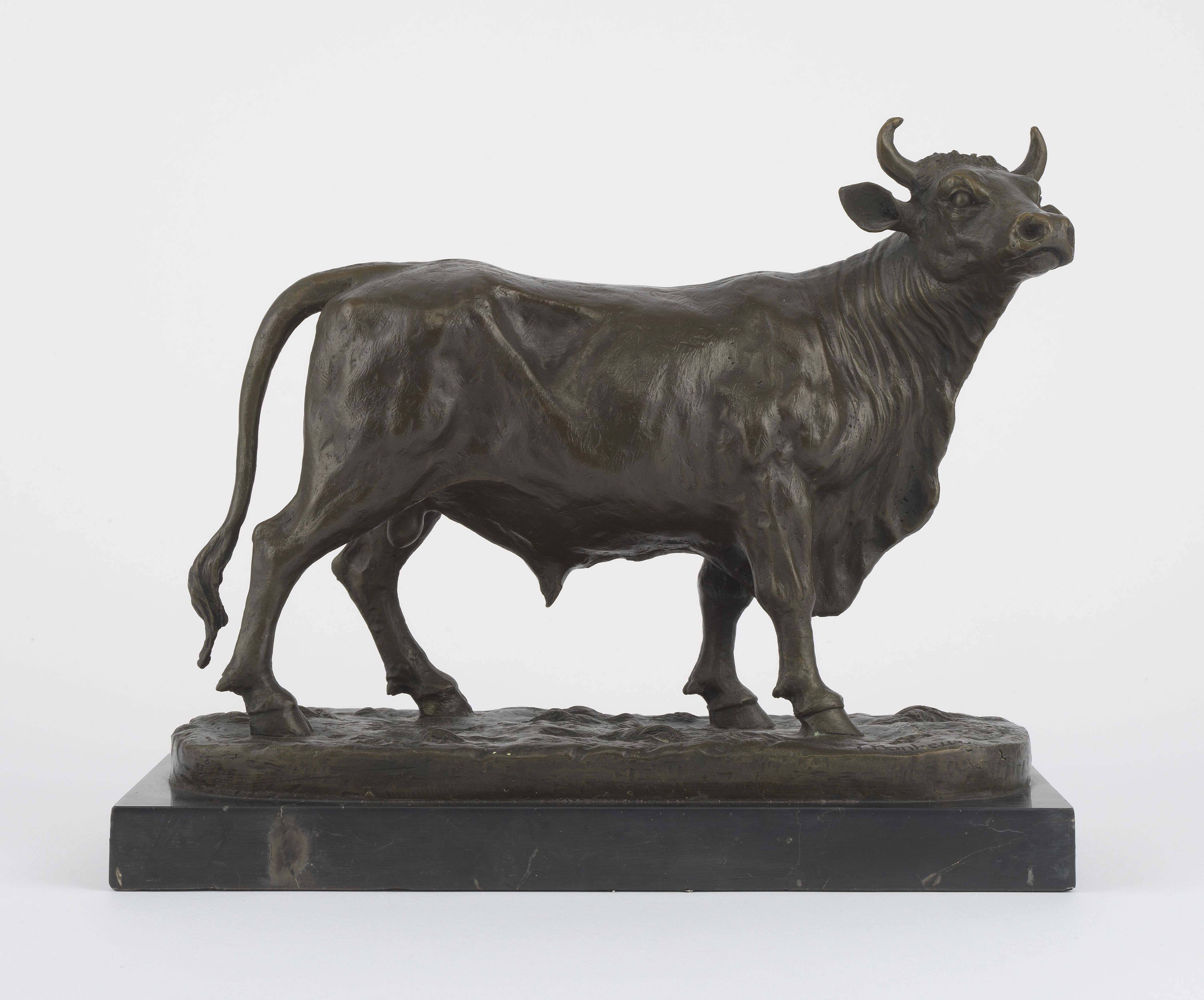 Taureau, bronze à patine foncée, signé, L 38 cm
