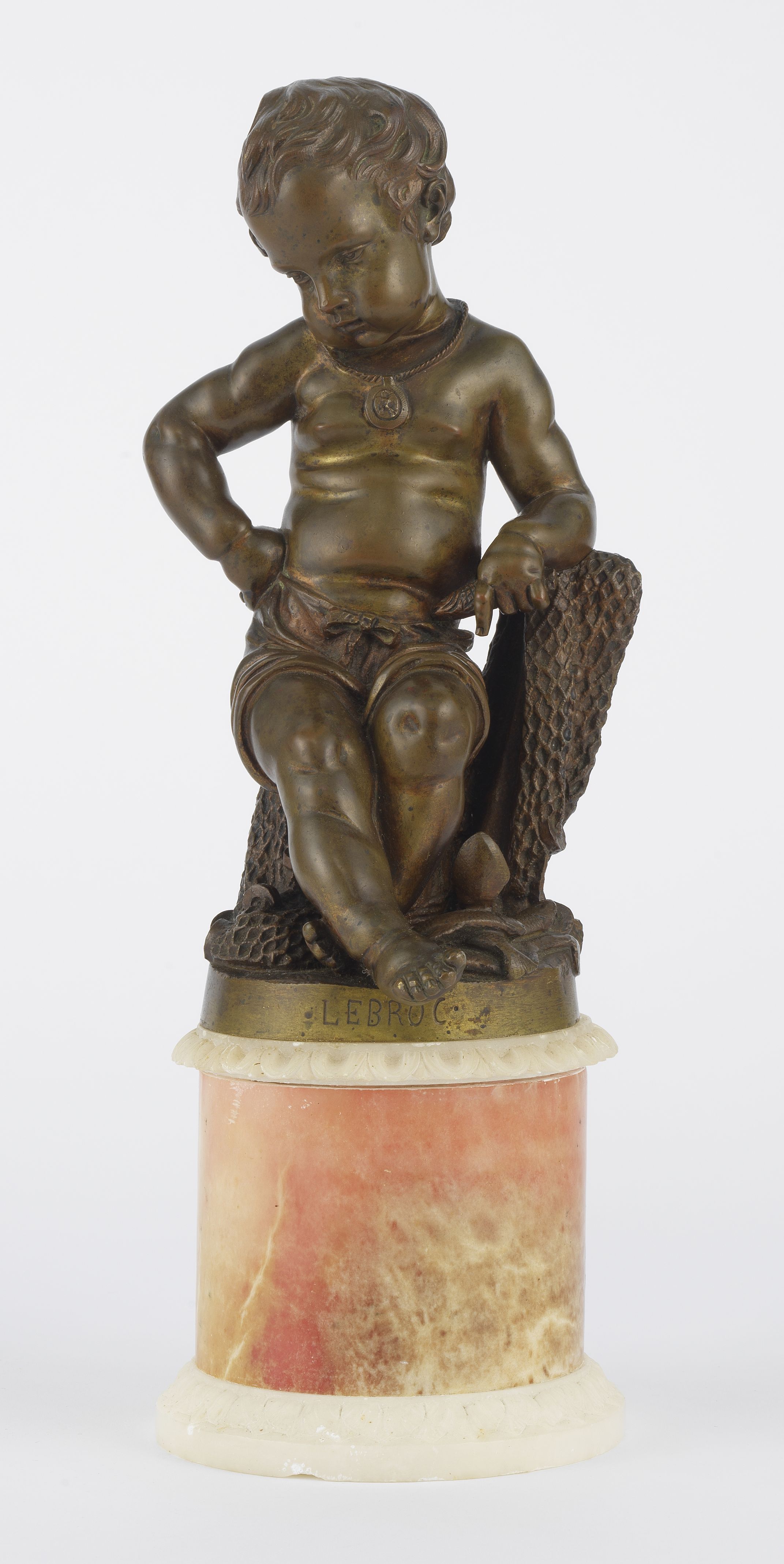 Allégorie de la pêche, bronze à patine brune, piètement en albât...