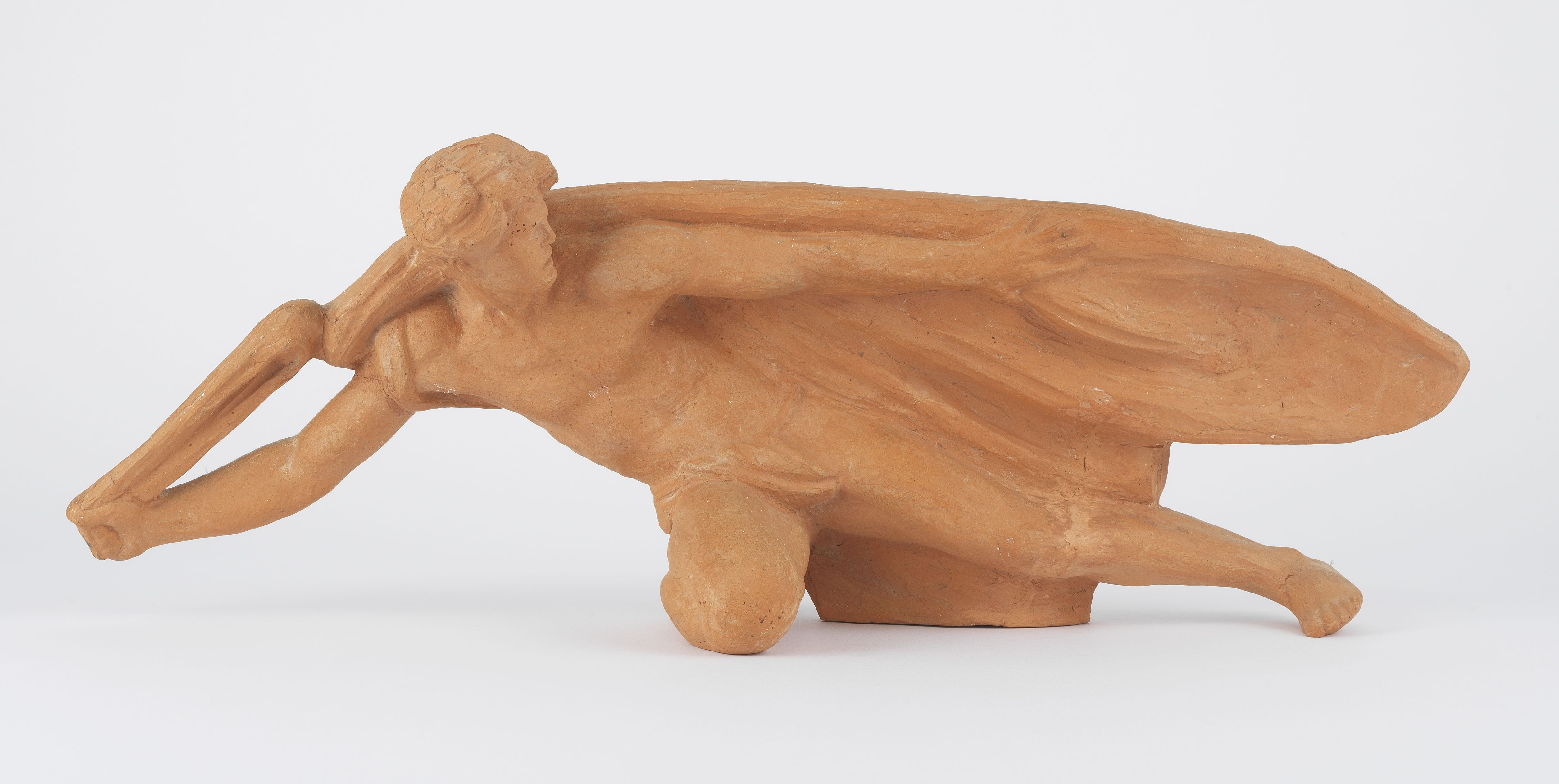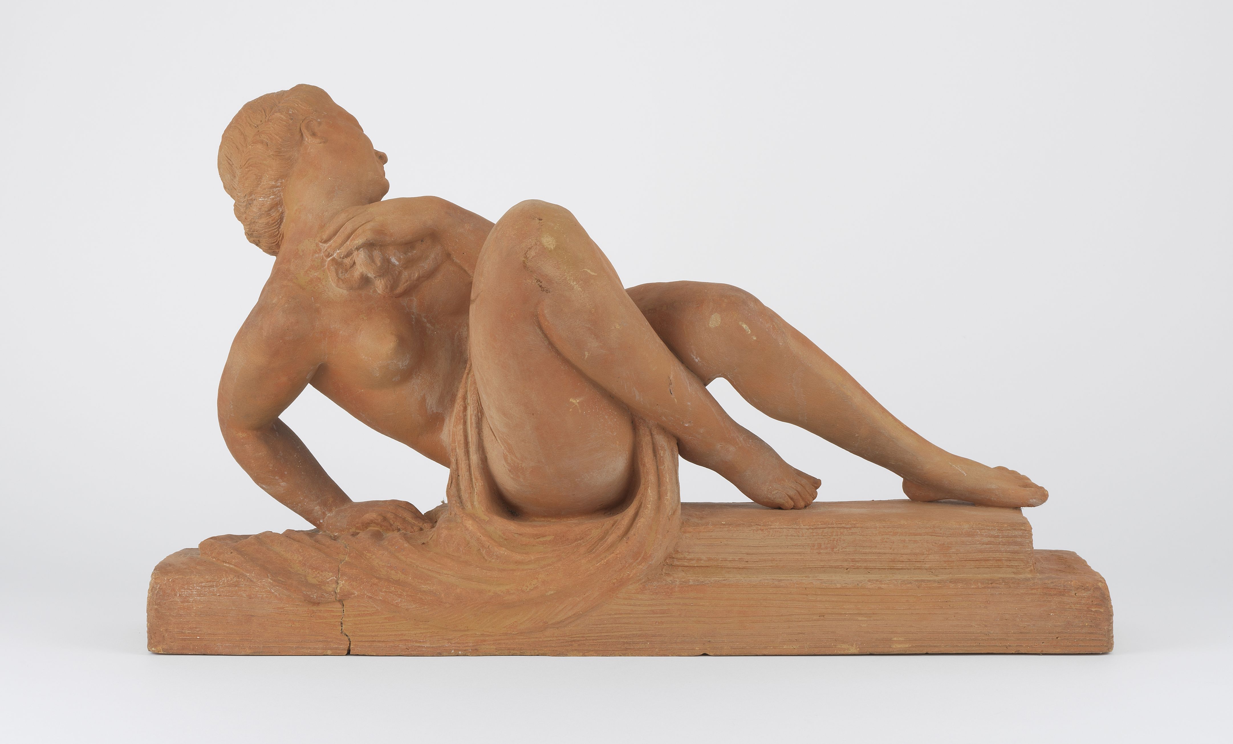 Terre cuite signée, édition Etling, cassée et restaurée, L 55 cm