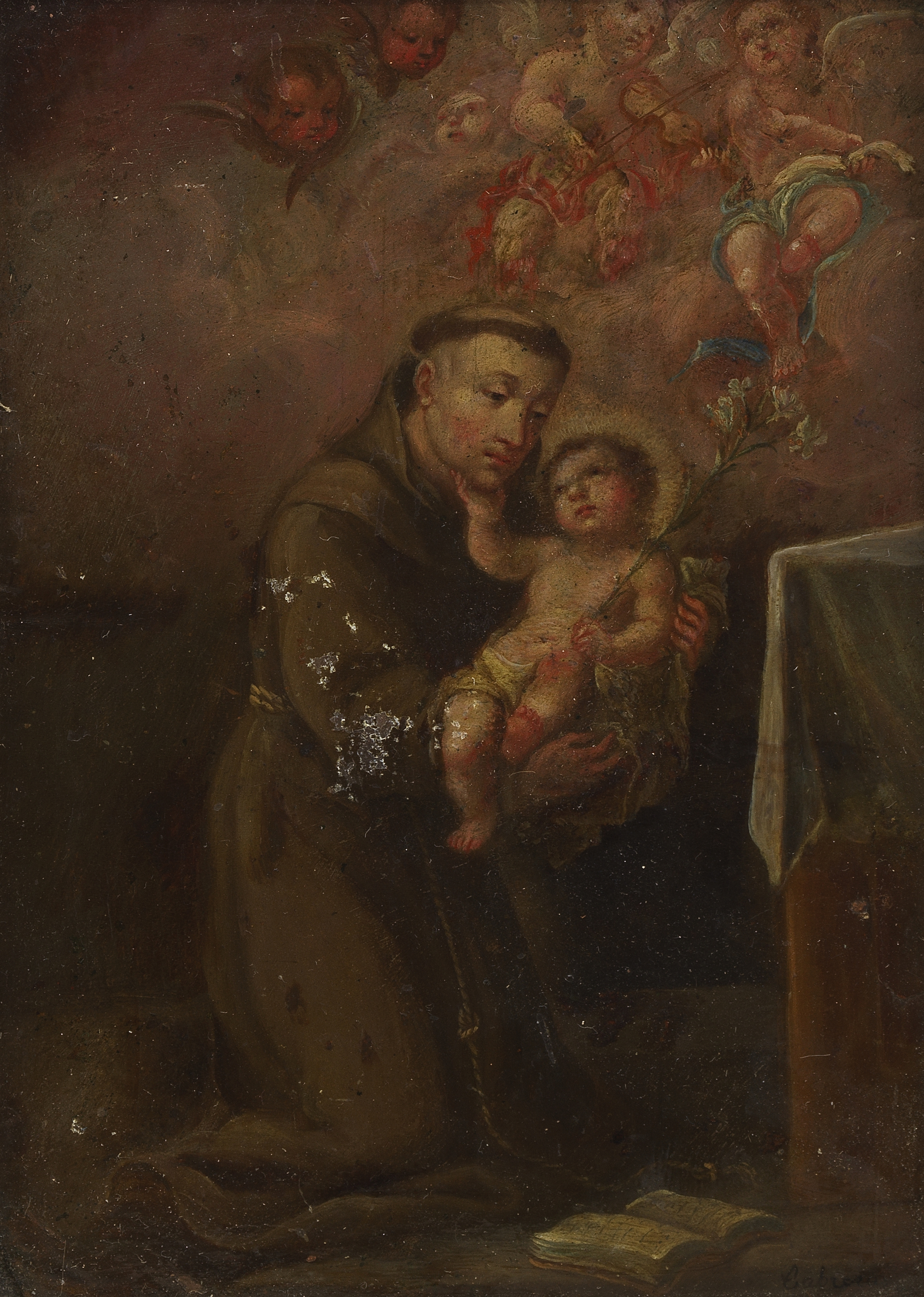 Saint Antoine de Padoue, huile sur cuivre, signée, 13x9 cm
