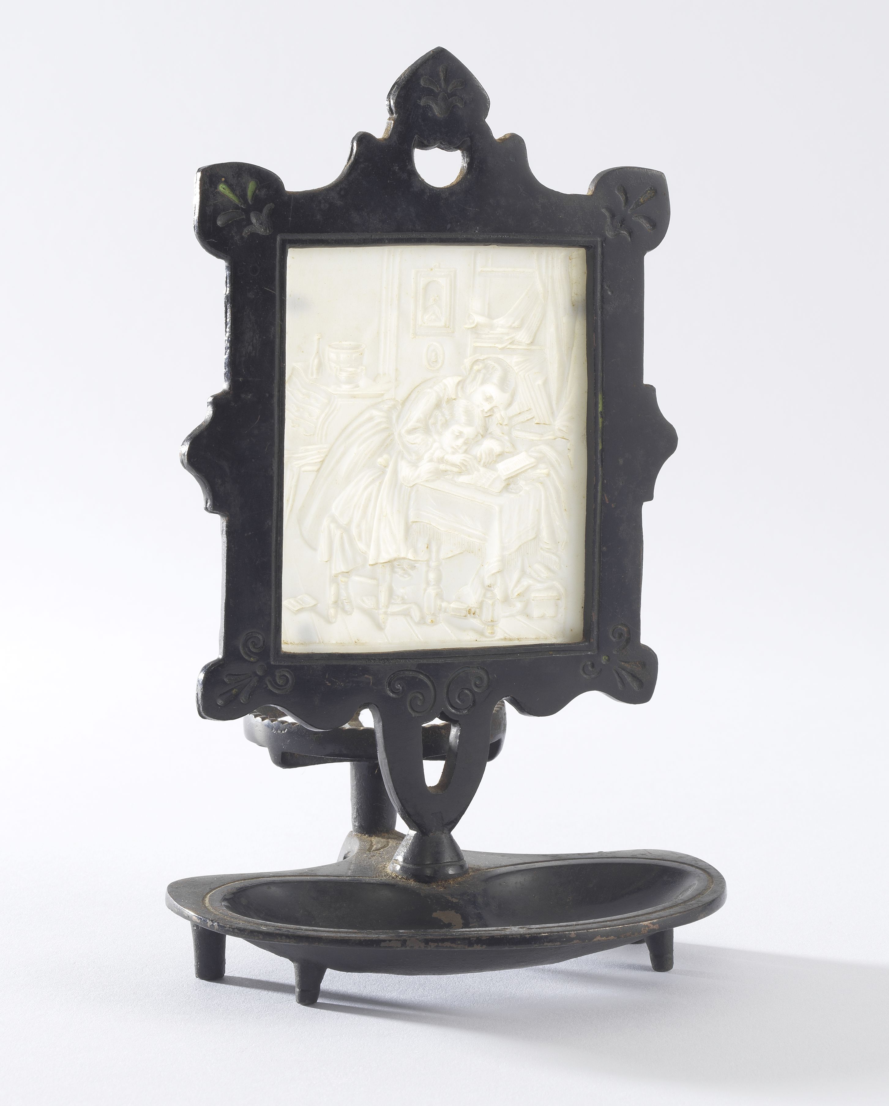 4766. Plaque en lithophanie et socle en bois noirci, fin XIXe s