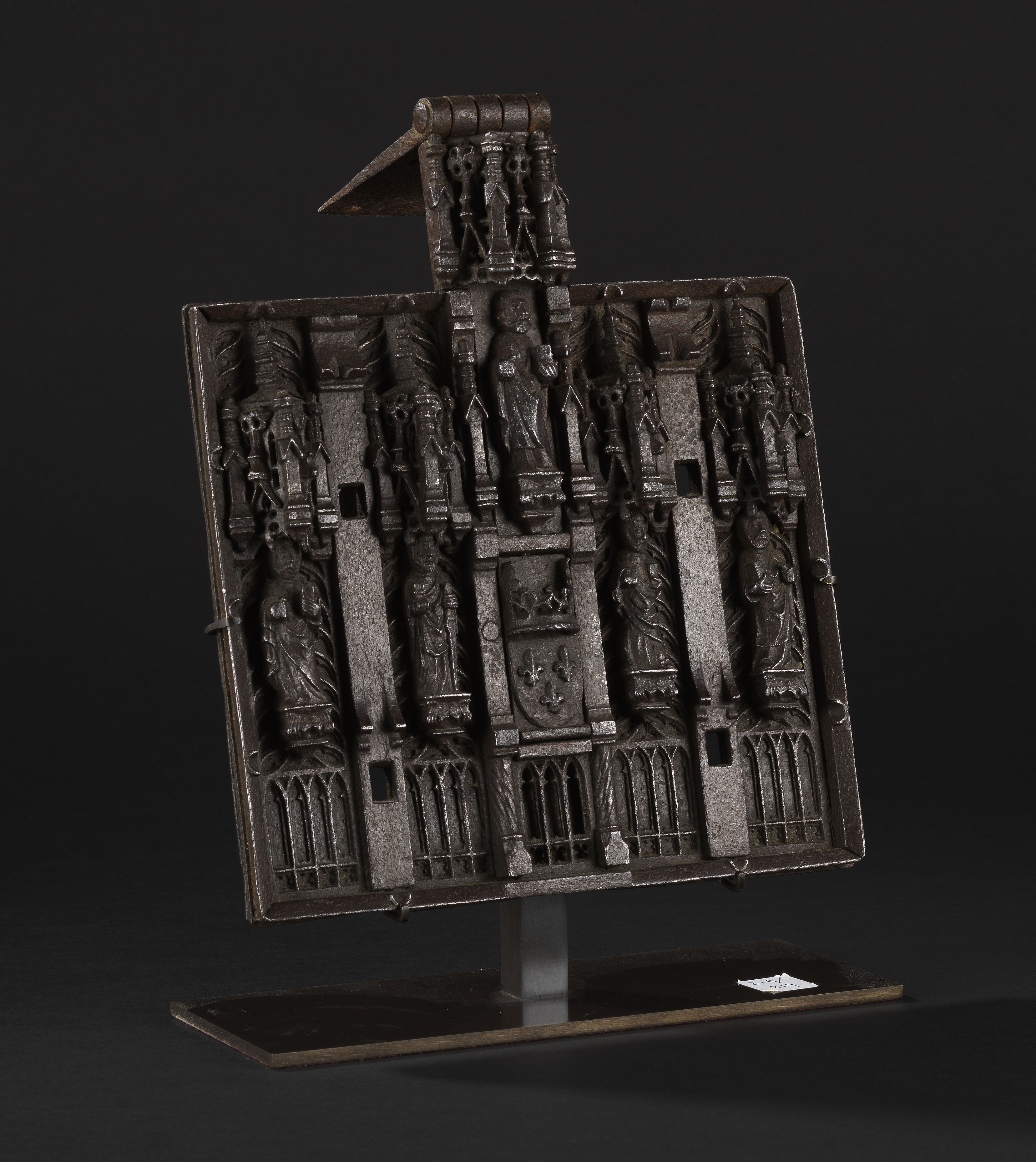 4778. Serrure gothique à décor des armes de France, de Saint Pierre et...