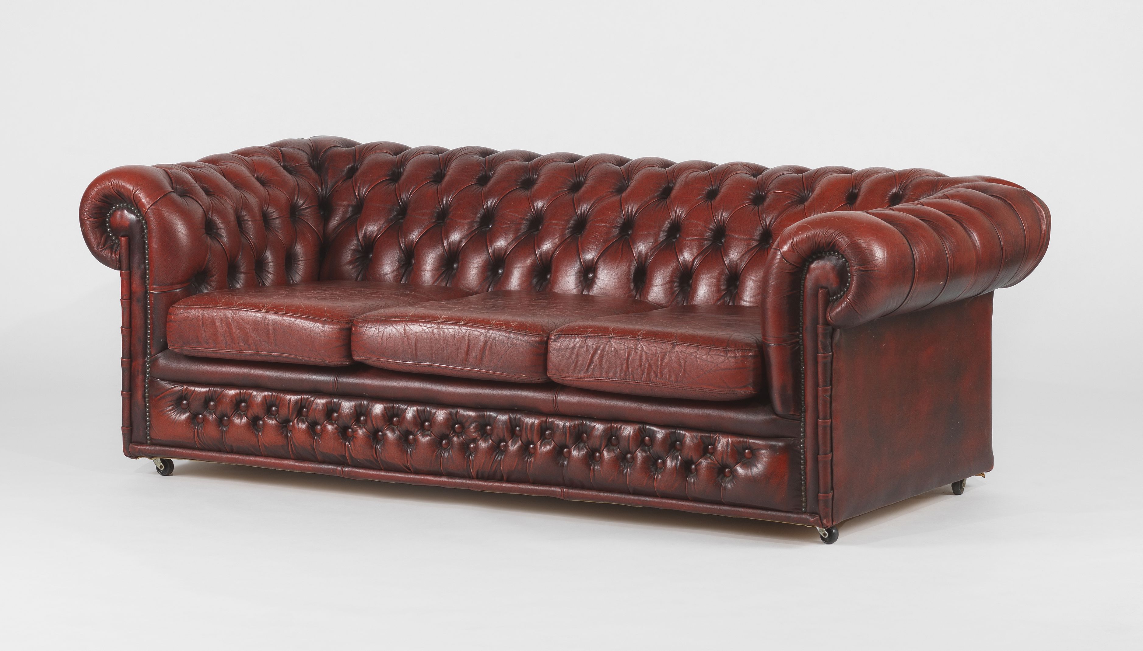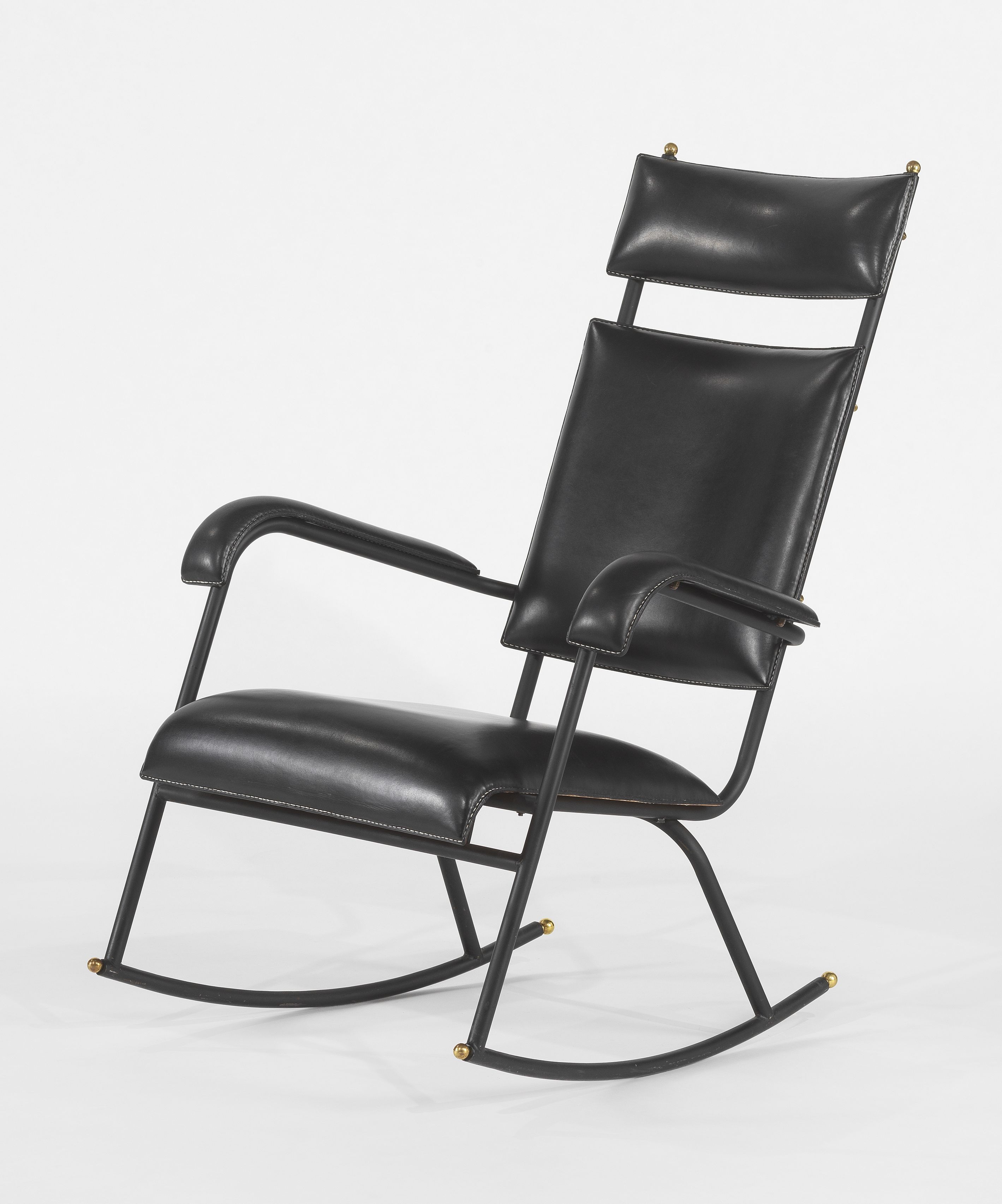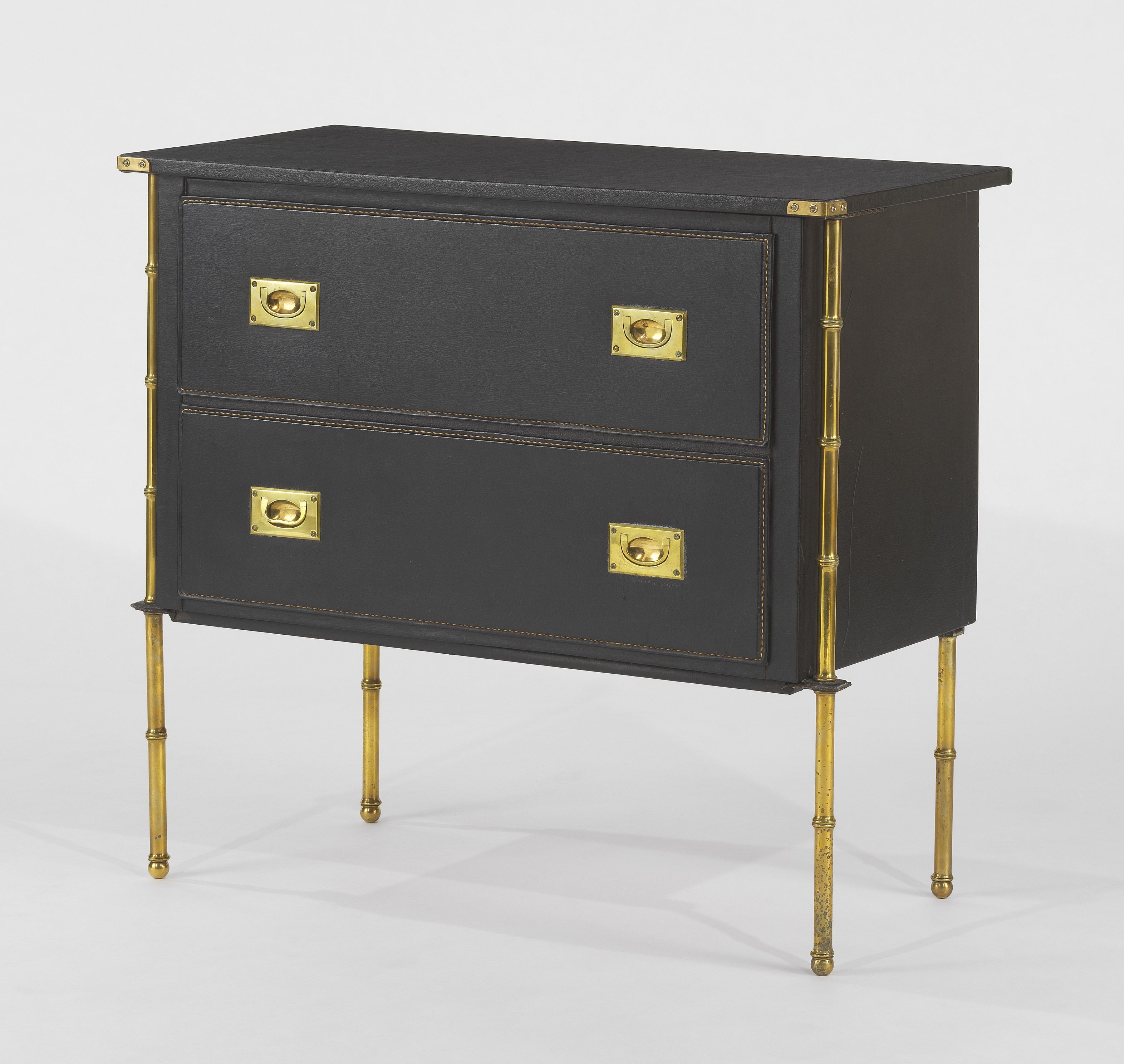 Cuir noir piqué sellier et laiton, circa 1950, 90x45x85 cm