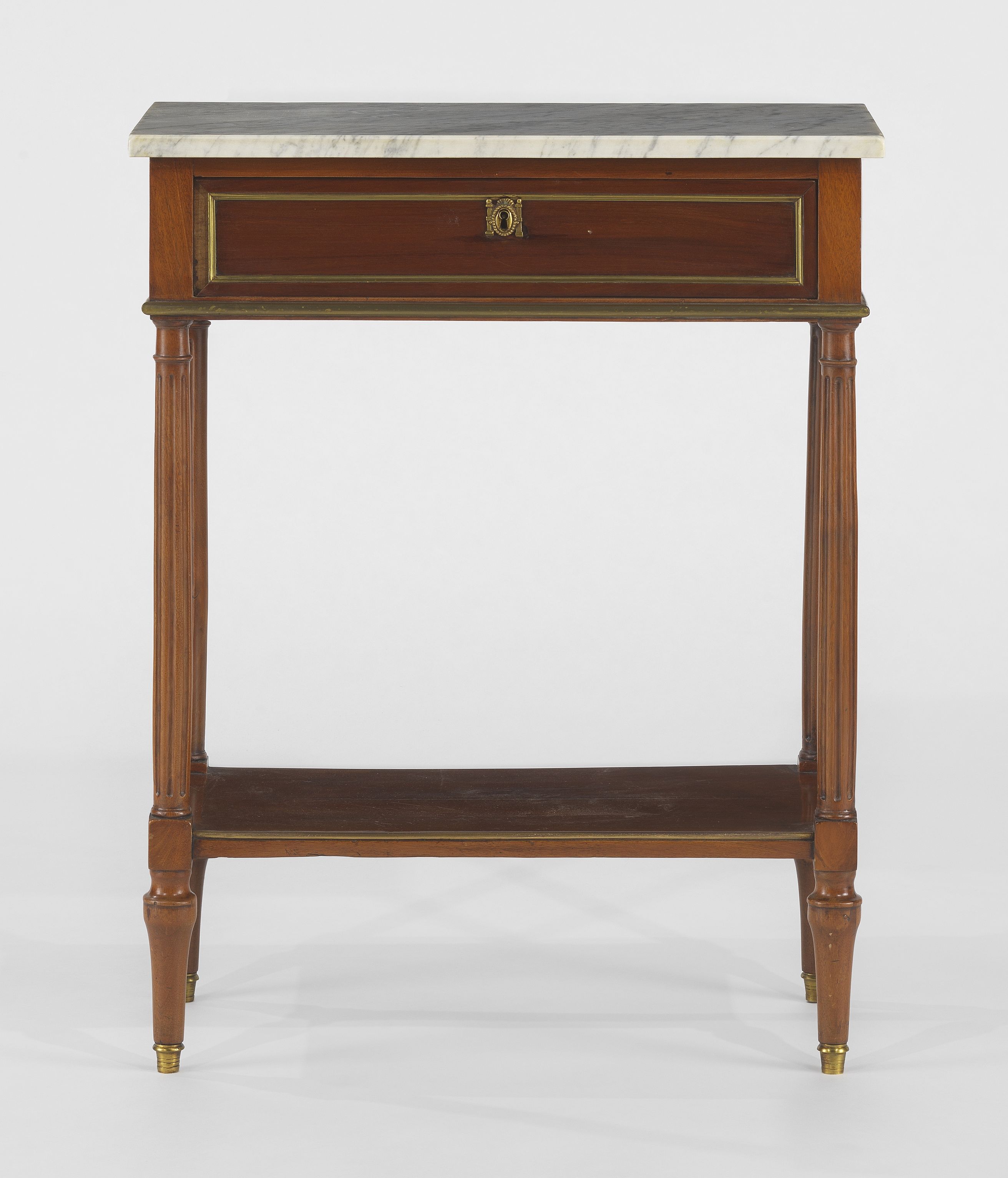 Un tiroir, acajou et marbre blanc, filets de laiton, 84x67x34 cm