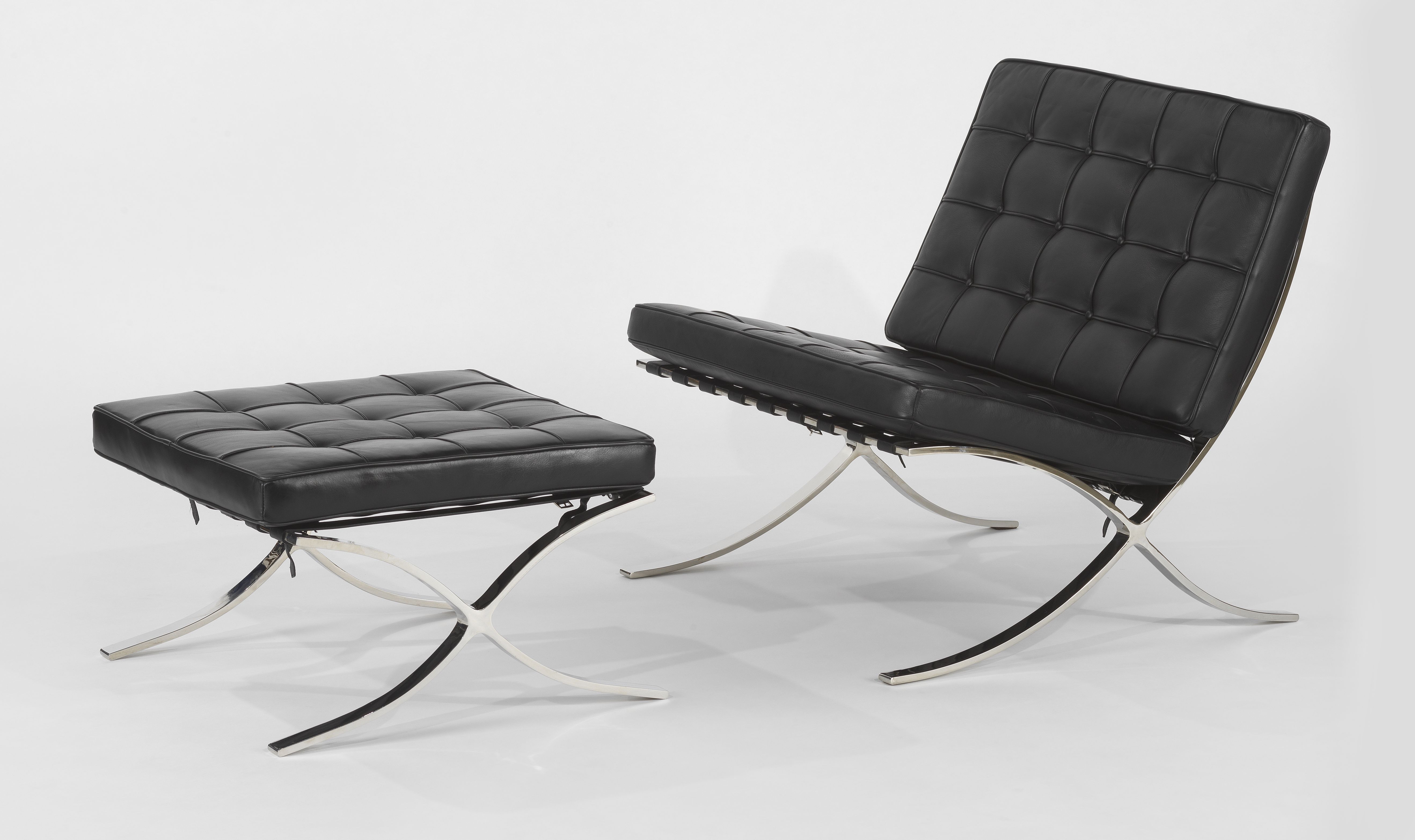 4945. Fauteuils Barcelona et un ottoman d'après Ludwig Mies van der Ro...
