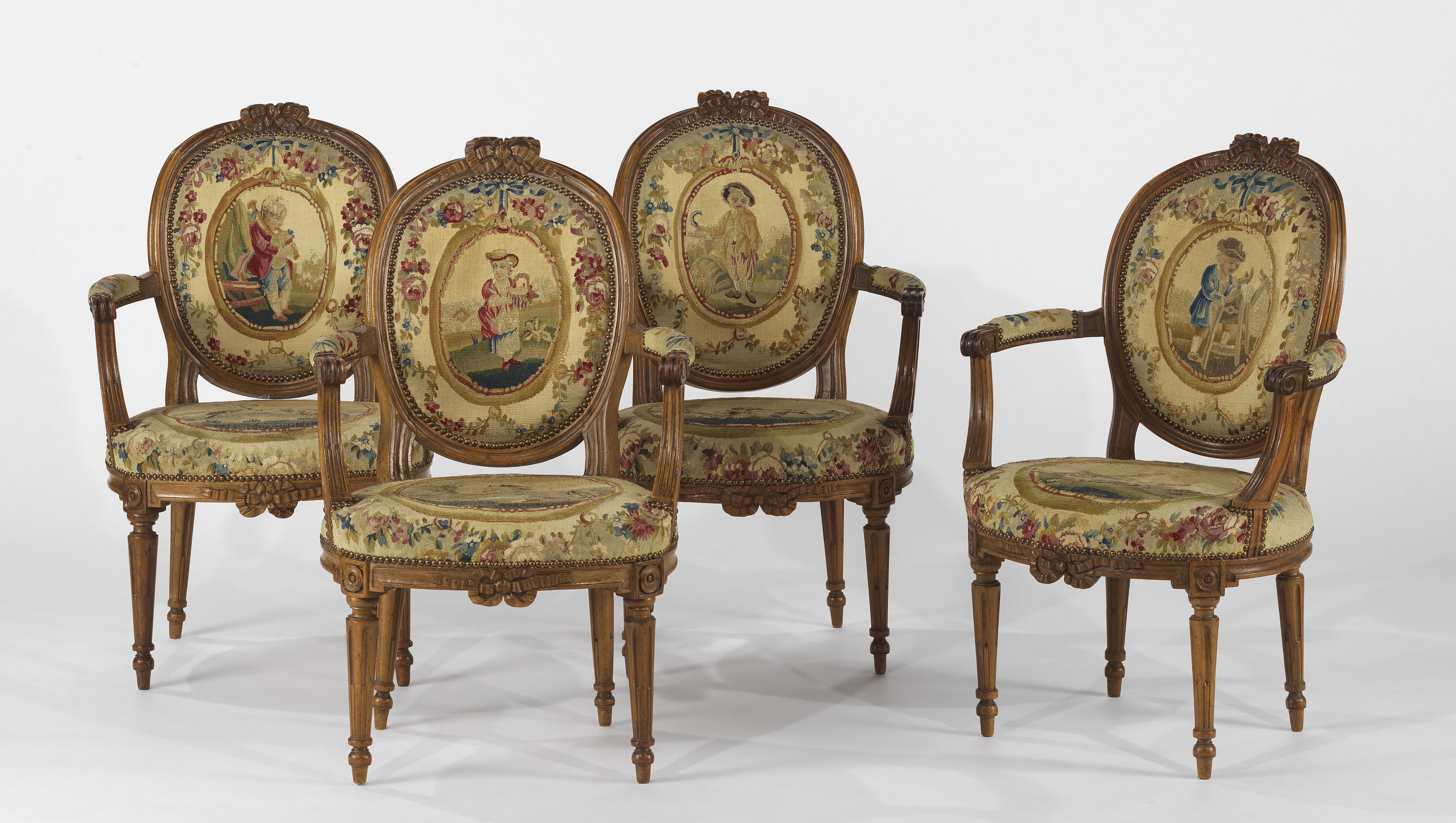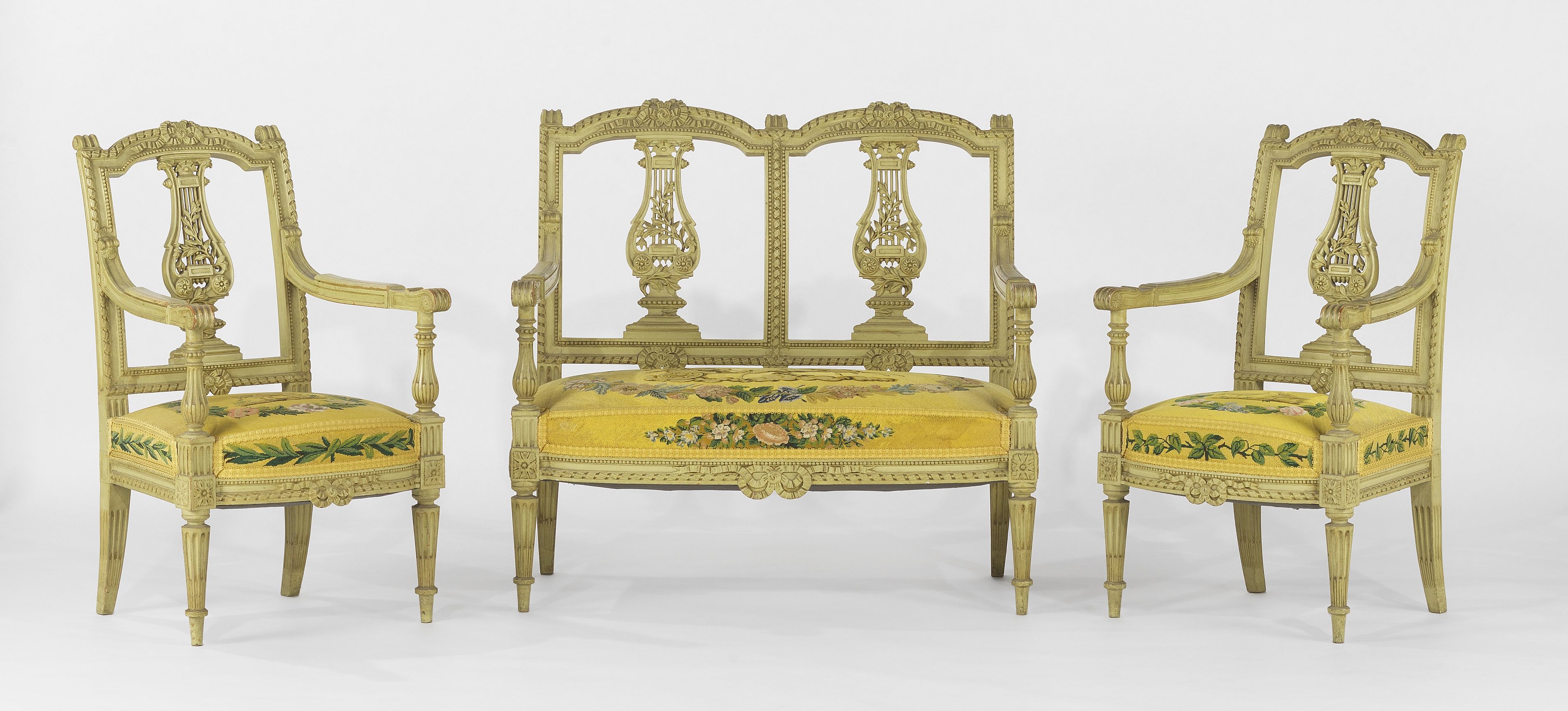 4908. Suite de trois fauteuils d'époque néoclassique, Suisse, XVIIIe s