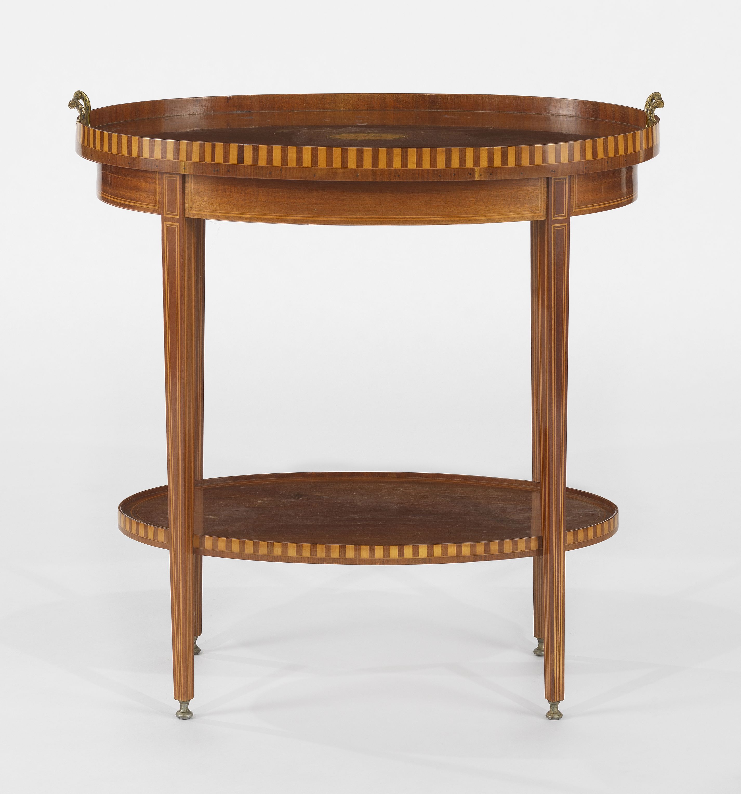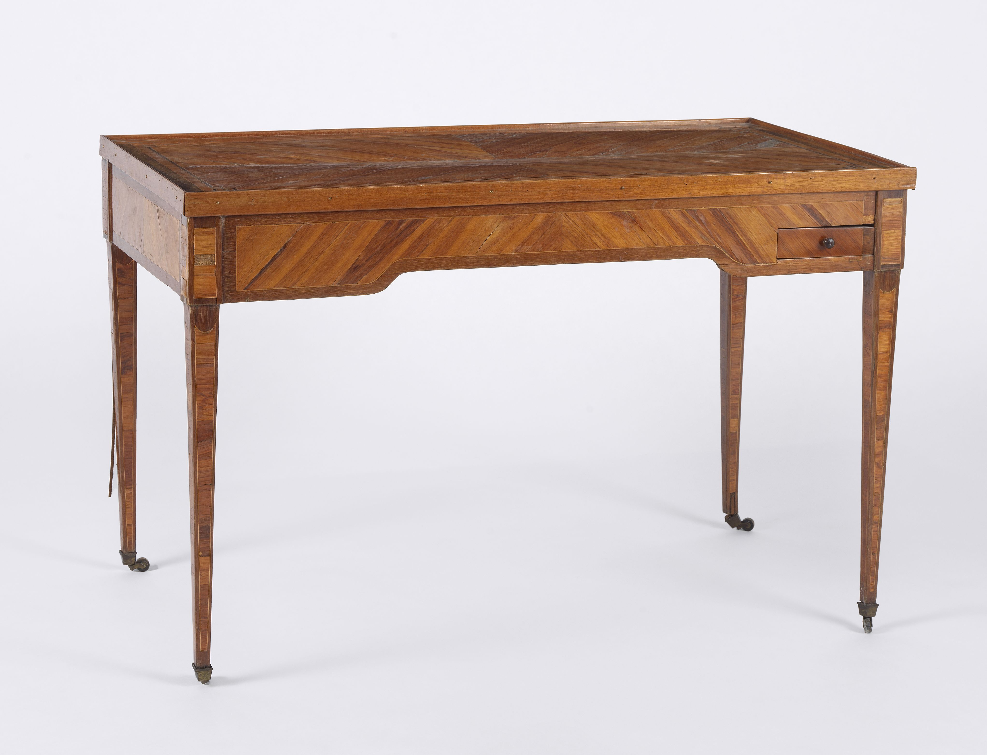 Trois tiroirs, bois fruitier, marqueterie en filets et rosace, 9...
