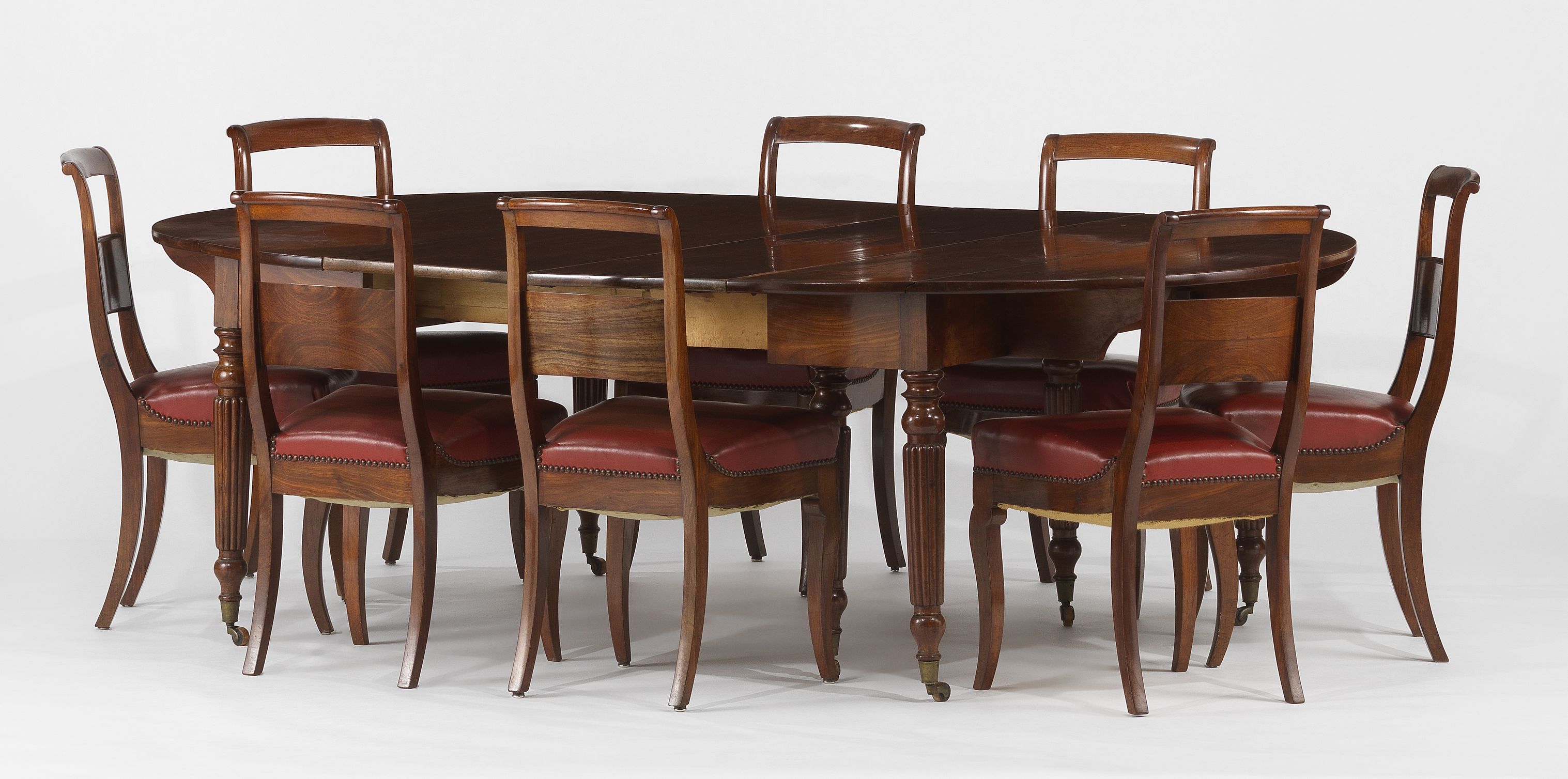 Acajou, 73x148x144 cm avec deux allonges de 42 cm. On joint douz...