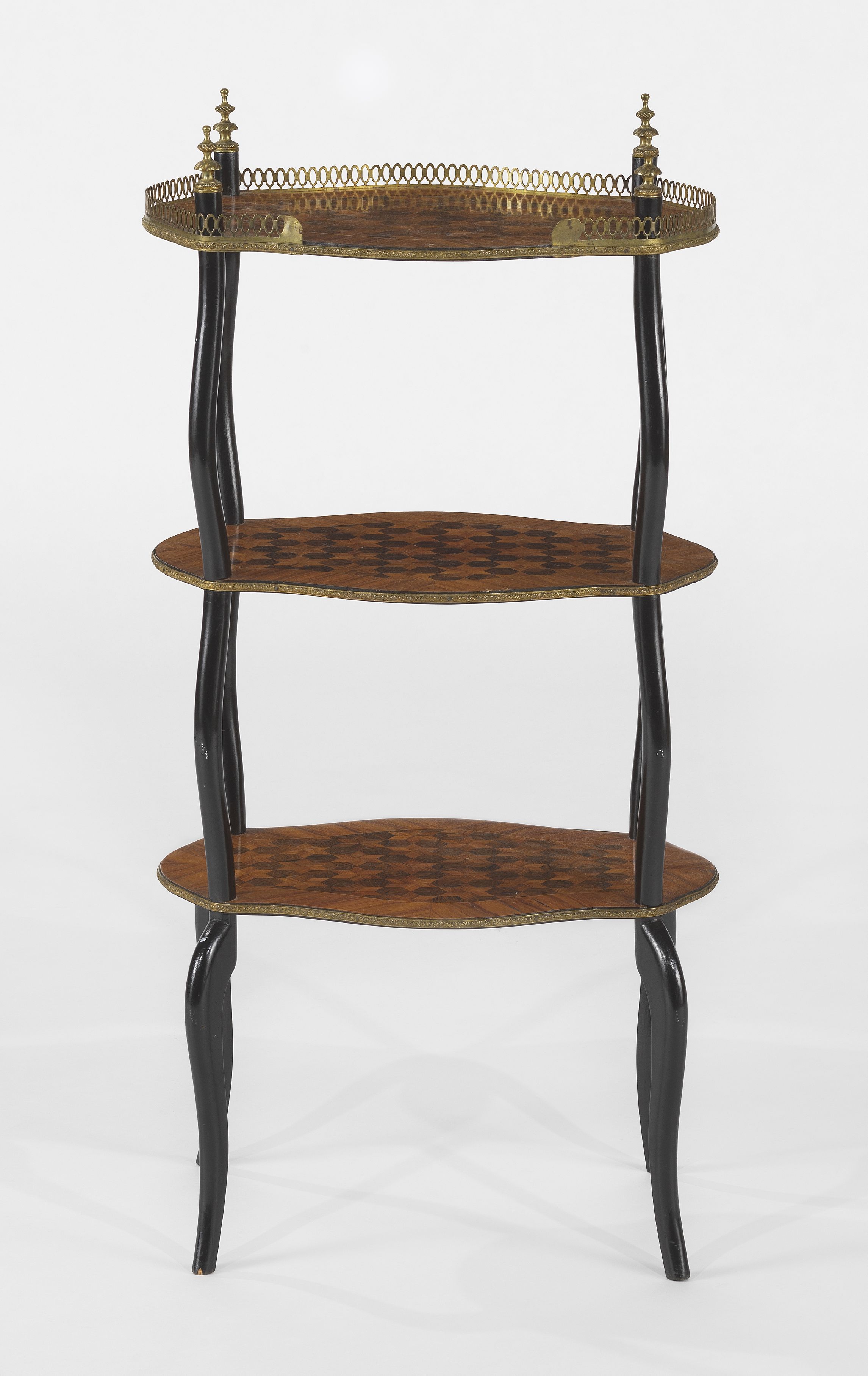 Trois plateaux, bois noirci et métal doré, 81x41x25 cm