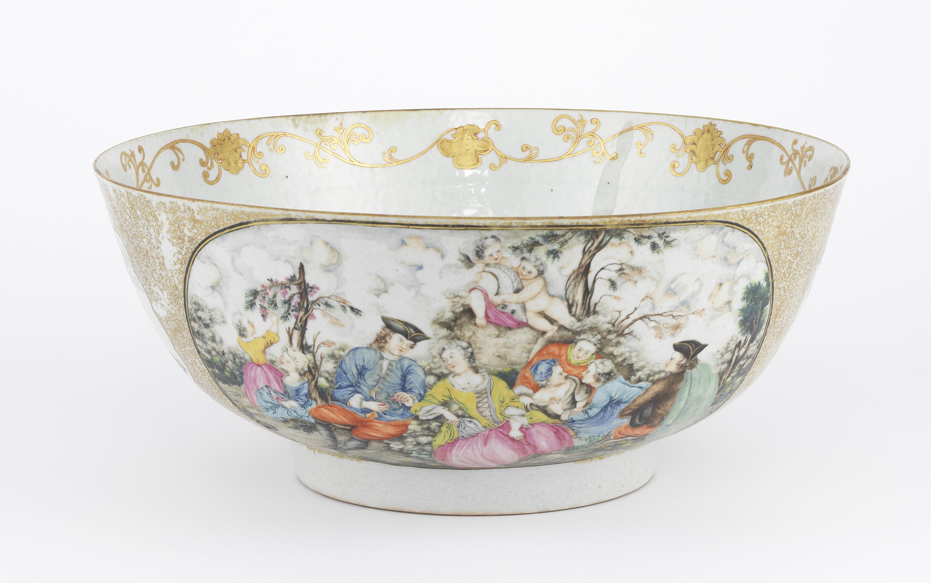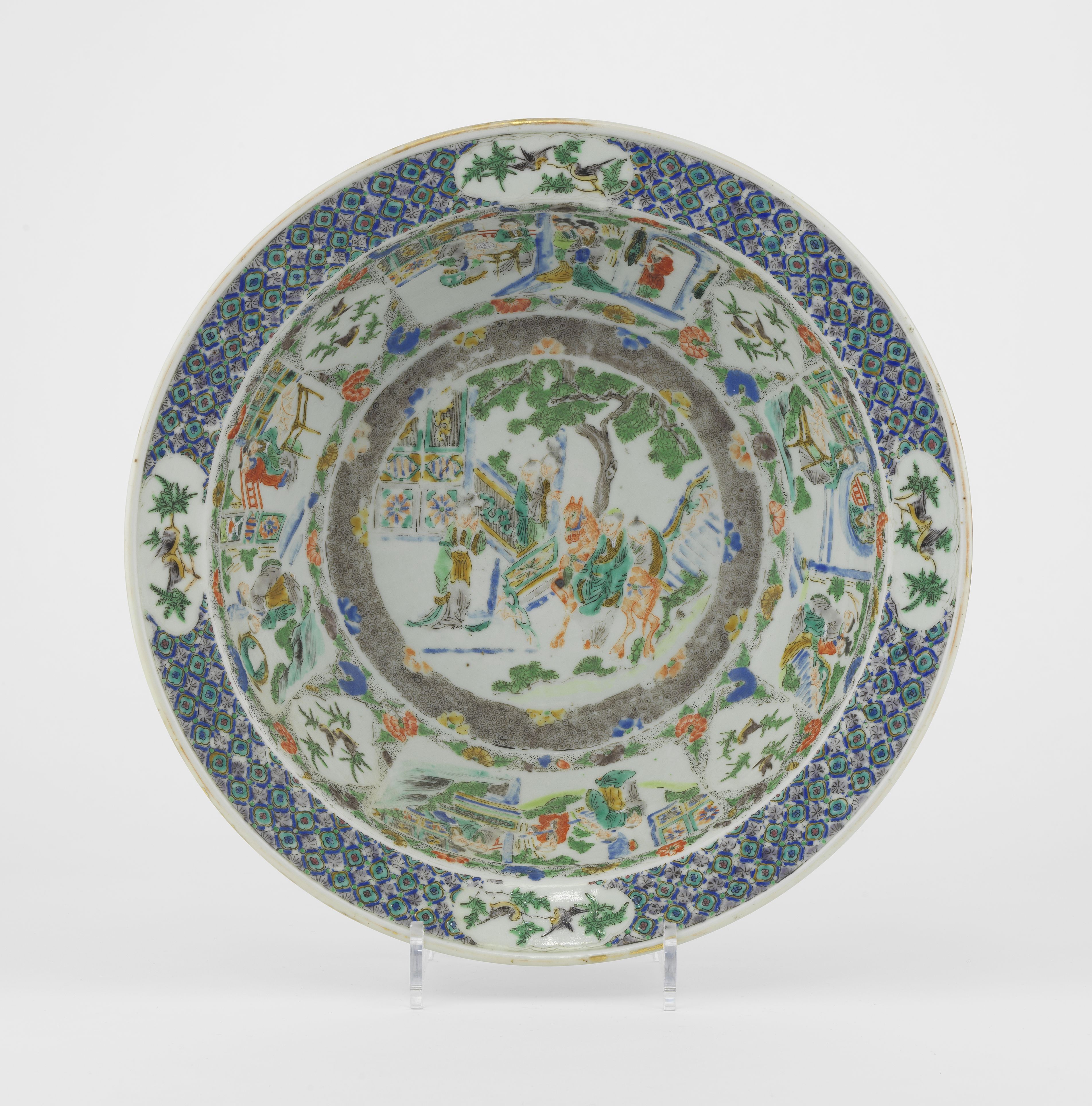 Porcelaine émaillée polychrome à motif de scène animée, D 34 cm