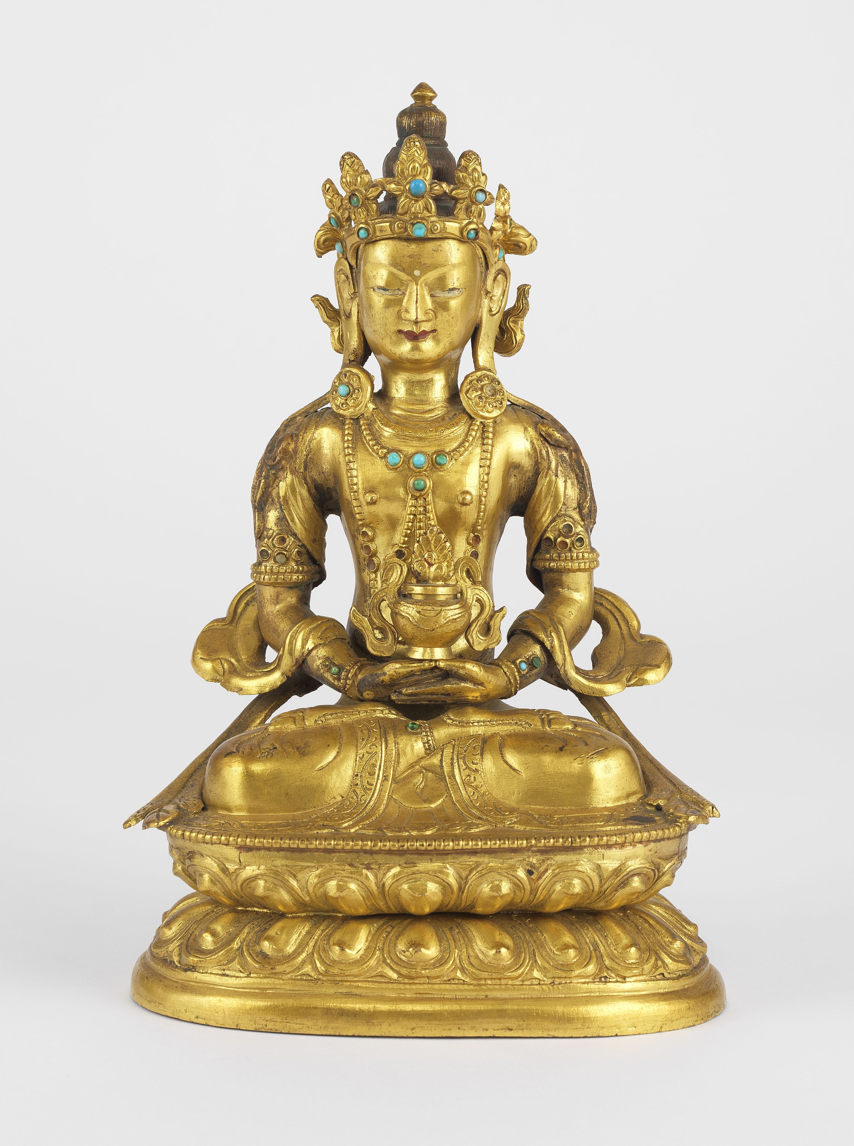 Bronze doré et cabochons de turquoise, H 18,5 cm