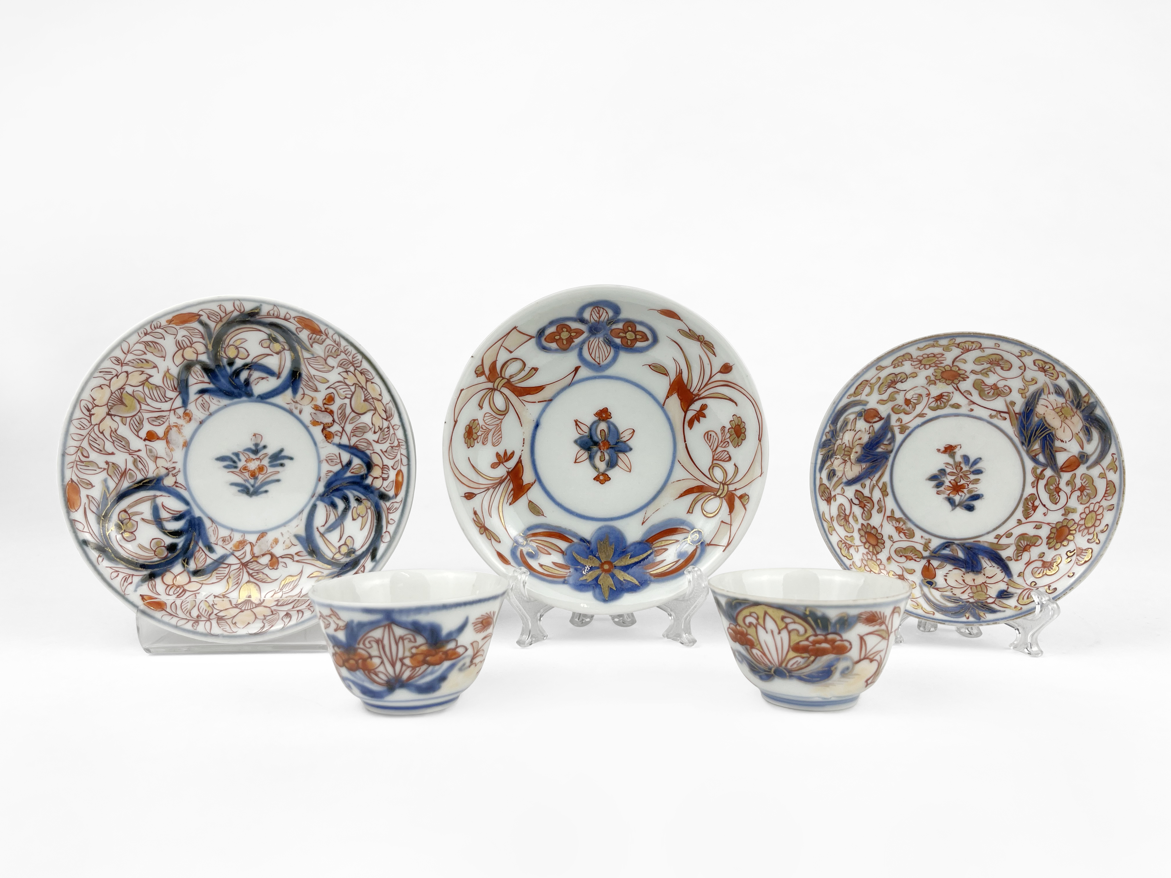 4998. Cinq sous-tasses et deux petites tasses Imari, Chine, XVIIIe s