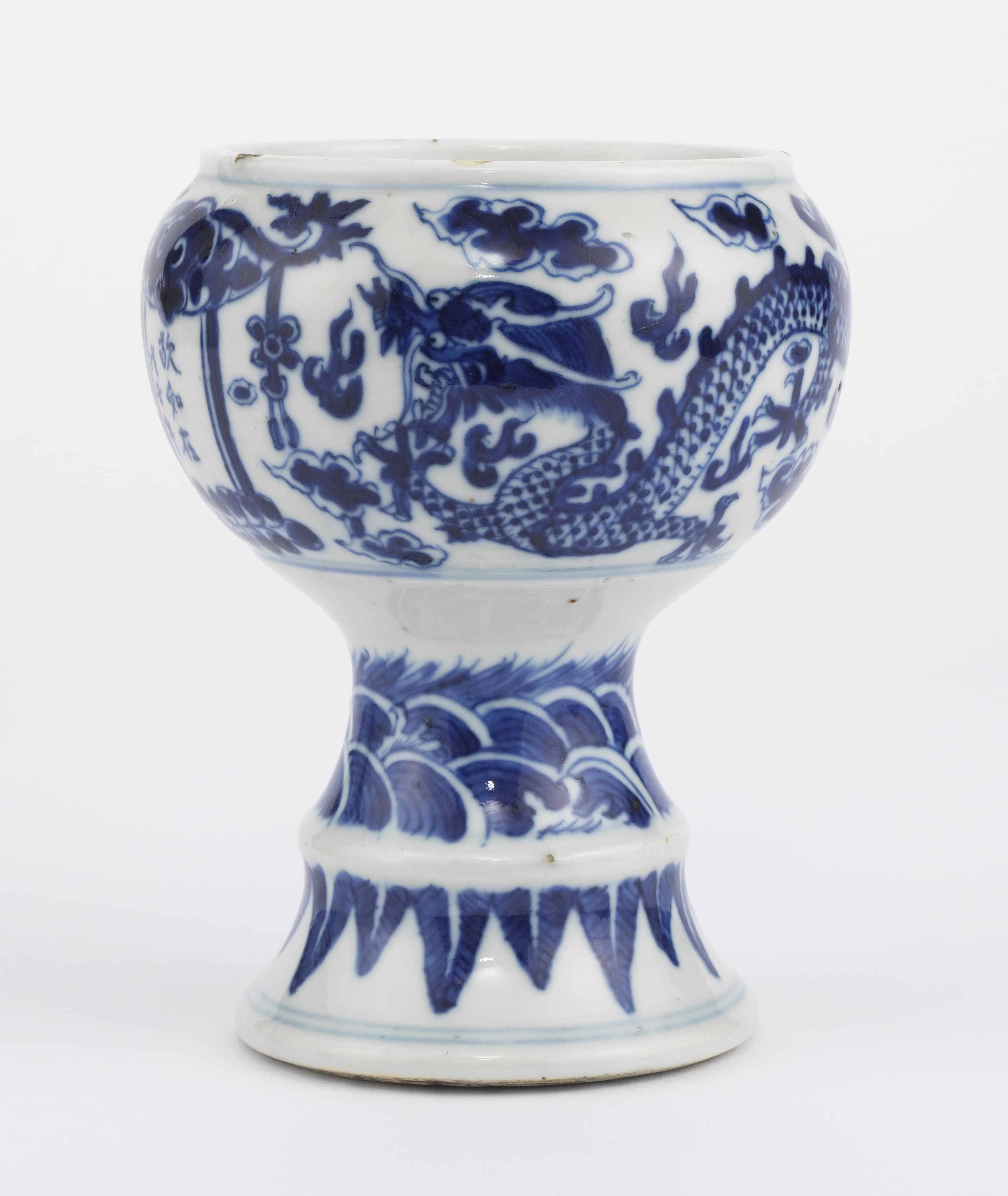 Porcelaine émaillée bleu blanc à motifs de nuées, H 15 cm. Prove...