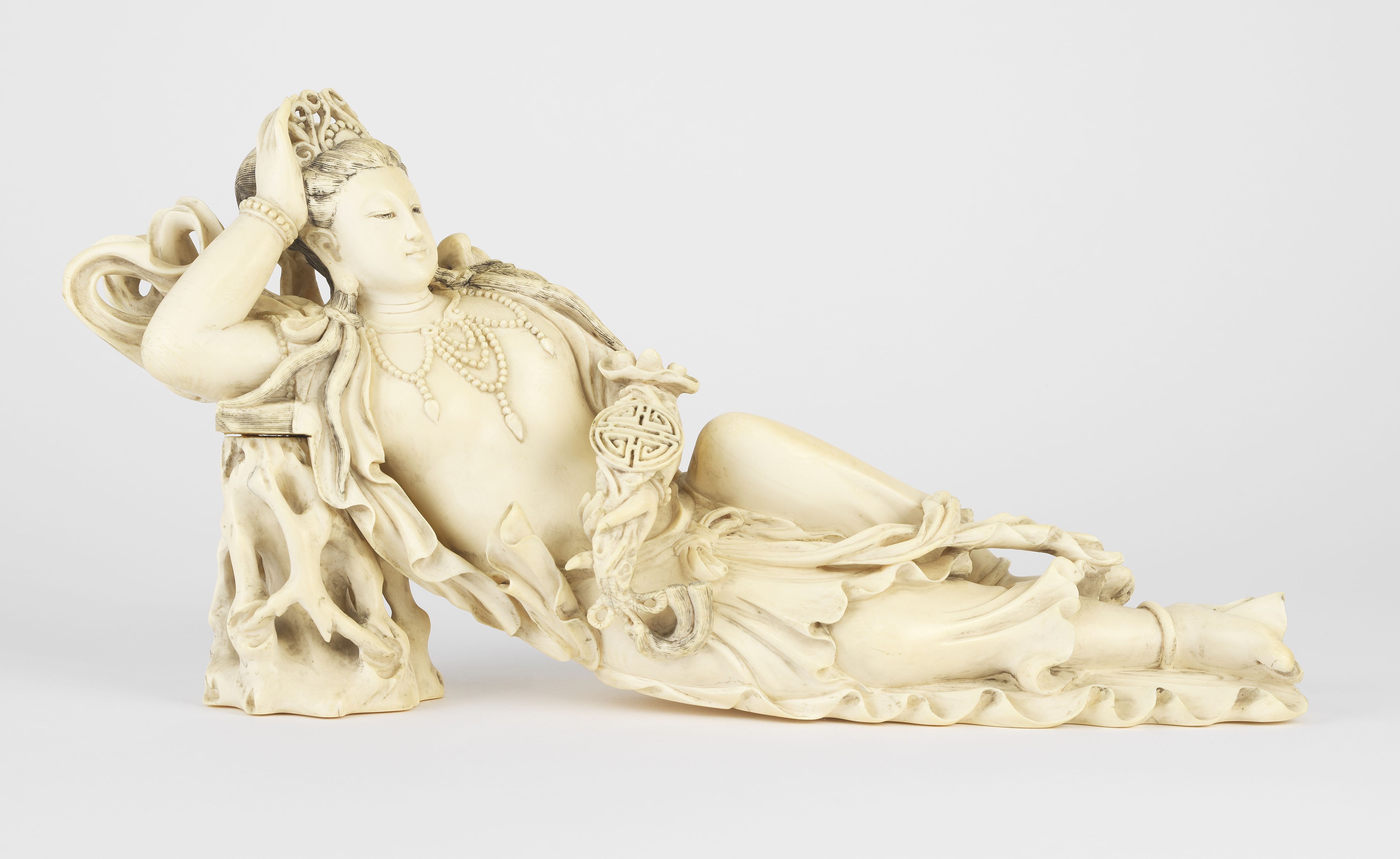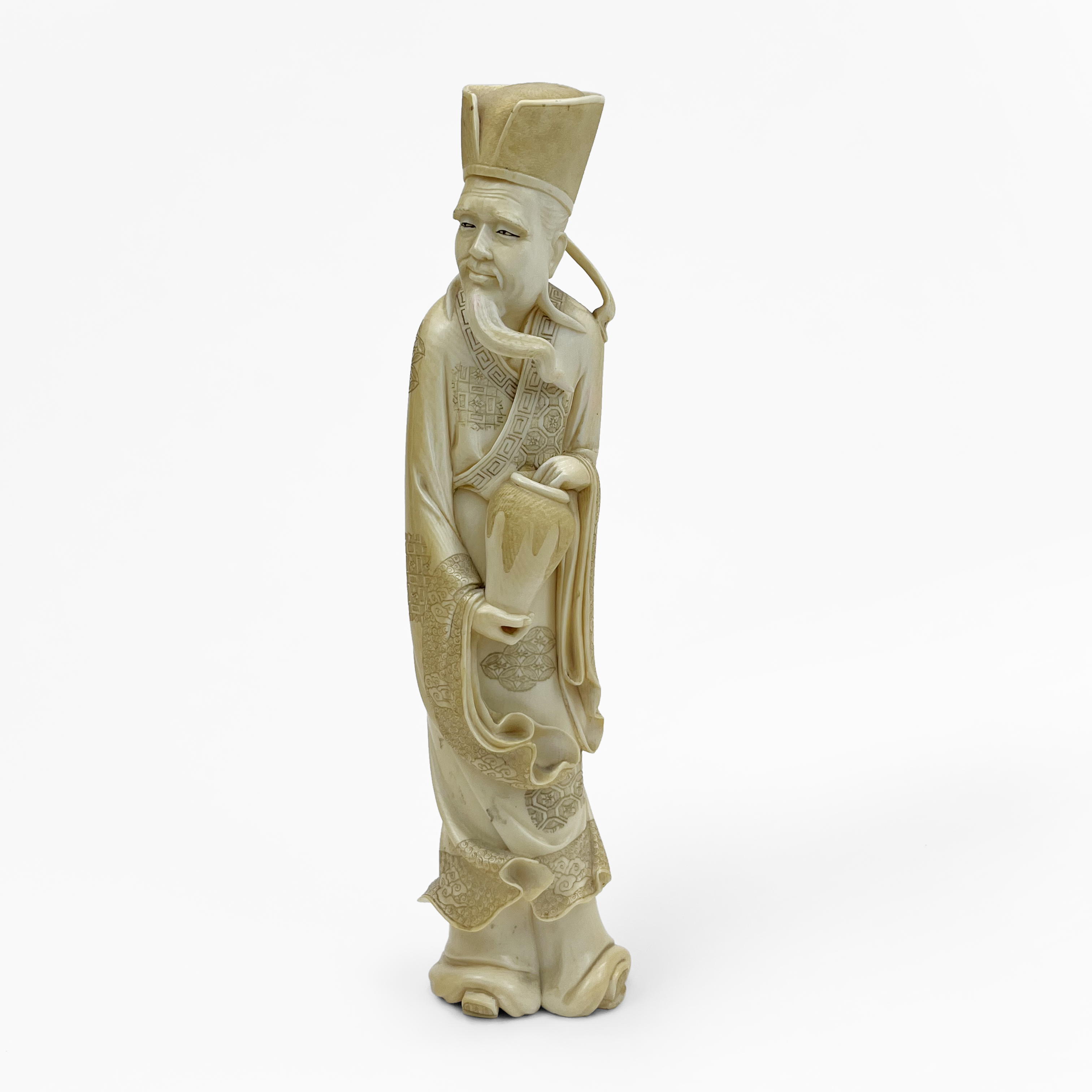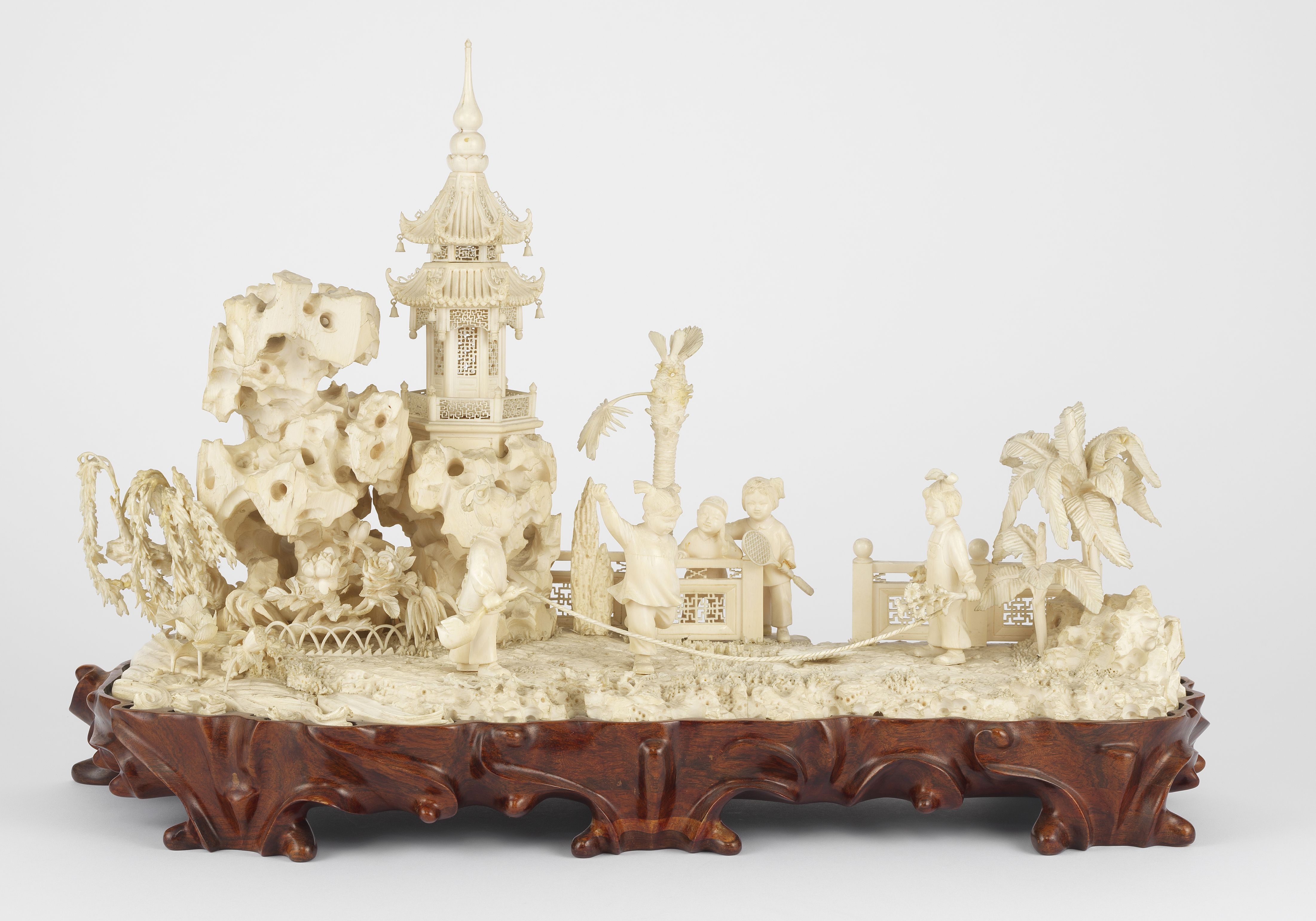 Ivoire sculpté et ajouré, marque, H 38 cm
